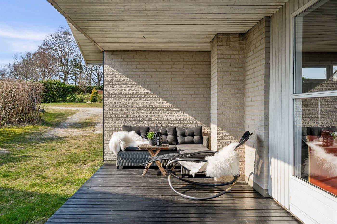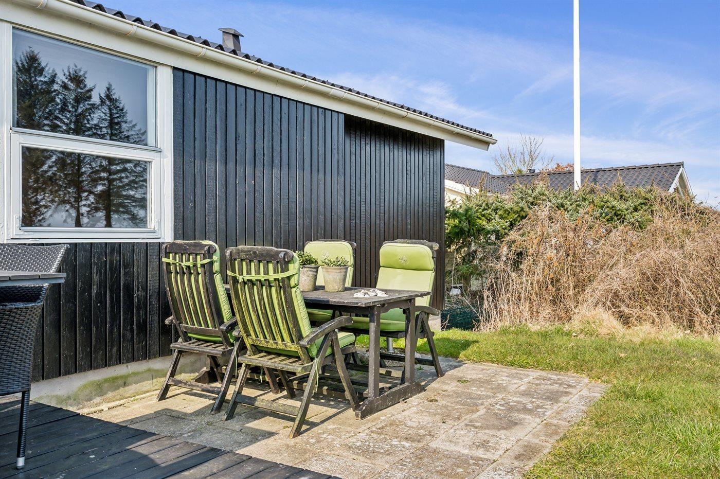 Die Ferienunterkunft liegt auf einem 2066 m² großen Naturgrundstück. Die Entfernung zum Meer beträgt 100 m. Die Entfernung zum Fjord beträgt 7700 m. Die nächste Einkaufsmöglichkeit liegt 2000 m entfernt. In einem Abstand von 15000 m gibt es einen Golfplatz. Es steht ein offenes Terrassenareal zur Verfügung. Außerdem gibt es überdachte Terrasse. Es steht ein Grill zur Verfügung. Parkplatz auf dem Grundstück.