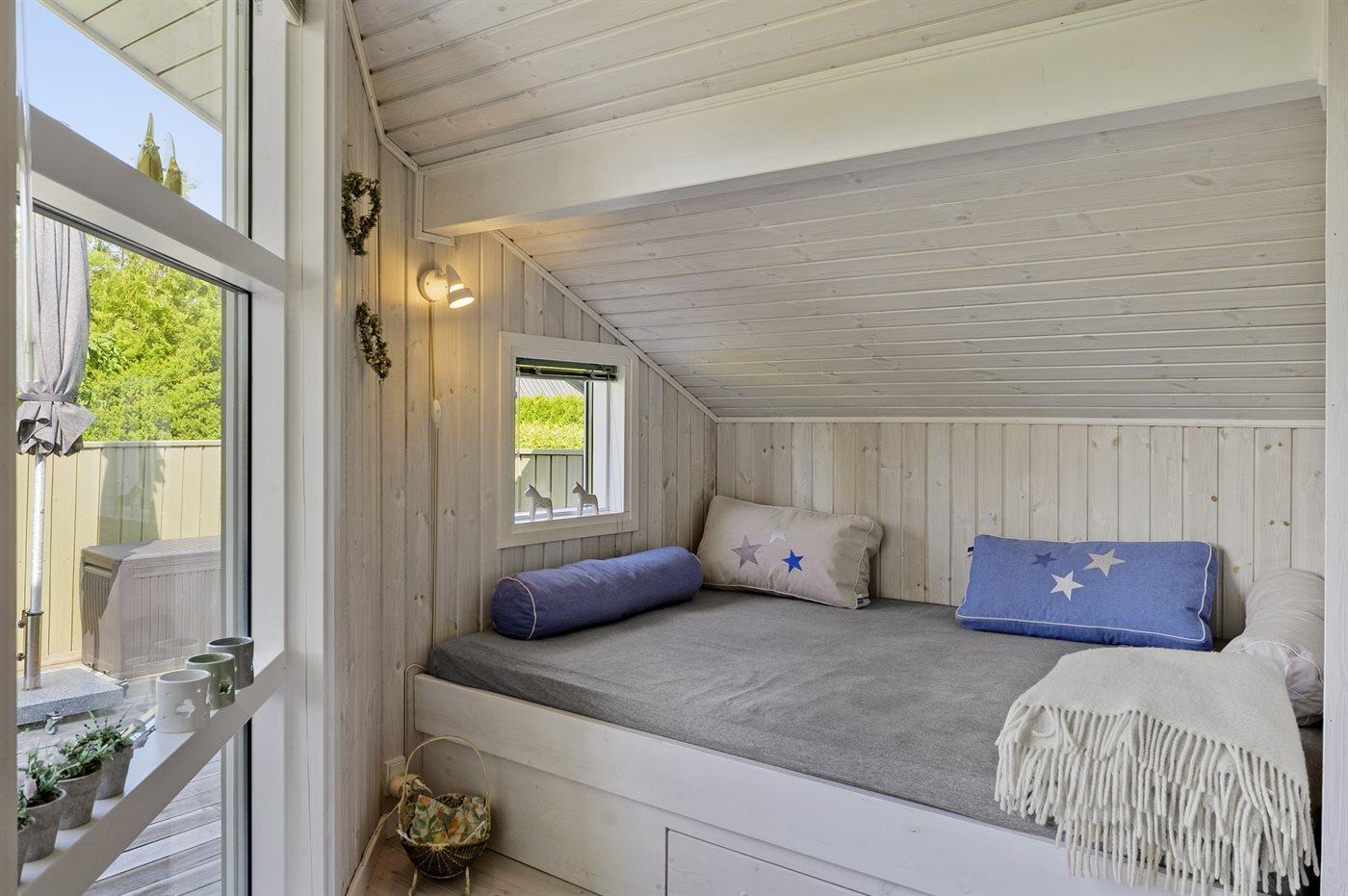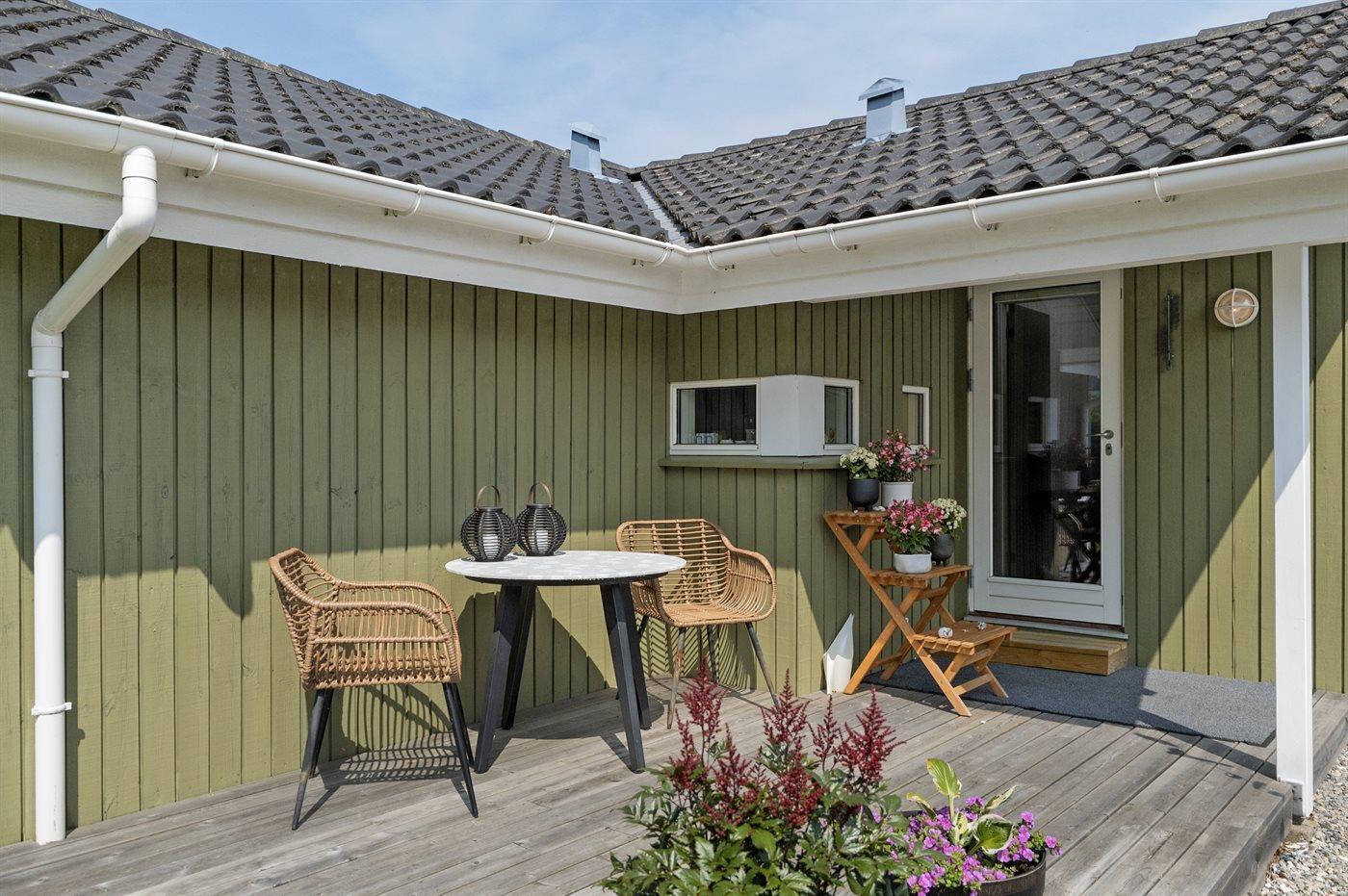 Die Ferienunterkunft liegt auf einem 850 m² großen Naturgrundstück. Das Grundstück ist eingezäunt. Die Entfernung zum Meer beträgt 650 m. Die Entfernung zum Fjord beträgt 12300 m. Die nächste Einkaufsmöglichkeit liegt 1290 m entfernt. In einem Abstand von 15150 m gibt es einen Golfplatz. Es steht ein offenes Terrassenareal zur Verfügung. Außerdem gibt es überdachte Terrasse. Schaukel. Sandkasten. Trampolin. Rutsche. Es steht ein Grill zur Verfügung. Es ist ein Ladestecker für Elektroautos installiert. Ladestecker Typ 2. Mit einer Ladeleistung von 11 kW. Parkplatz auf dem Grundstück.
