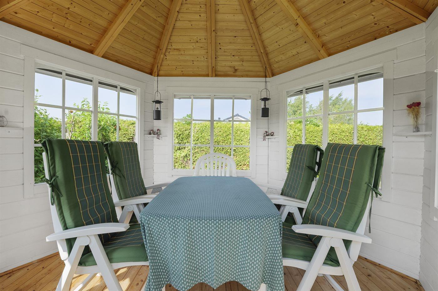 Im hinteren Teil des Gartens findest du einen liebevoll gestalteten Pavillon – der perfekte Ort, um zu entspannen, gesellige Stunden zu verbringen oder eine Tasse Kaffee zu genießen, auch wenn die Abende etwas kühler werden.