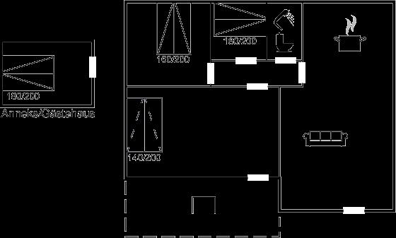 Die Schlafplätze verteilen sich auf 4 Schlafräume. 6 Schlafplätze in Doppelbetten. 2 Schlafplätze auf einer Doppelschlafcouch. 2 von diesen Schlafplätzen befinden sich im Gästehaus. Ferner steht ein Kinderbett zur Verfügung.