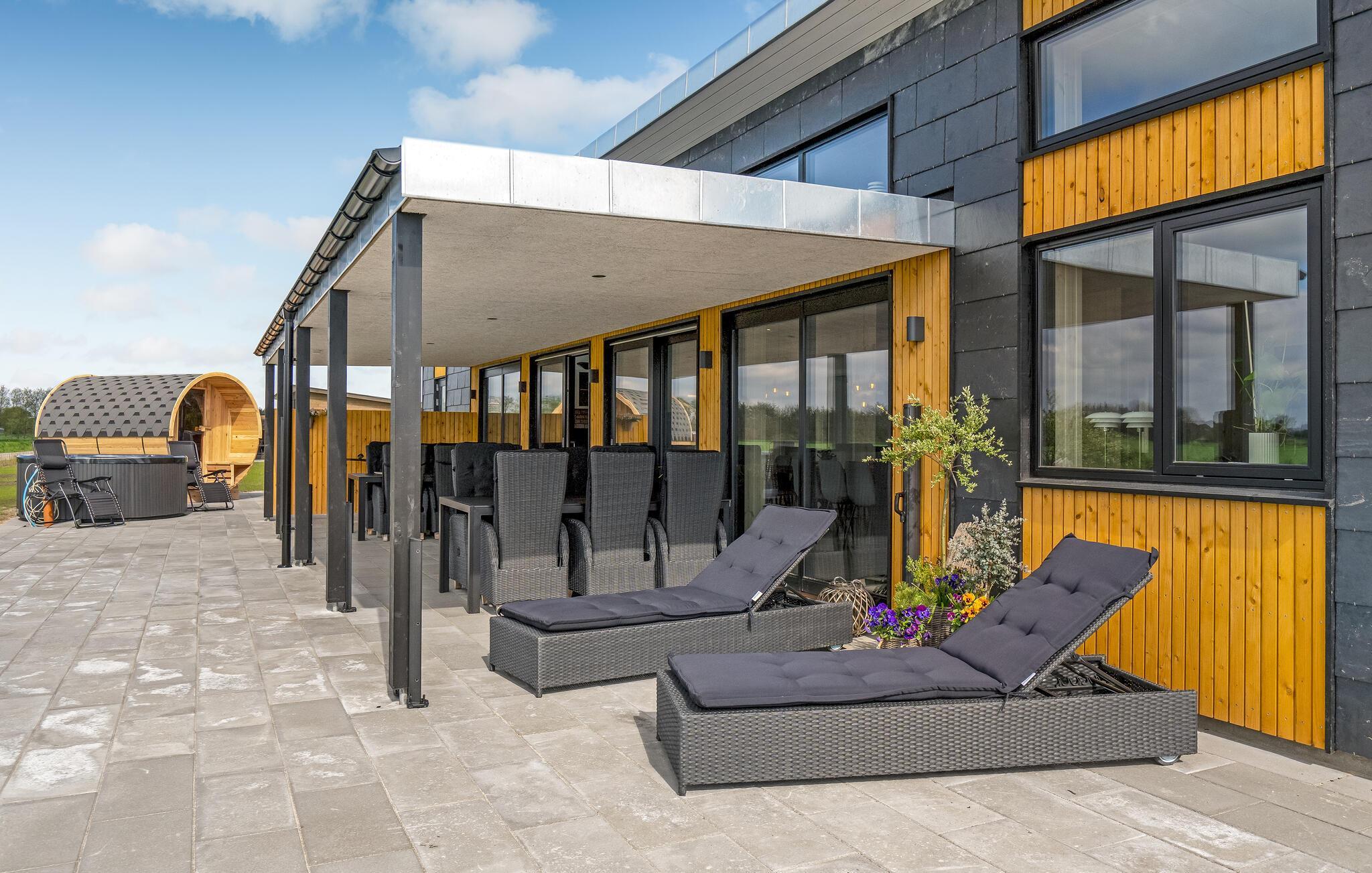 Vom Wohnbereich gelangen Sie auf eine teilweise überdachte Terrasse mit Gartenmöbeln, wo Sie gut die Urlaubstage an der frischen Luft und in der Sonne verbringen können. Mit einer Sauna und einem Whirlpool steht Ihnen hier Ihr eigenes Außen-Spa zur Verfügung. Für Unterhaltung ist außerdem mit Krocket und einem Wikingerspiel gesorgt.