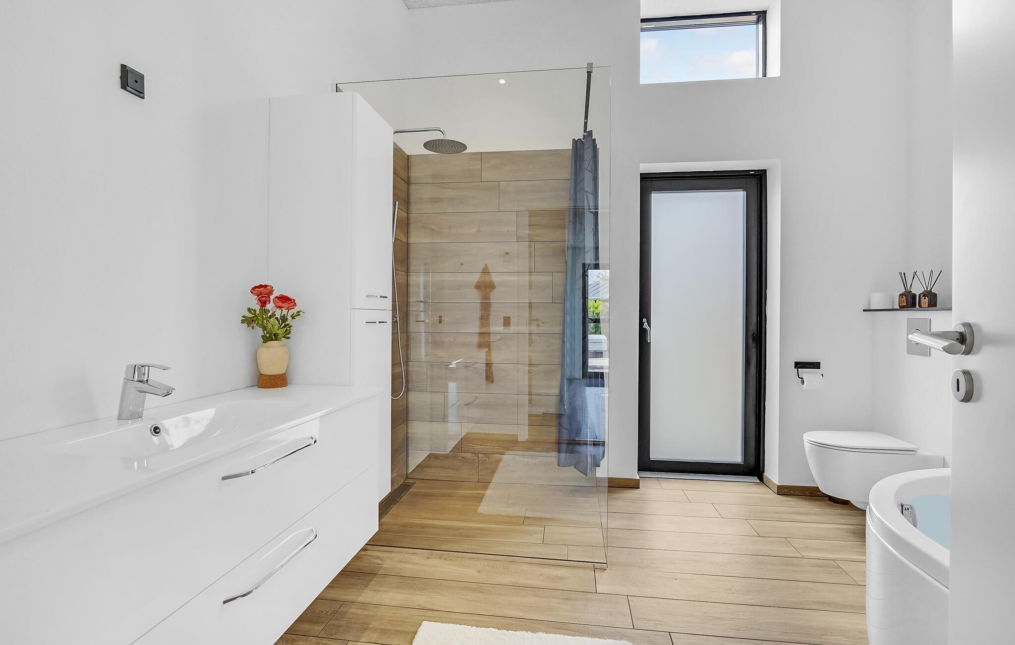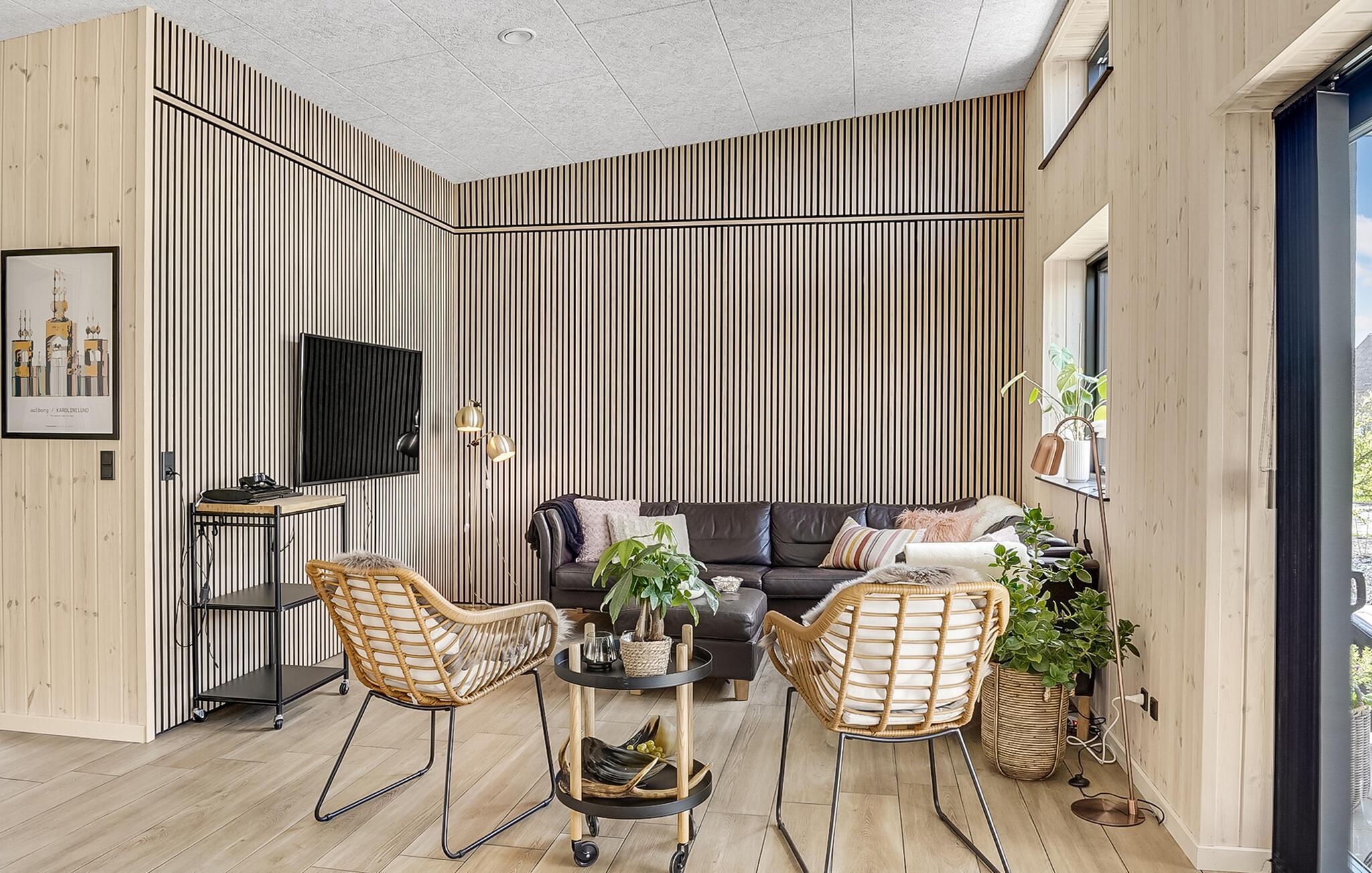 Die ausgesuchte Dekoration und die hochwertige Einrichtung und Ausstattung dieses Ferienhauses werden Sie begeistern. Im Inneren bildet der Wohnbereich in moderner Holzoptik den Mittelpunkt des Hauses. Hier können Sie auf dem Sofa bei einem Filmabend entspannen, zusammen am langen Esstisch essen oder leckere Gerichte in der modernen und gut ausgestatteten Küche zubereiten. Ihnen stehen außerdem fünf Schlafzimmer und zwei hochwertige Badezimmer zur Verfügung.