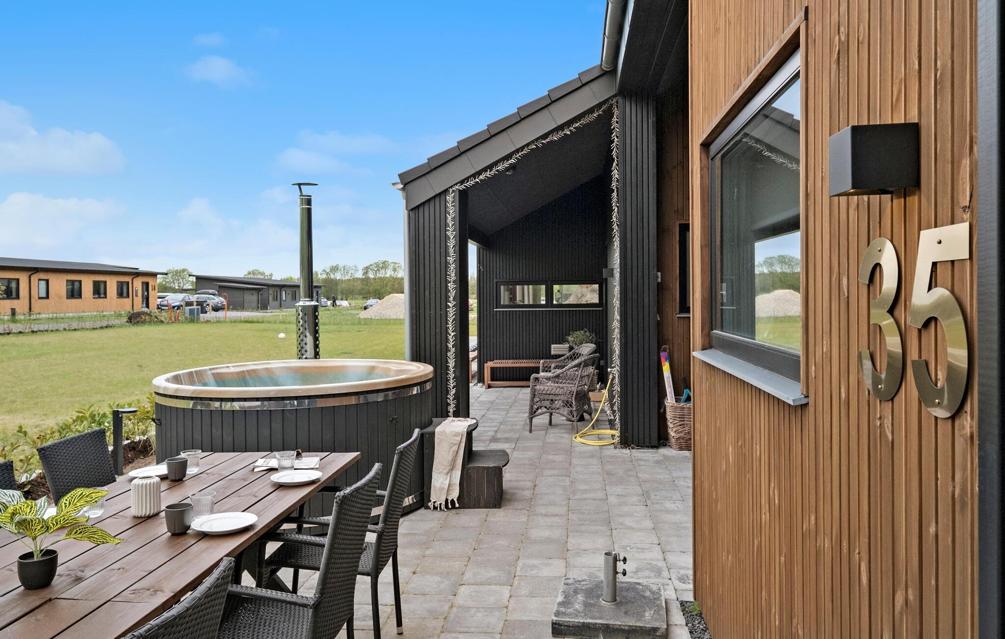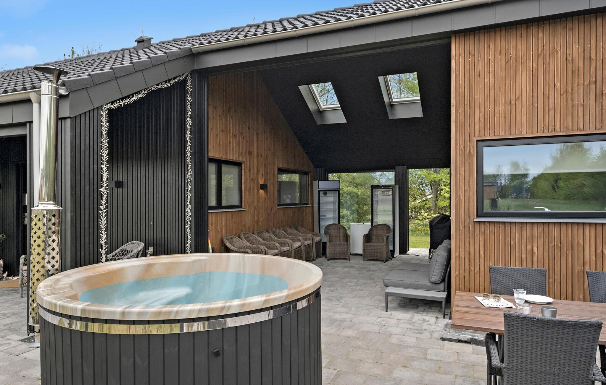 Luxuriöses Ferienhaus in Öster Hurup mit Finnischem Holzbad, Terrasse und Garten für erholsamen Familienurlaub.