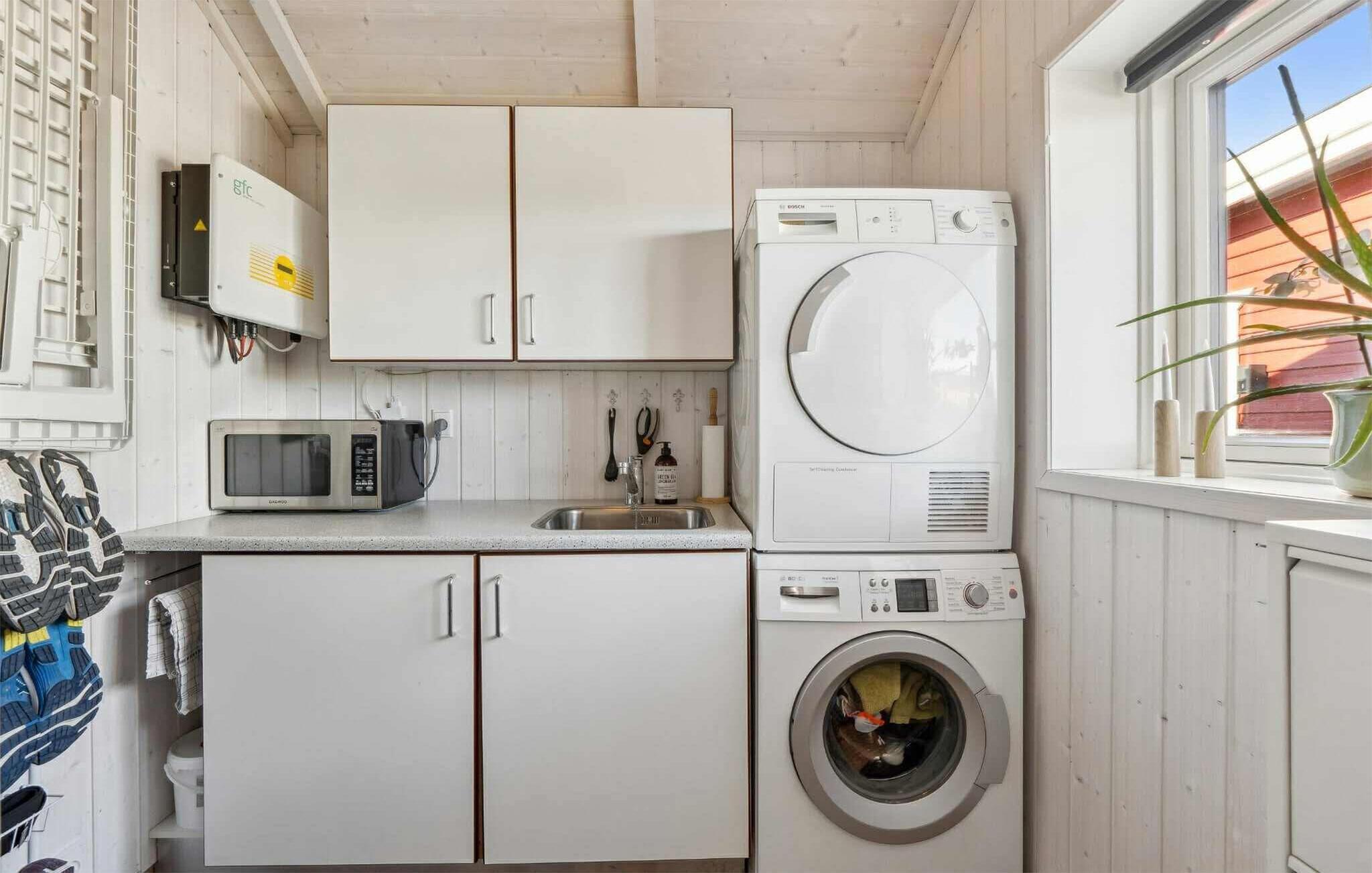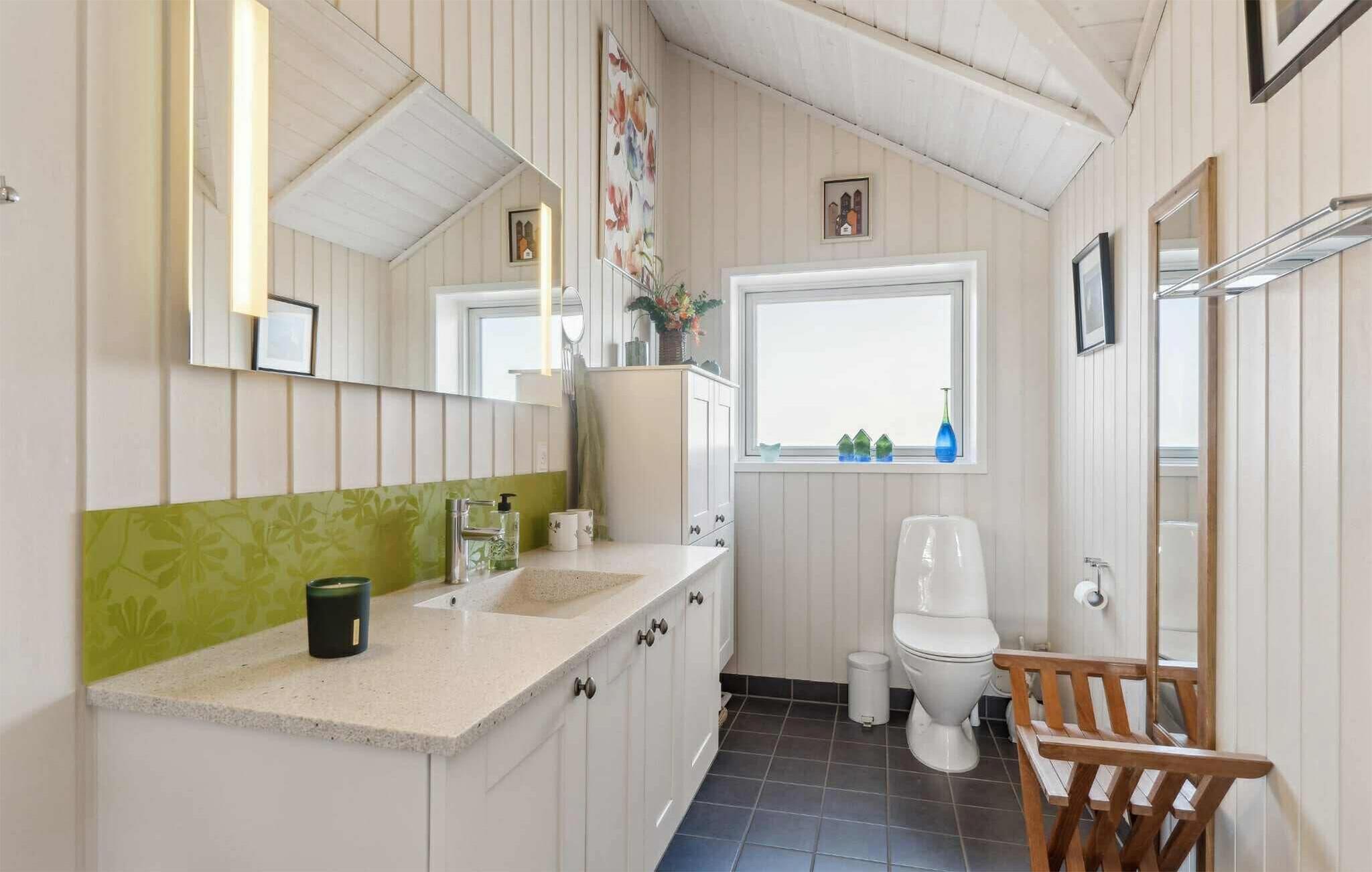 In diesem Ferienhaus trennen Sie nur wenige Schritte vom feinen Sandstrand des Kattegats, ideal für erholsame Tage am Meer. Treten Sie ein in den gemütlichen Wohnbereich, der mit großen Fensterfronten, hohen Decken und einem harmonischen Einrichtungskonzept punktet. Lassen Sie sich auf der komfortablen Sofaecke nieder, genießen Sie die freie Urlaubszeit in vollen Zügen und machen Sie es sich mit einem Film gemütlich. Der Blick in den schönen Garten sorgt für eine besondere Atmosphäre.