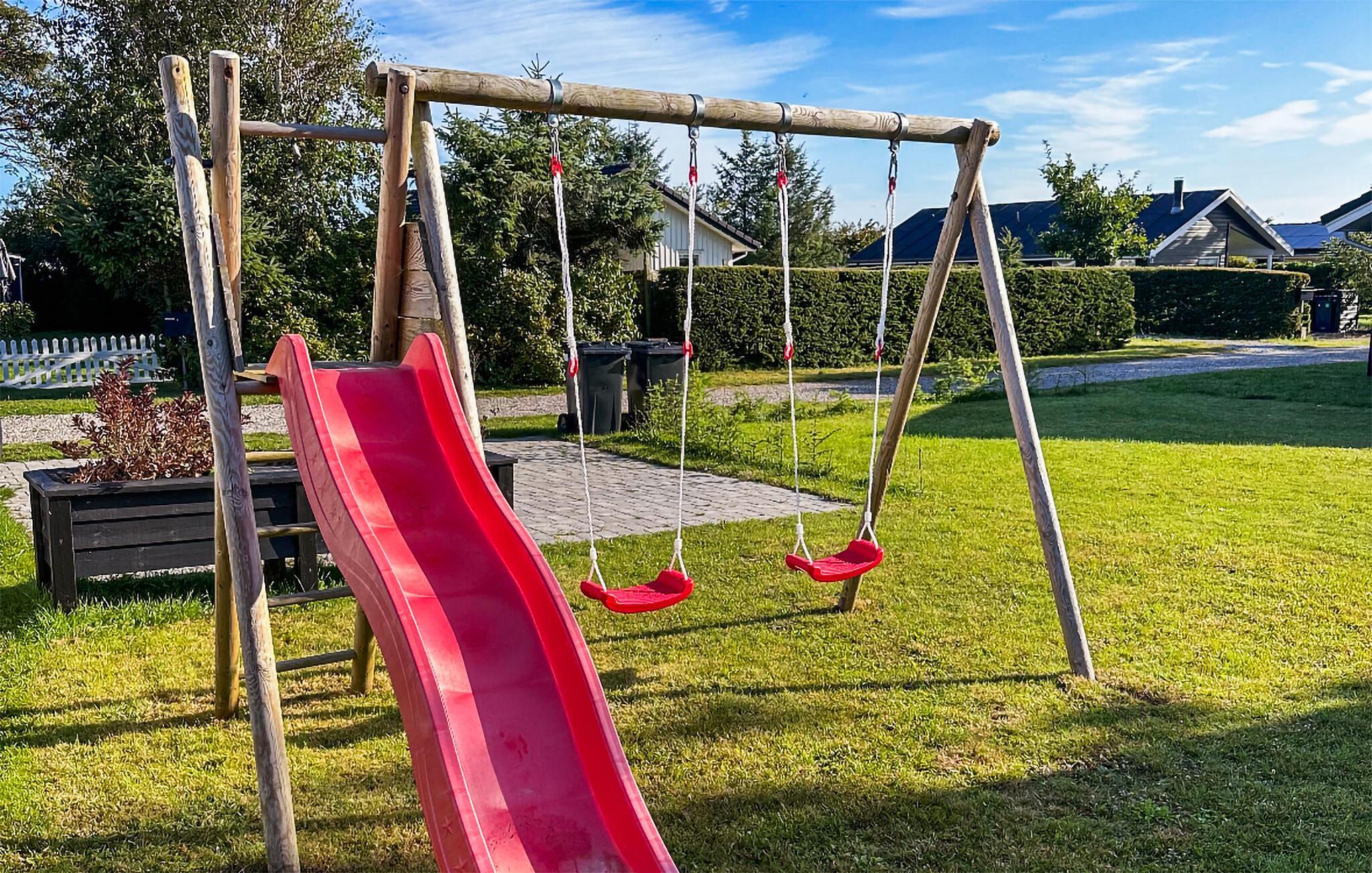 Nutzen Sie die Terrasse und den weitläufigen Garten, um die Sonne zu genießen oder einfach die Seele baumeln zu lassen. Der Garten ist ideal für Familien mit Kindern. Hier finden Sie Schaukeln, eine Rutsche und eine Feuerstelle, die für gesellige Abende sorgt. Verbringen Sie gemeinsame Zeit am Lagerfeuer und genießen Sie die lauen Sommerabende unter freiem Himmel.
