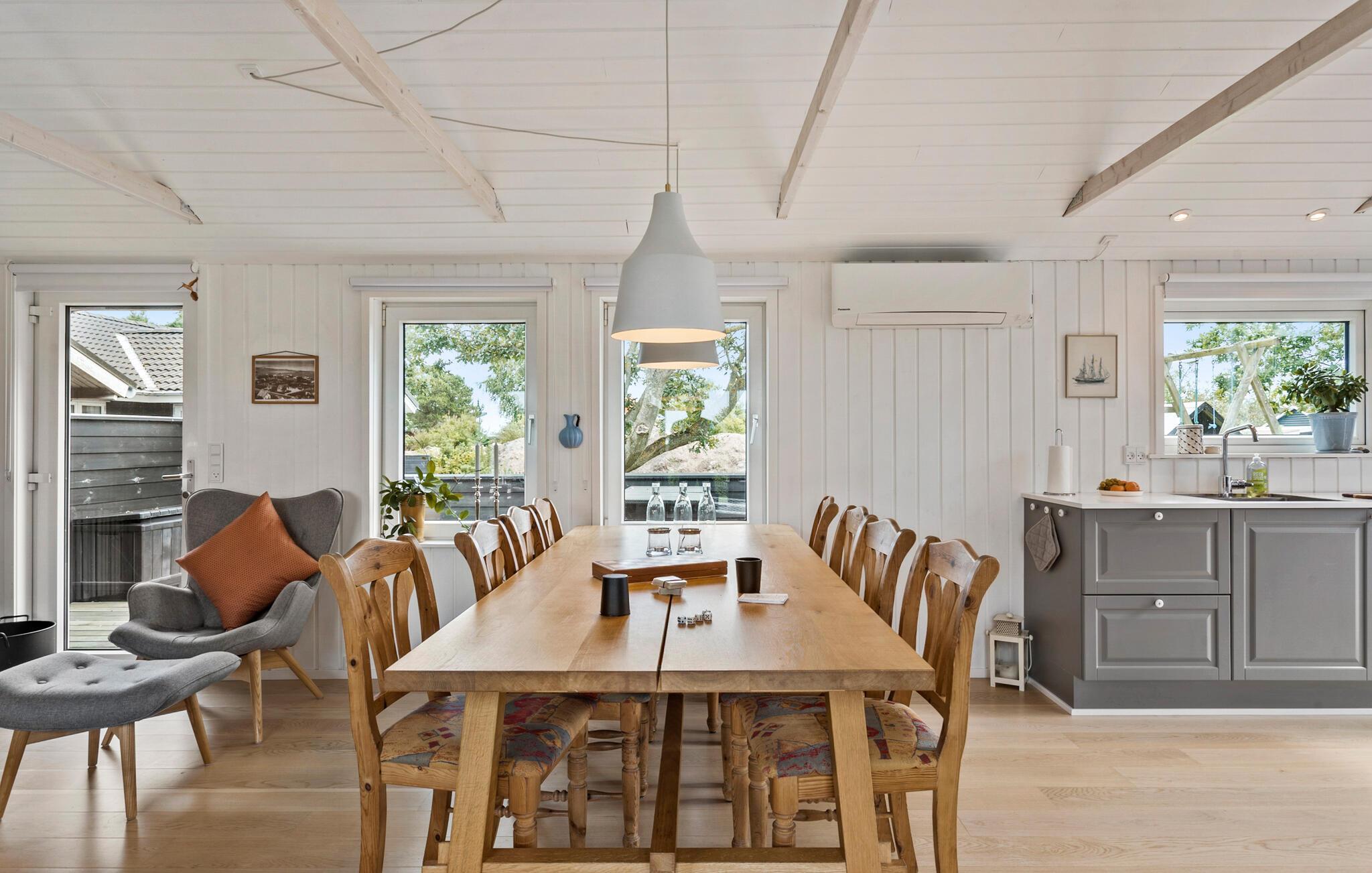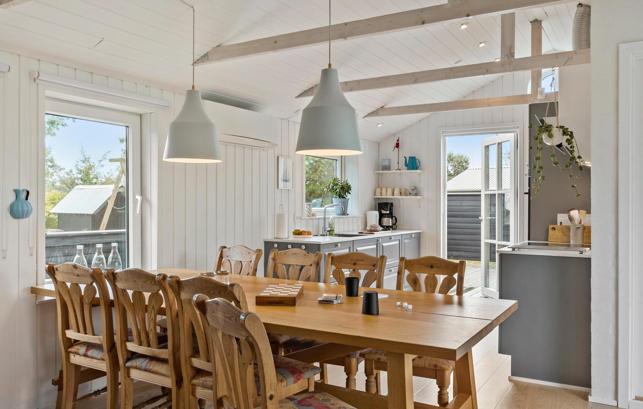 Willkommen in Øster Hurup, einem charmanten Küstenort an der Ostküste Jütlands. Ihr Ferienhaus erwartet Sie mit einer praktischen und einladenden Einrichtung, ideal für Familien oder einen Urlaub mit Freunden. Der helle Wohn- und Essbereich lädt mit einem schönen Holzesstisch, bequemen Sofas und einem Fernseher zu gemütlichen Urlaubsstunden ein. Starten Sie Ihren Tag in der praktischen Küche, in der Sie ein leckeres Frühstück für die ganze Familie zubereiten können.