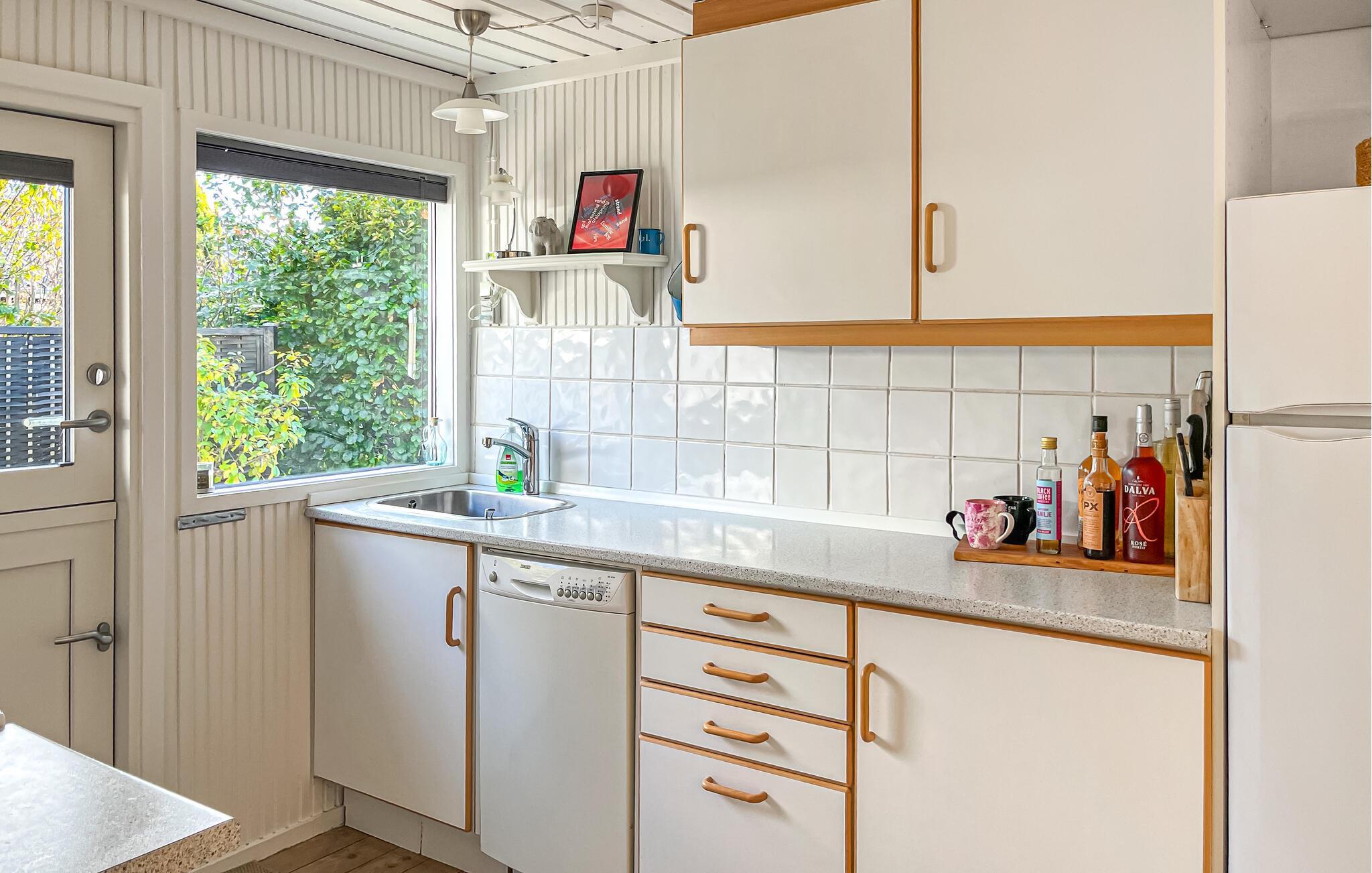Betreten Sie den hellen Wohnbereich Ihres Ferienhauses und genießen Sie die freundliche Atmosphäre. Die großen Fenster lassen viel Licht herein und geben den Blick auf den Garten frei. Machen Sie es sich auf den bequemen Sofas gemütlich, während der Kaminofen an kühleren Tagen eine wohlige Wärme verbreitet. Die Einrichtung kombiniert klassische Holzelemente mit hellen Farben und schafft so eine angenehme, wohnliche Stimmung. Im angrenzenden Essbereich finden Sie Platz für gemeinsame Mahlzeiten, Spiele oder gemütliche Abende. Die gut ausgestattete Küche mit praktischen Arbeitsflächen und direktem Zugang zur Terrasse macht das Kochen leicht und gesellig.