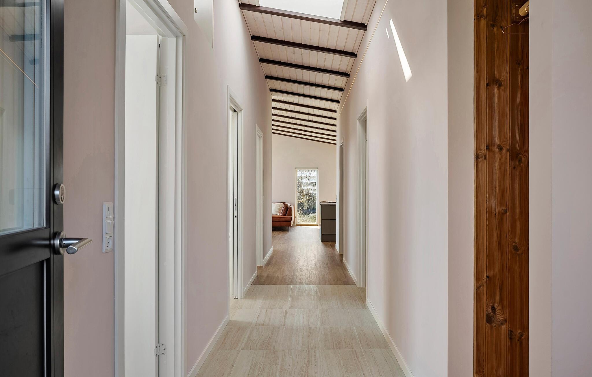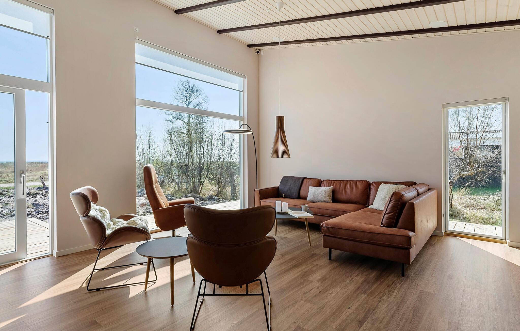 Willkommen in Ihrem lichtdurchfluteten Ferienhaus, nur wenige Schritte vom feinen Sandstrand entfernt. Die klare Architektur und das durchdachte Design schaffen die perfekte Balance zwischen skandinavischer Gemütlichkeit und modernem Komfort. Der offene Wohnbereich mit seinen hohen Decken, den großen Panoramafenstern und der eleganten Sofaecke lädt zu entspannten Stunden ein. Lesen Sie hier ein gutes Buch oder veranstalten Sie einen gemütlichen Filmabend. Die weite Sicht bis zum Horizont holt die Natur ins Haus. Am rustikalen Esstisch mit Blick in den Garten startet der Morgen genussvoll. Die helle, moderne Küche geht fließend in den Wohnbereich über, ideal für gemeinsames Kochen und lange Abende mit gutem Essen. Freuen Sie sich auch auf erholsame Stunden in der hauseigenen Sauna.