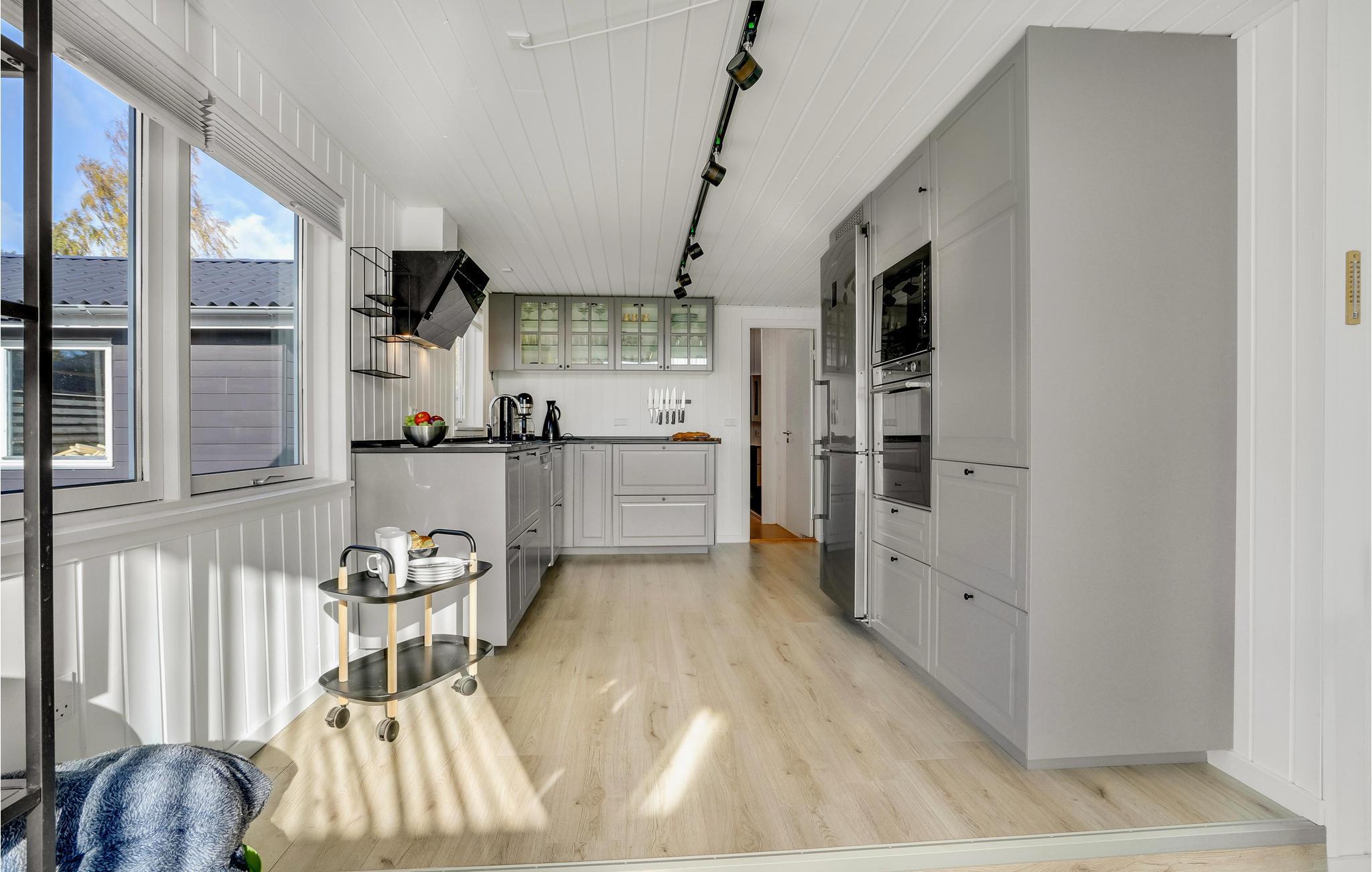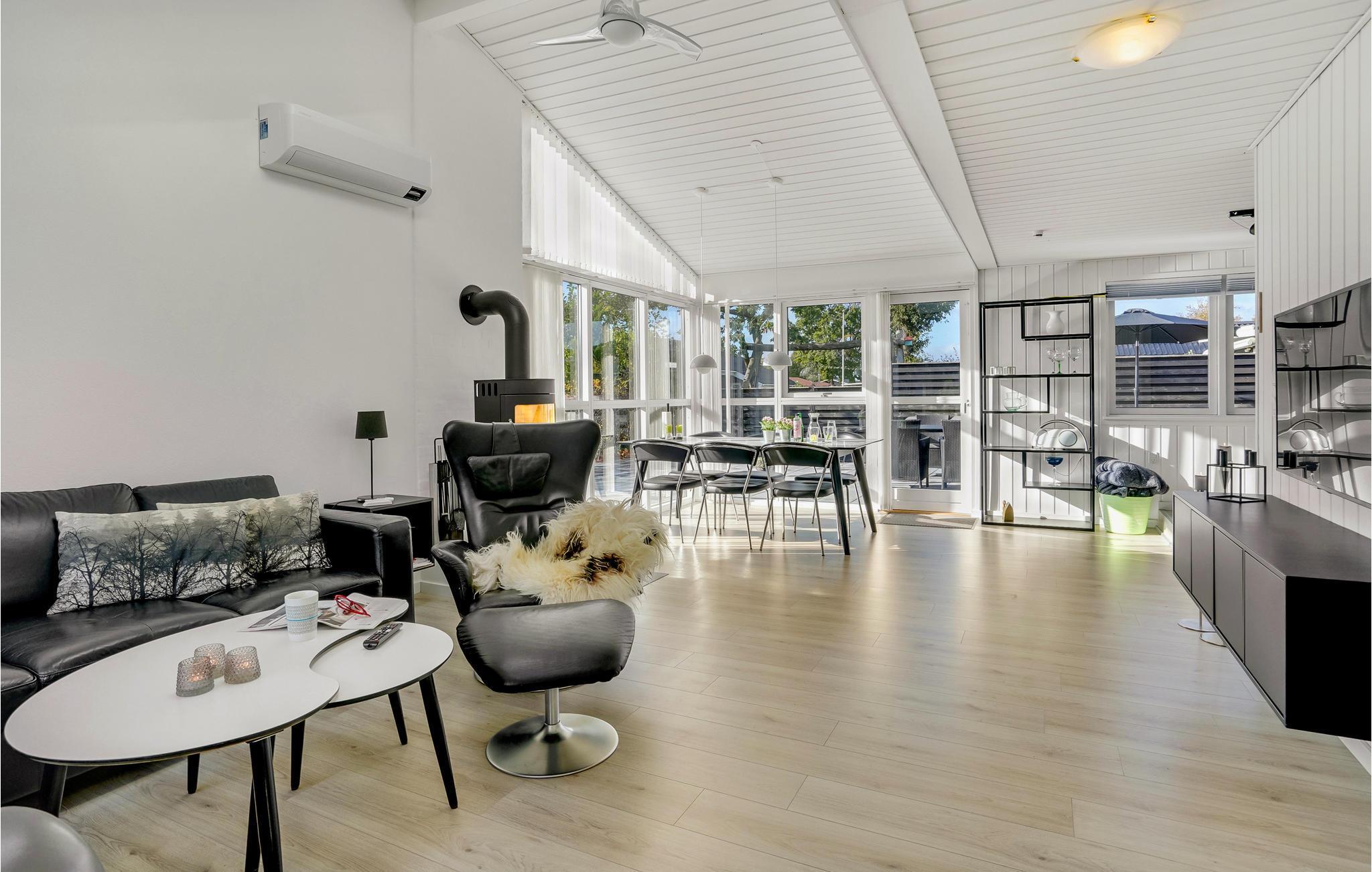 In Øster Hurup nur wenige hundert Meter vom Sandstrand entfernt begrüßt Sie dieses komfortabel und geschmackvoll eingerichtete Ferienhaus. Wegen des Annexbaus bietet es genügend Platz und Privatsphäre und eignet sich somit ideal für eine Familie oder für befreundete Paar. Der helle, offene Wohnbereich wird der natürliche Treffpunkt während Ihres Urlaub und lädt zu geselligen Mahlzeiten und gemütlichen Abenden bei Brettspielen oder einem Tee vorm Kaminofen ein.