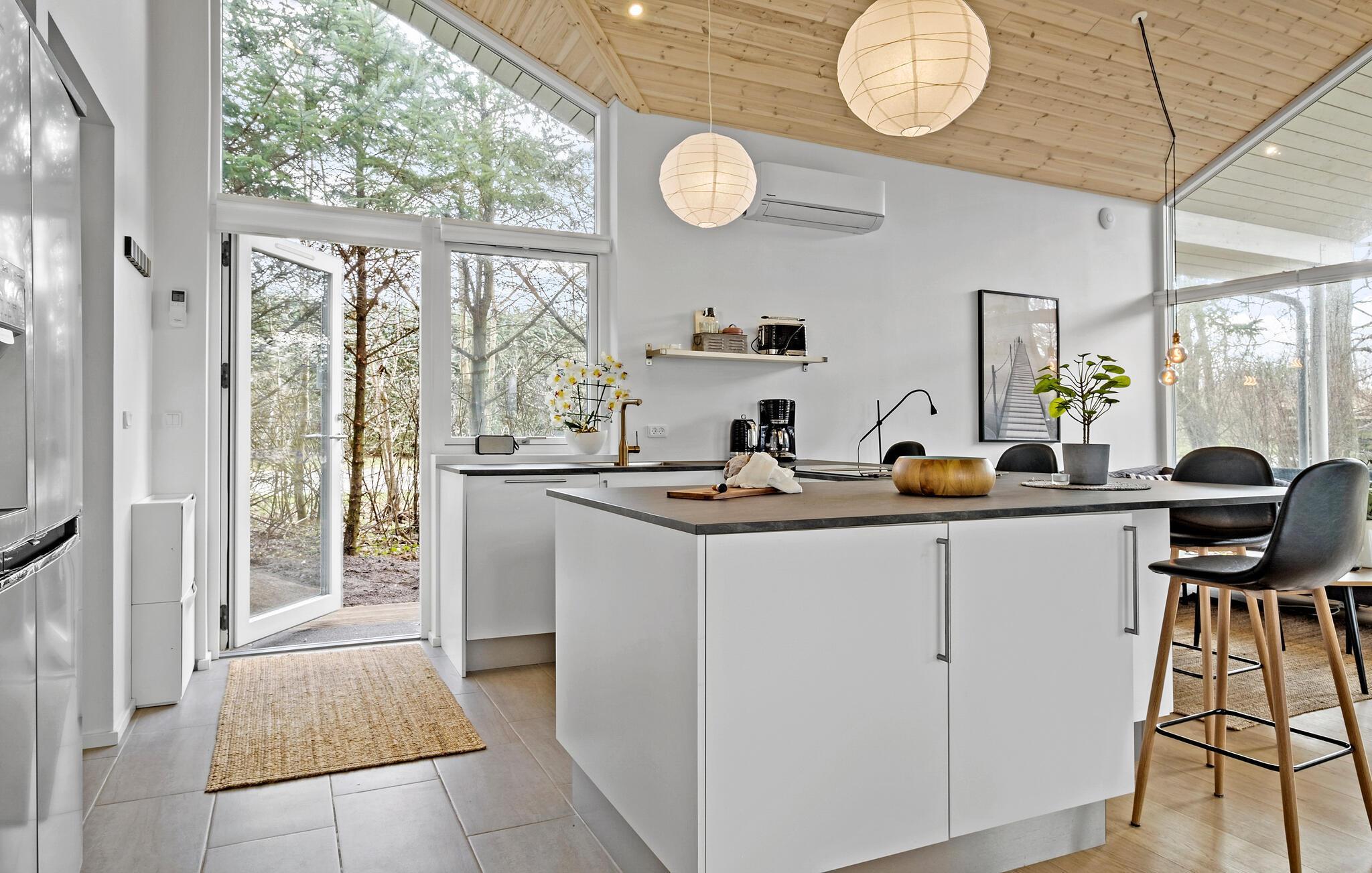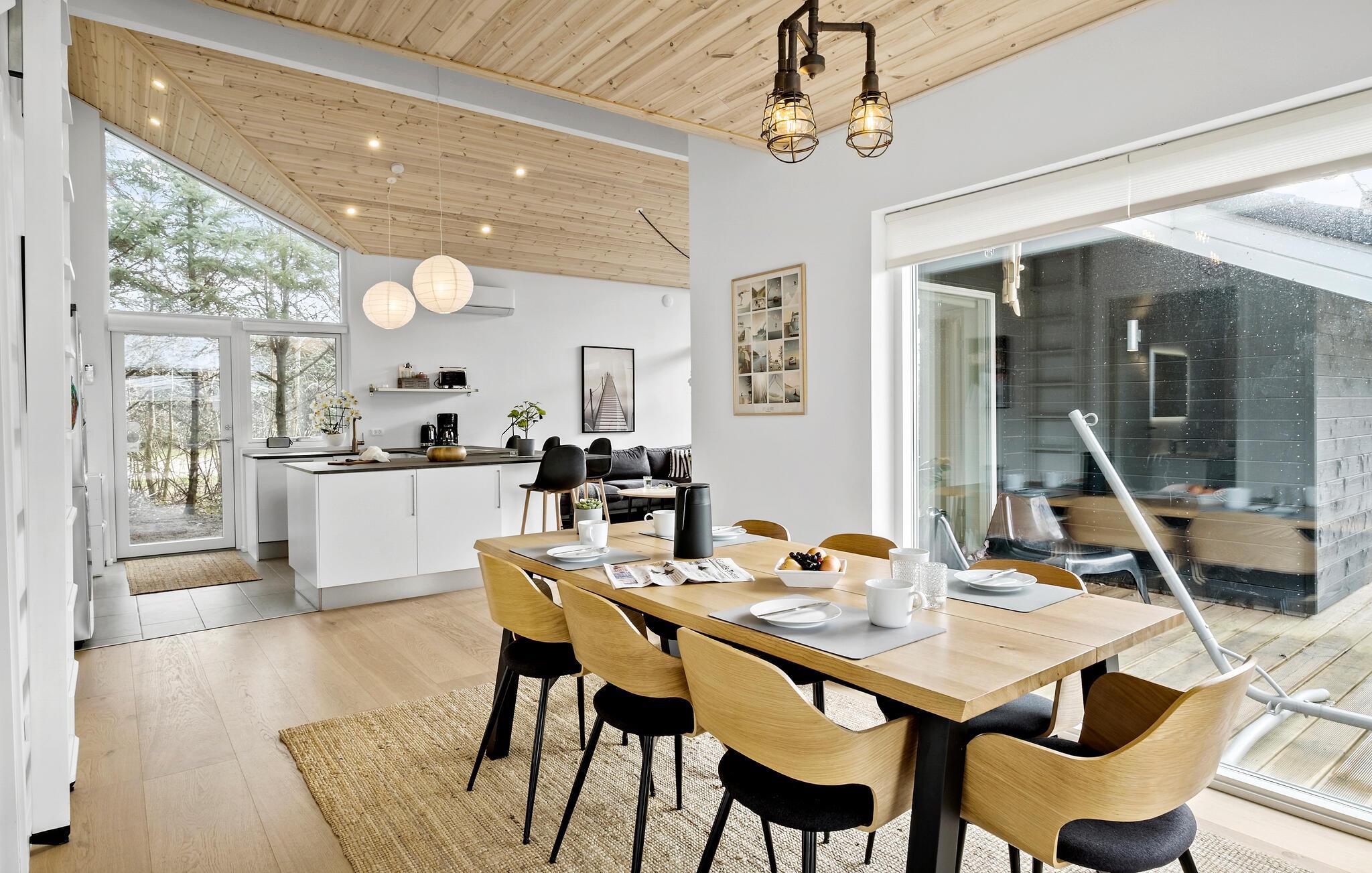 Unweit des familienfreundlichen Sandstrandes von Öster Hurup empfängt Sie dieses stilvolle und einladende Ferienhaus. Hochwertiges Design schafft in Verbindung mit den bodentiefen Fenstern und des dadurch eindringenden Tageslichts eine herrliche Atmosphäre, die Sie zur Ruhe kommen lässt. Fühlen Sie sich hier wie zuhause und versammeln sich am Küchentresen, wo Sie zusammen schnippeln und leckere Mahlzeiten zaubern können. Die Abende können Sie gemütlich auf Sofa verbringen, einen Film schauen oder am Esstisch sich bei Brettspielen vergnügen.