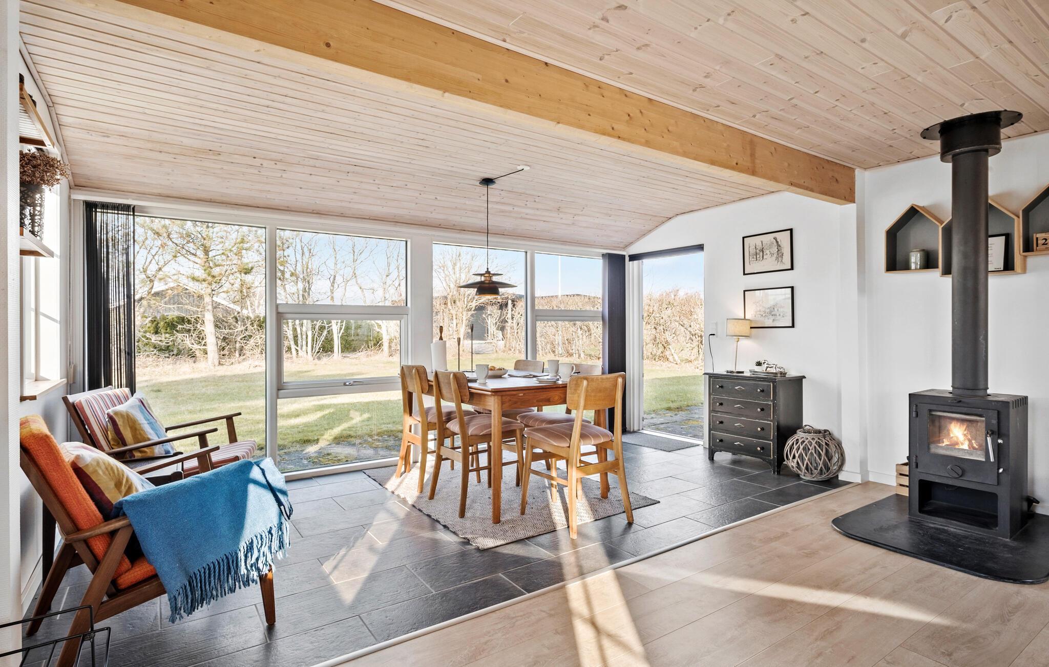 Einen kurzen Spaziergang vom herrlichen Sandstrand entfernt, empfängt Sie dieses helle und freundliche Ferienhaus auf einem großen Grundstück. Im Inneren empfängt Sie ein Wohlfühlort, der mit klassischen Holzmöbeln, ausgewählten Designobjekten und Deko sowie einem wärmenden Holzofen für behagliche Stimmung sorgt. Genießen Sie, das im Essbereich hereinströmende Tageslicht und treten Sie hinaus auf einer der Terrassen, sodass Sie je nach Tageszeit sich die Sonnen- oder Schattenseite aussuchen können, während Ihre Kinder im Garten spielen und fröhlich auf dem Spielturm klettern, rutschen oder schaukeln.
