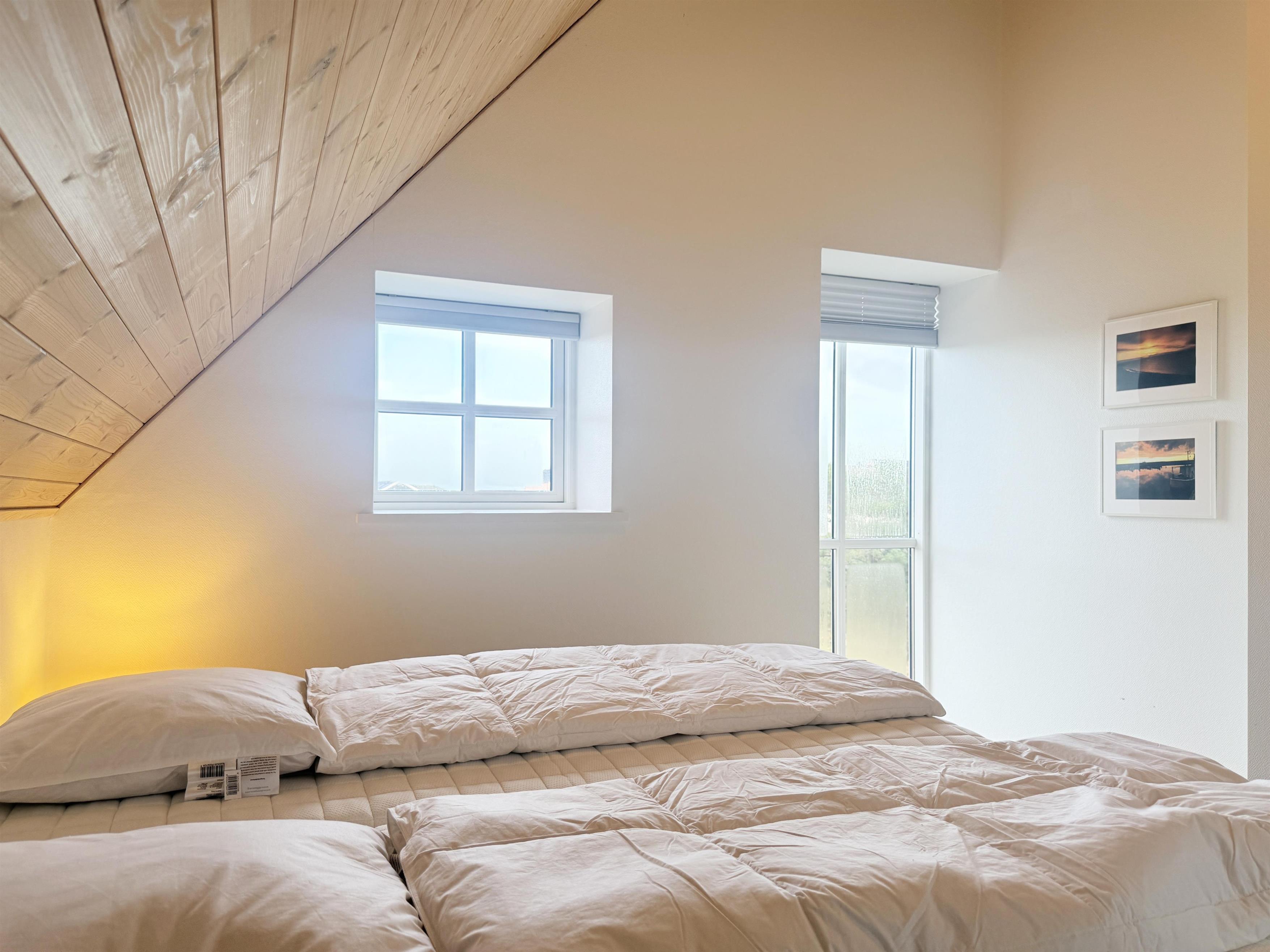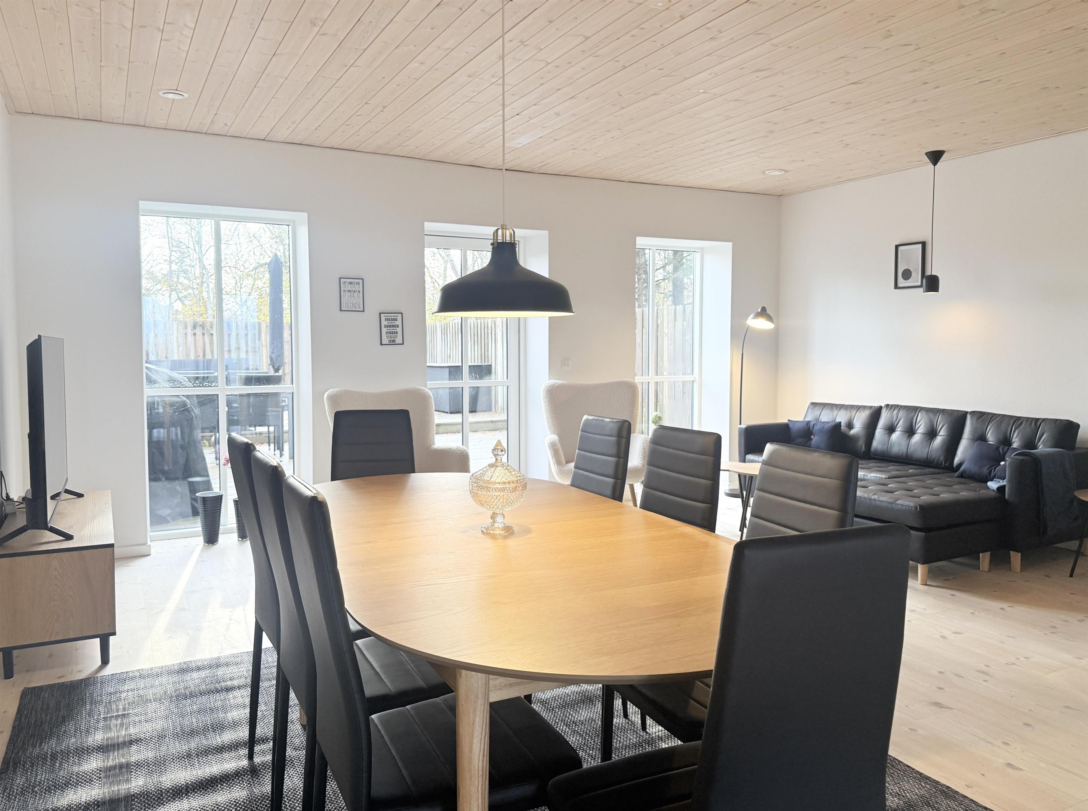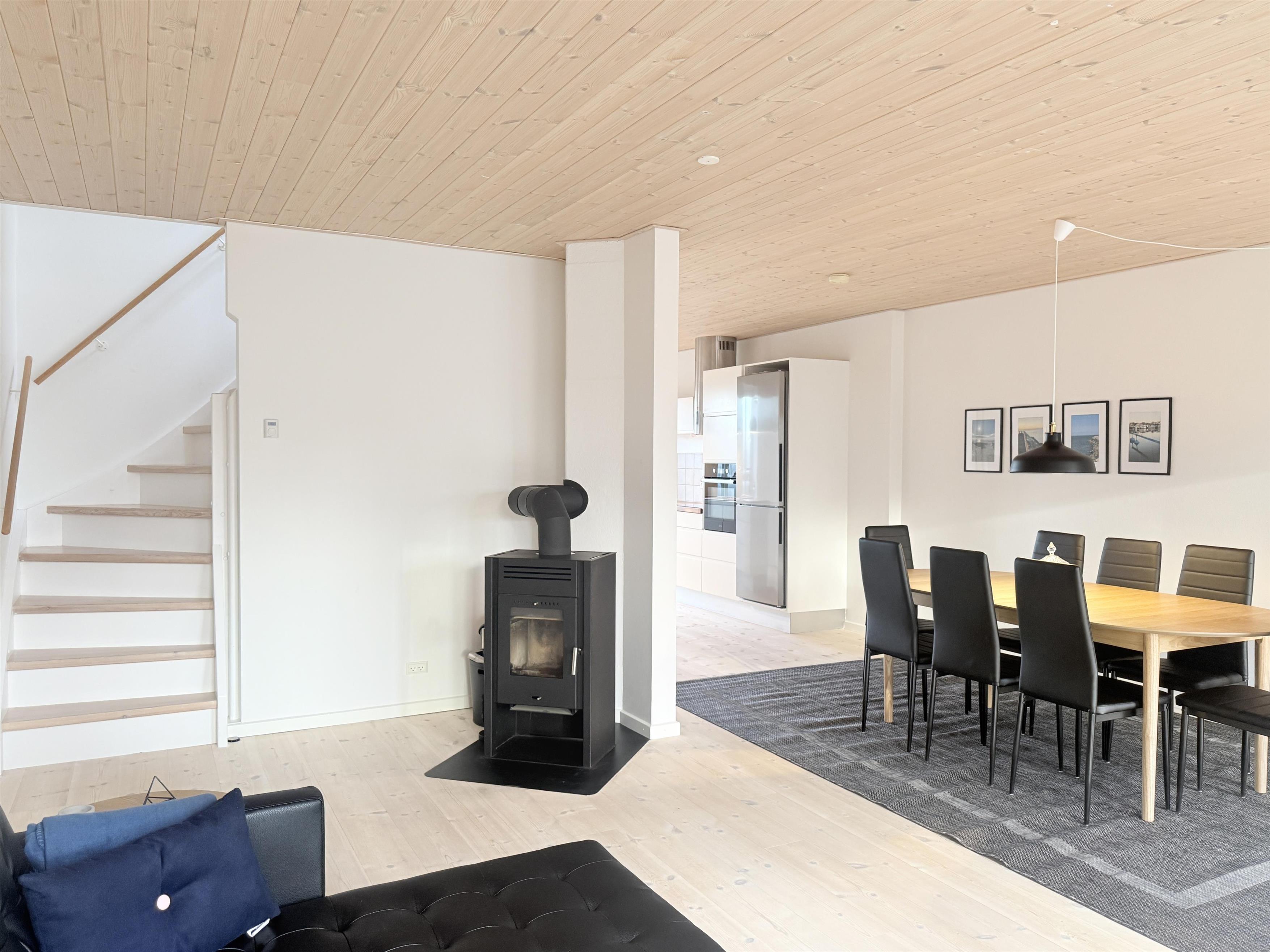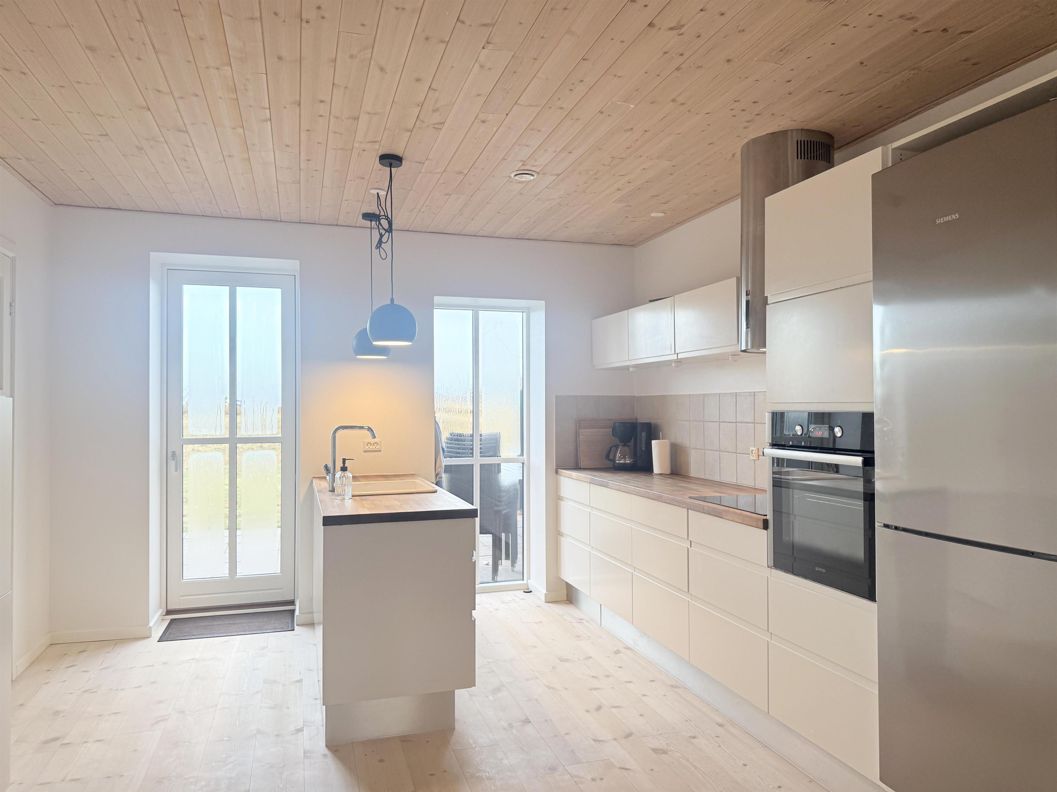 Dieses wunderschöne Reihenhaus mit Meerblick erstreckt sich über zwei Etagen an einem der schönsten Strände von Læsø und bietet den perfekten Rahmen für einen unvergesslichen Urlaub. Lichtdurchflutete Räume erwarten Sie überall im Haus. Im Erdgeschoss befinden sich eine einladende Wohnküche und ein geräumiges Wohnzimmer mit Fernseher und gemütlicher Sofaecke. Von hier aus gelangen Sie auch auf die schöne Holzterrasse. Ein Gäste-WC ist ebenfalls vorhanden. Im ersten Stock befinden sich drei Schlafzimmer, zwei mit Doppelbetten und eines mit zwei Einzelbetten. Im Flur steht ein weiteres Schlafsofa. Zusätzlich gibt es ein schönes Badezimmer mit Dusche. Das Haus liegt im mittleren Teil der Anlage. Terrassen erstrecken sich über beide Seiten des Hauses, und hochwertige Gartenmöbel sowie ein Grill stehen zur Verfügung. Direkt vor der Tür befinden sich der Strand und das charmante Hafenviertel mit Jachthafen, Restaurants, Fischhändlern und Einkaufsmöglichkeiten in Østerby. Eine traumhafte Lage, die auch den perfekten Rahmen für unvergessliche Familienabende im sanften Schein des Sonnenuntergangs über dem Kattegat bietet.