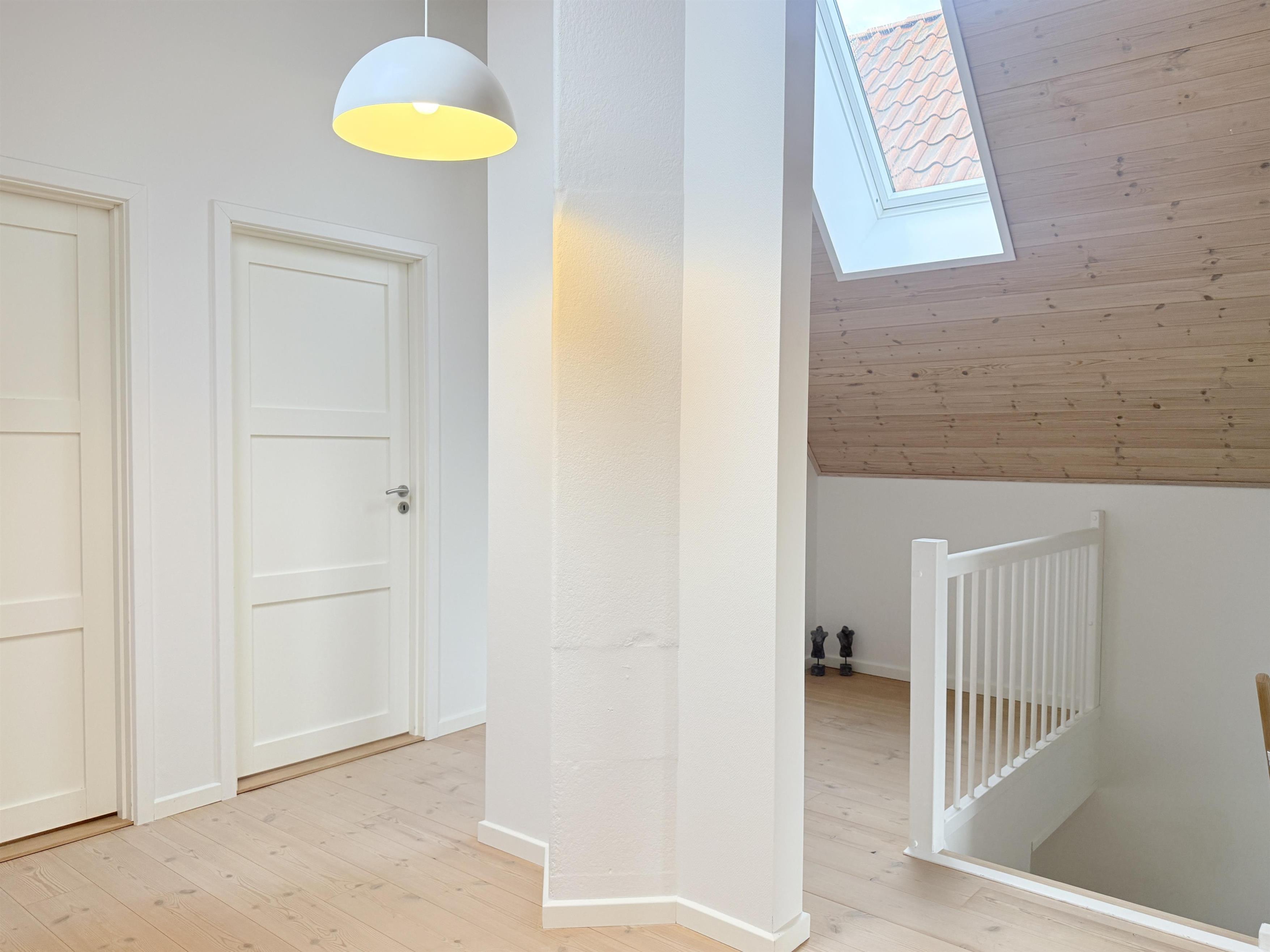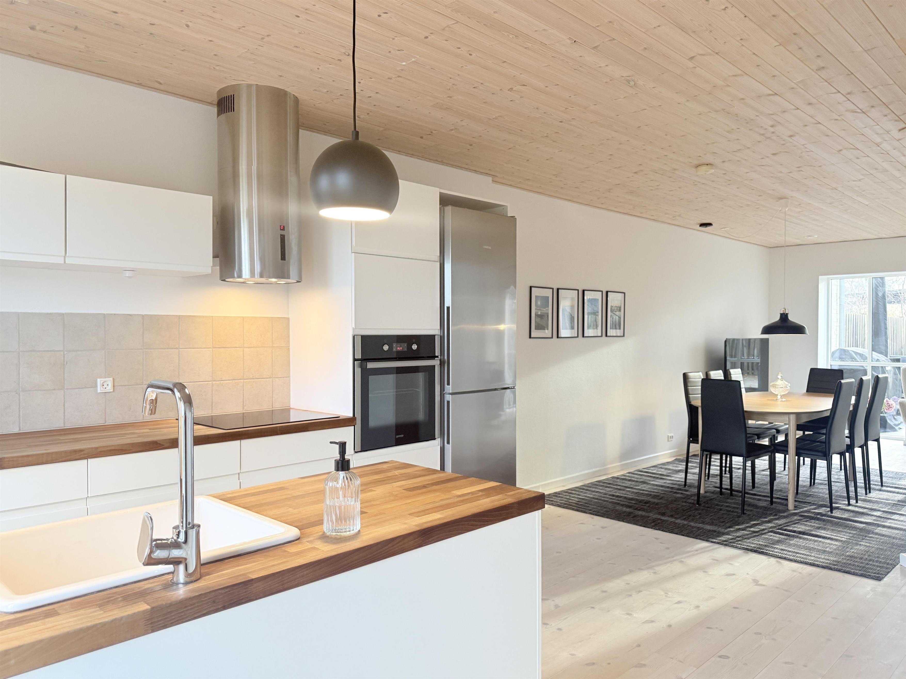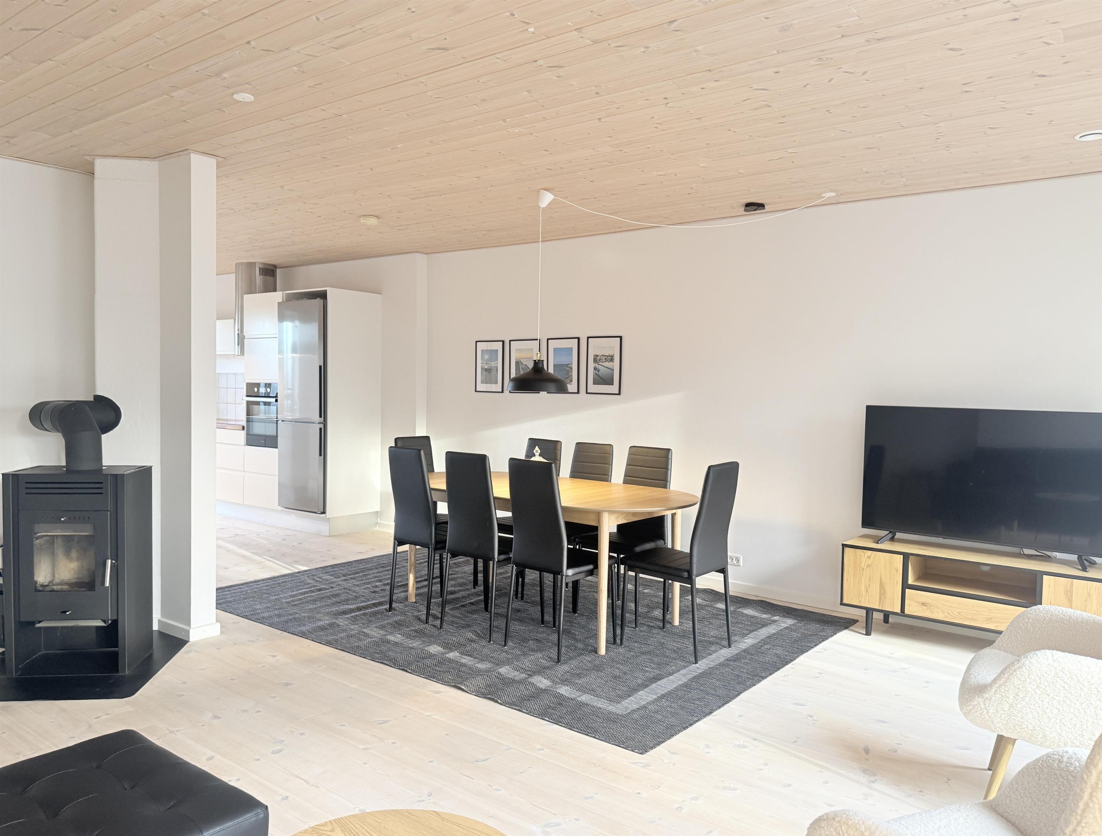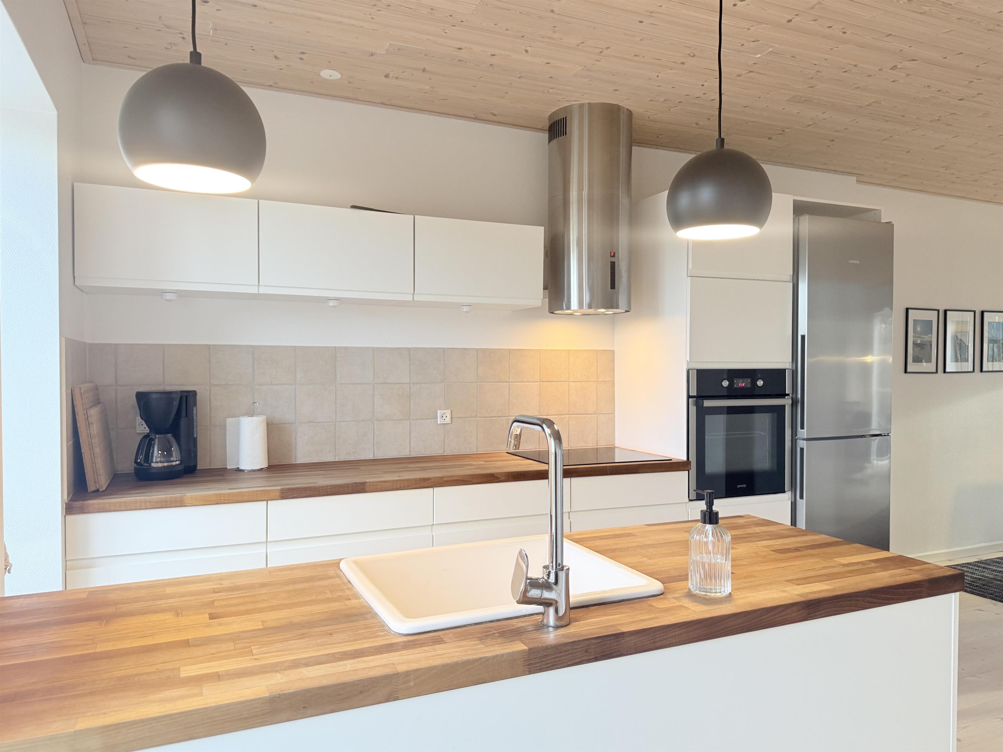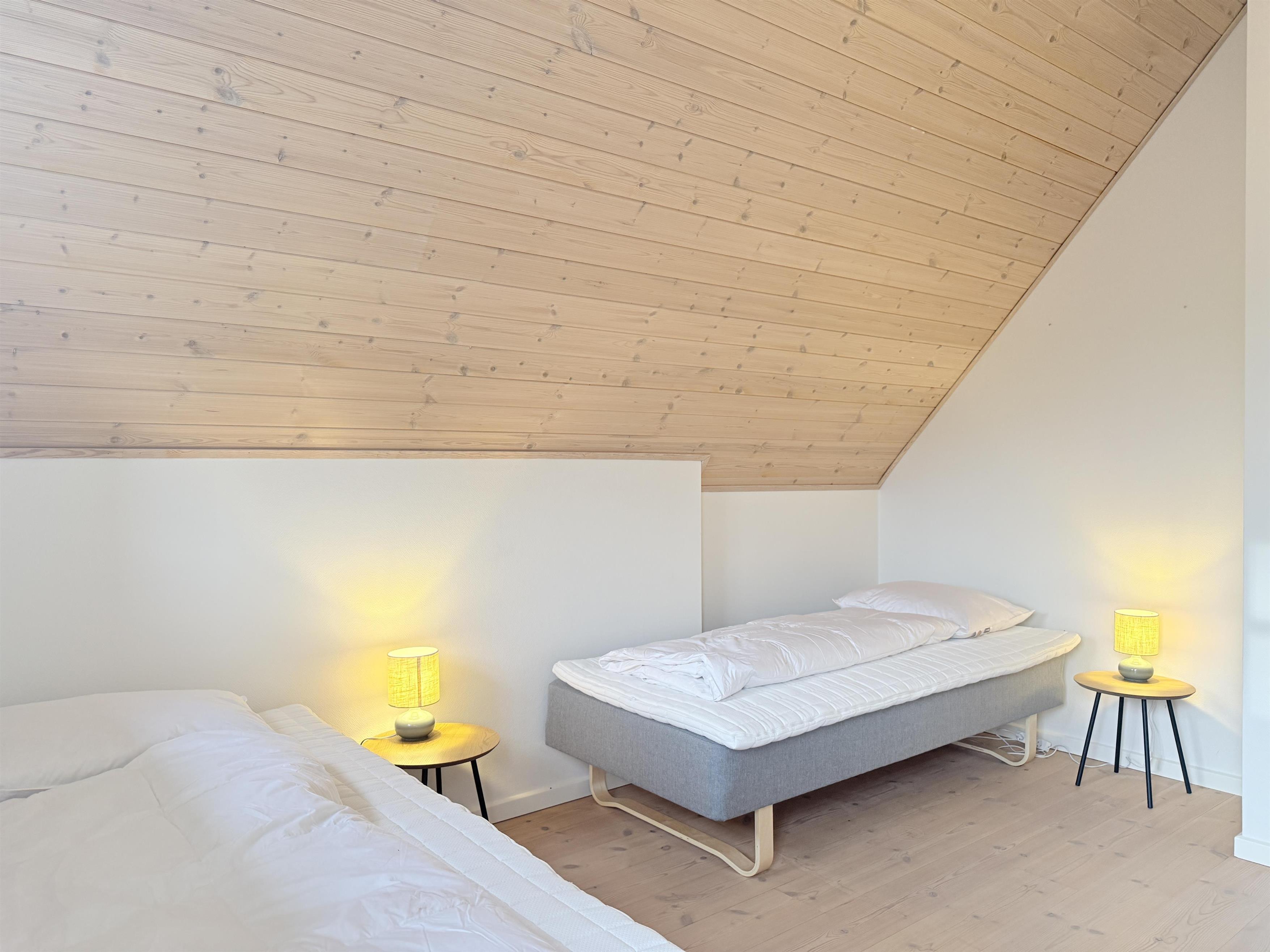 Dieses wunderschöne Reihenhaus mit Meerblick erstreckt sich über zwei Etagen an einem der schönsten Strände von Læsø und bietet den perfekten Rahmen für einen unvergesslichen Urlaub. Lichtdurchflutete Räume erwarten Sie überall im Haus. Im Erdgeschoss befinden sich eine einladende Wohnküche und ein geräumiges Wohnzimmer mit Fernseher und gemütlicher Sofaecke. Von hier aus gelangen Sie auch auf die schöne Holzterrasse. Ein Gäste-WC ist ebenfalls vorhanden. Im ersten Stock befinden sich drei Schlafzimmer, zwei mit Doppelbetten und eines mit zwei Einzelbetten. Im Flur steht ein weiteres Schlafsofa. Zusätzlich gibt es ein schönes Badezimmer mit Dusche. Das Haus liegt im mittleren Teil der Anlage. Terrassen erstrecken sich über beide Seiten des Hauses, und hochwertige Gartenmöbel sowie ein Grill stehen zur Verfügung. Direkt vor der Tür befinden sich der Strand und das charmante Hafenviertel mit Jachthafen, Restaurants, Fischhändlern und Einkaufsmöglichkeiten in Østerby. Eine traumhafte Lage, die auch den perfekten Rahmen für unvergessliche Familienabende im sanften Schein des Sonnenuntergangs über dem Kattegat bietet.