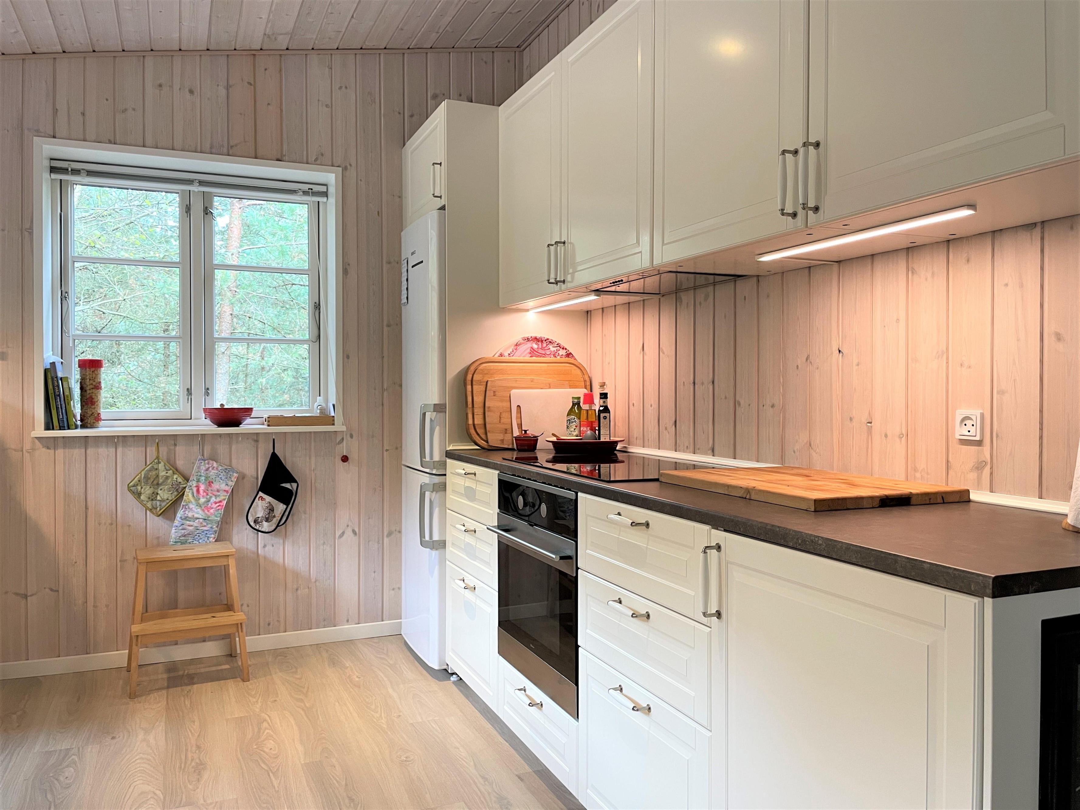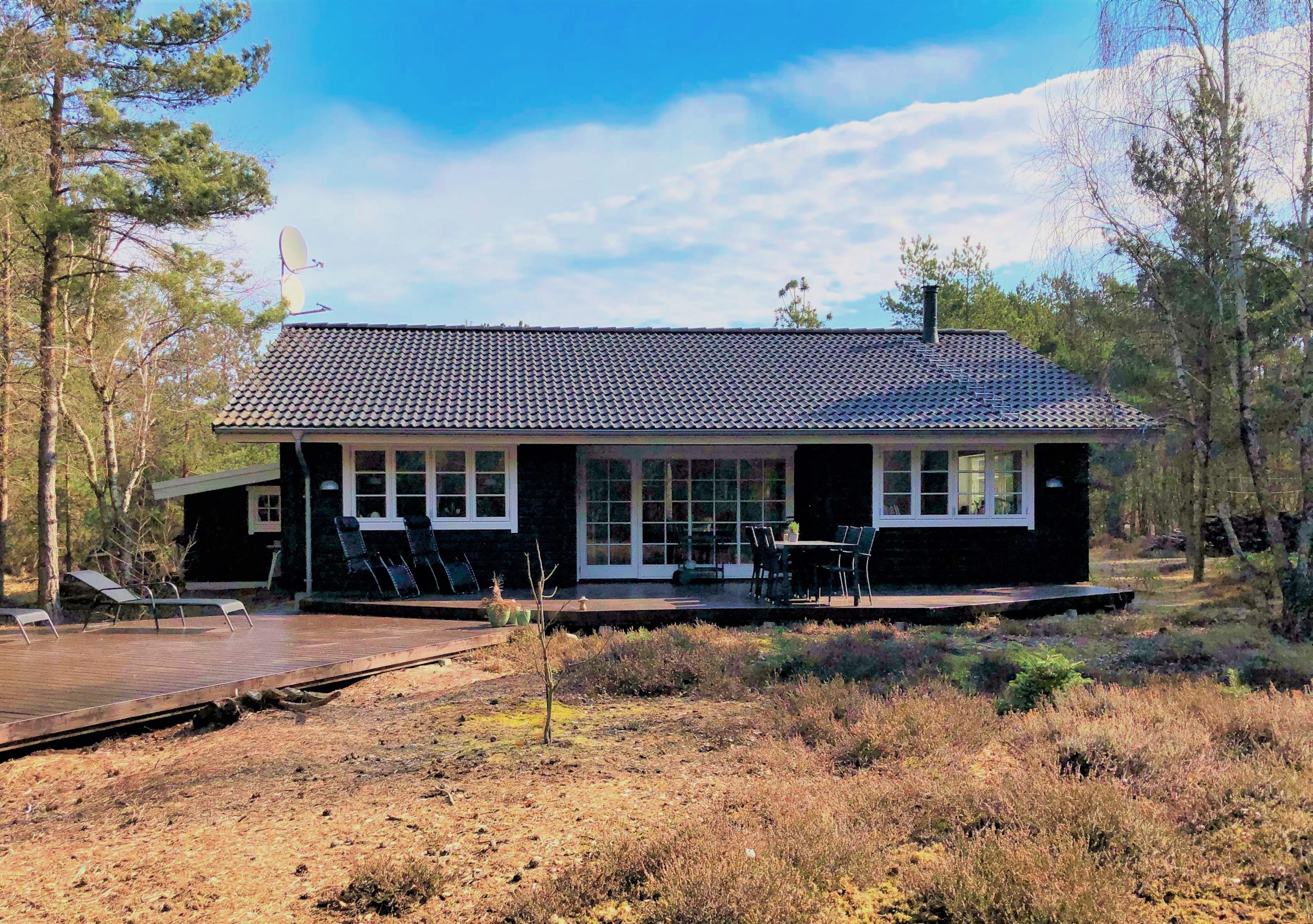 Exklusives, topmodernes Holzsommerhaus auf einem grossen, schönen und ungestörten Naturgrundstück.Das Haus ist geschmackvoll eingerichtet und hat allen Komfort,der dazu beträgt, dass Sie einen erholsamen Urlaub verbringen können.Es gibt eine überdachte Terrasse mit guten Gartenmöbeln. Die Küche ist wohlausgestattet, das Wohnzimmer ist mit modernen, bequemen Möbeln und Kaminofen eingerichtet. Deutsches Paraboltv und Internet steht zur Verfügung. Es gibt drei Schlafzimmer und zwei guten Toiletten mit Dusch und das eine mit Sauna. Nur ca.800 Meter zum Hafen, Strand und Einkaufsmöglichkeiten.
