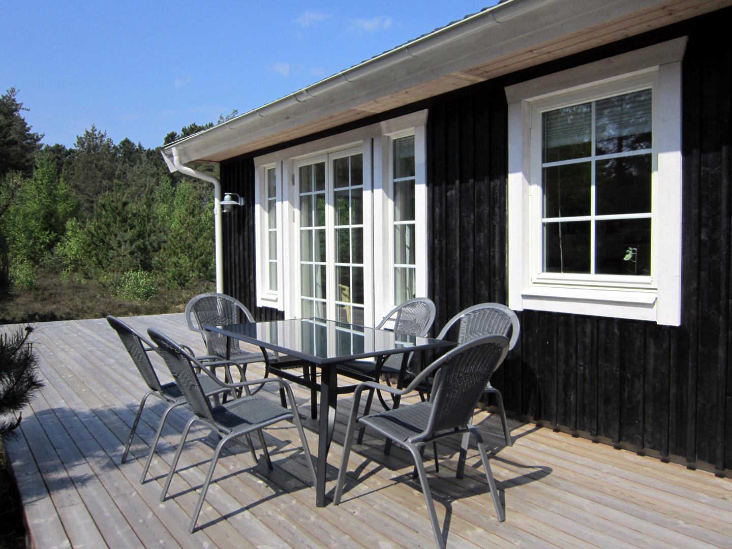In beliebtem Feriehausgebiet mit viel Ruhe und genügend Platz für alle finden Sie dieses komfortable Ferienhaus. Das Haus hat eine fantastische Lage auf einem Grundstück mit Heidekraut. Alle Räume sind geschmackvoll eingerichtet, so dass man sich hier einfach nur wohl fühlen kann. Die Küche ist wohlausgestattet, das Wohnzimmer hat schöne,moderne Möbeln. Es gibt drei Schlafzimmer und eine gute Toilette. Eine gute Terrasse,wo mann Windschutz finden kann. Überall gibt es eine ruhige Stimmung. Zum Strand und Einkauf nur 800 Meter. Ladesteckdose Typ 2 für Elektroautos.
