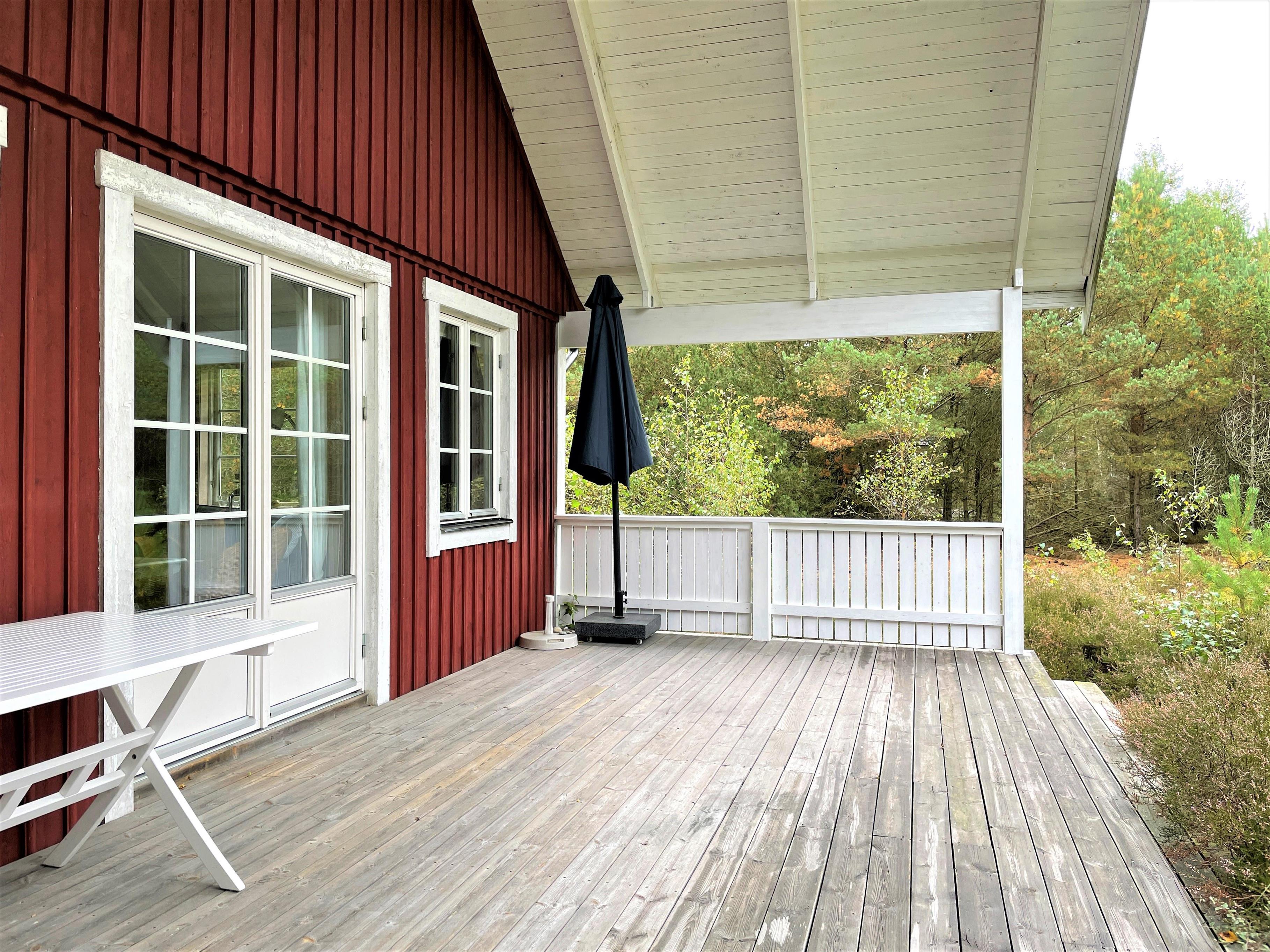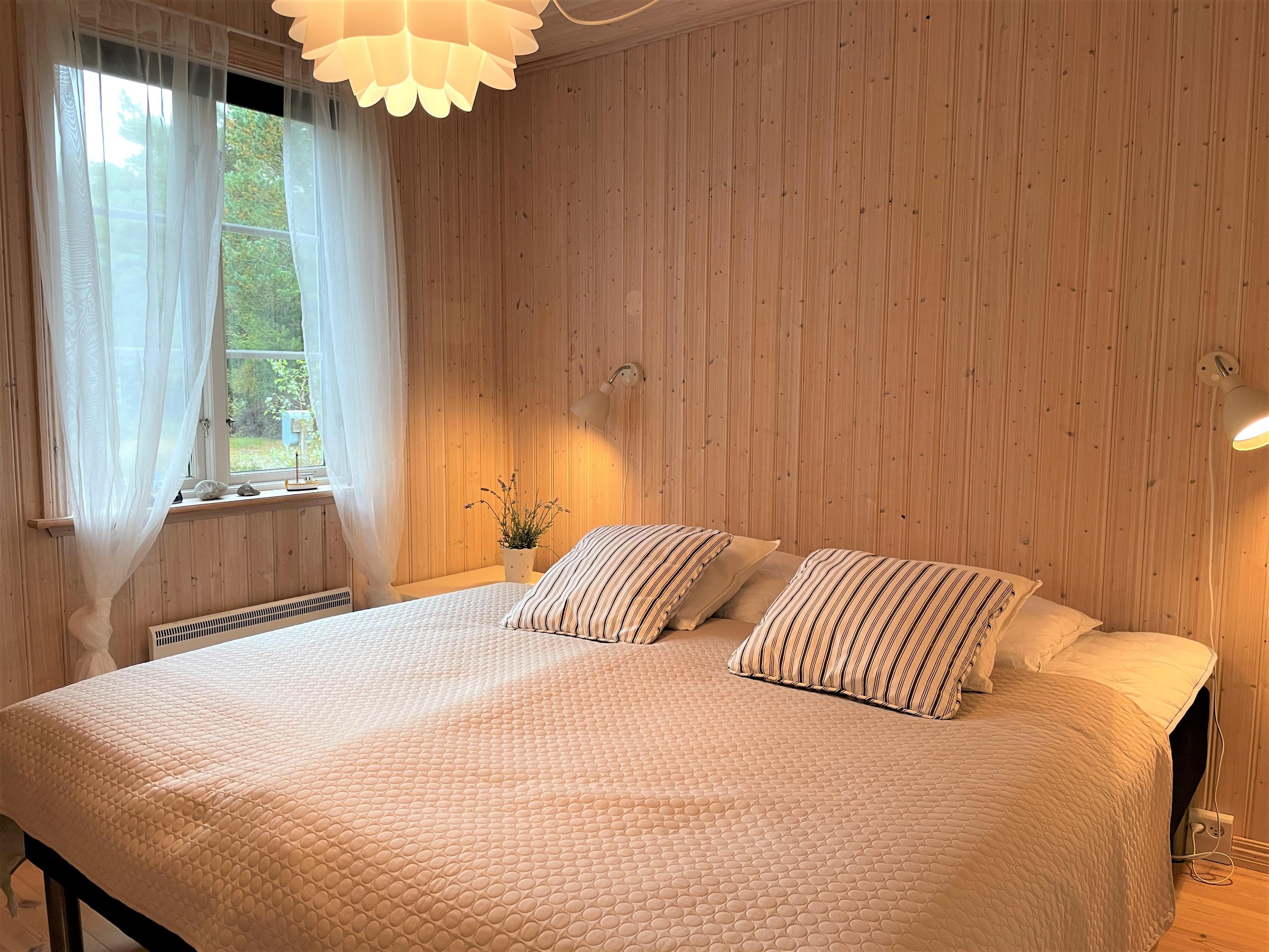 Schönes Balkensommerhaus. Das Haus liegt auf einem grossen Grundstück mit Waldbepflanzung und Heidekraut in einer Sackgasse. Küche / Esszimmer mit hoher Decke. Wohnzimmer mit Paraboltv und schönen,modernen Möbeln. Gute Toilette mit Dusch und drei Schlafzimmer mit guten Betten. Ein ganz helles und geschmackvolles Haus. Auf der überdachten Terrasse können Sie richtig die Natur geniessen. Nur 350 Meter zum Strand.
