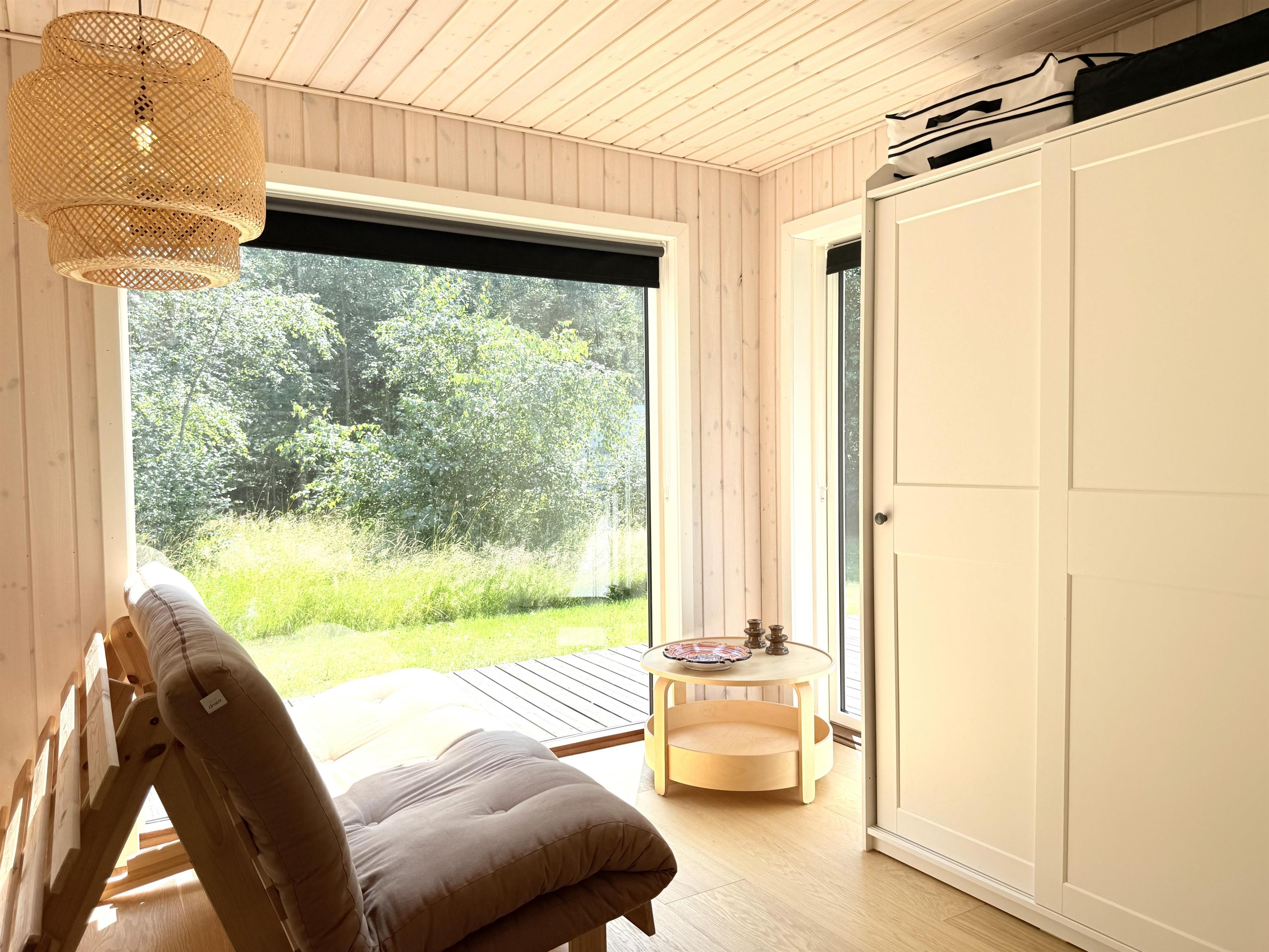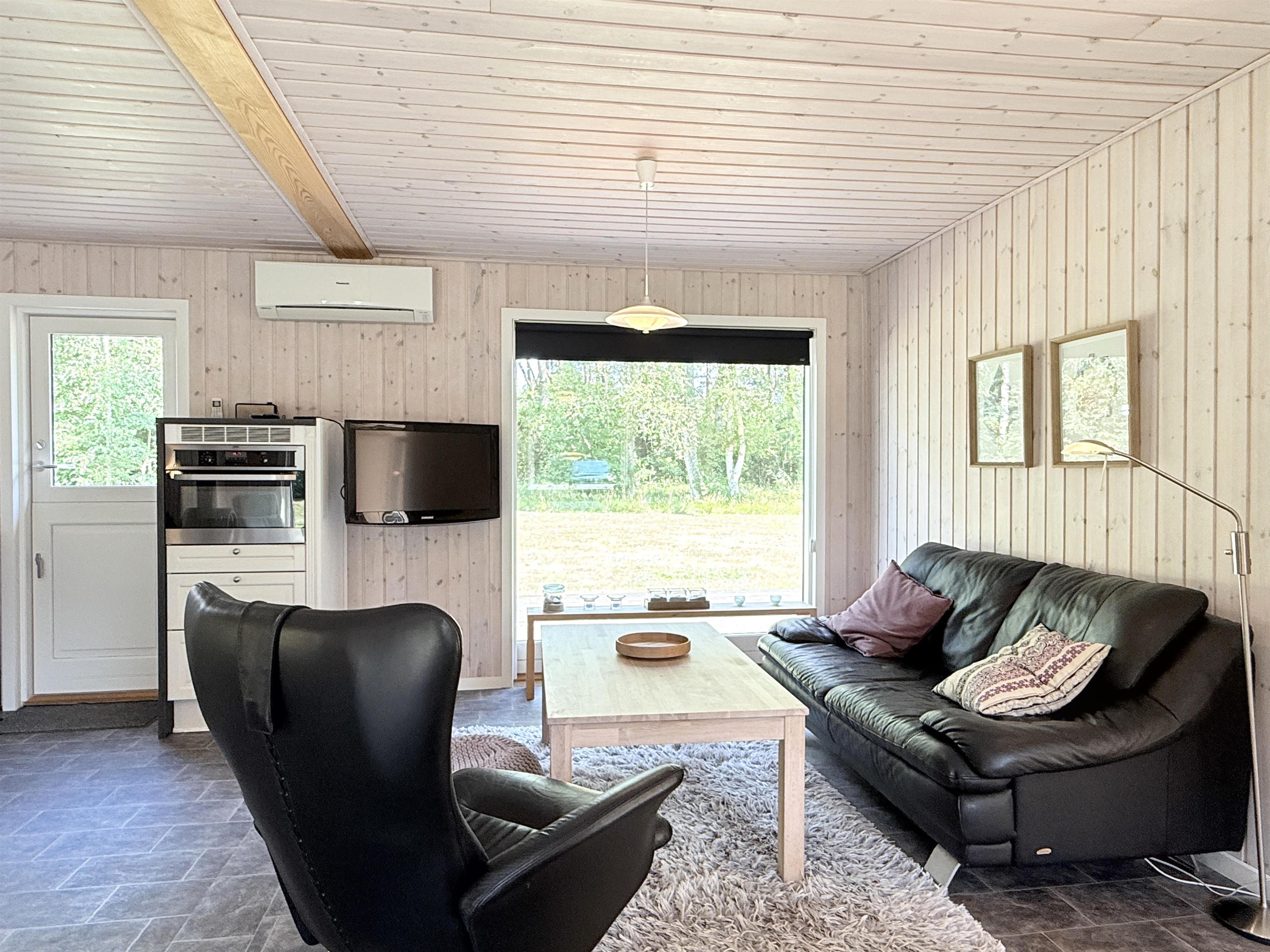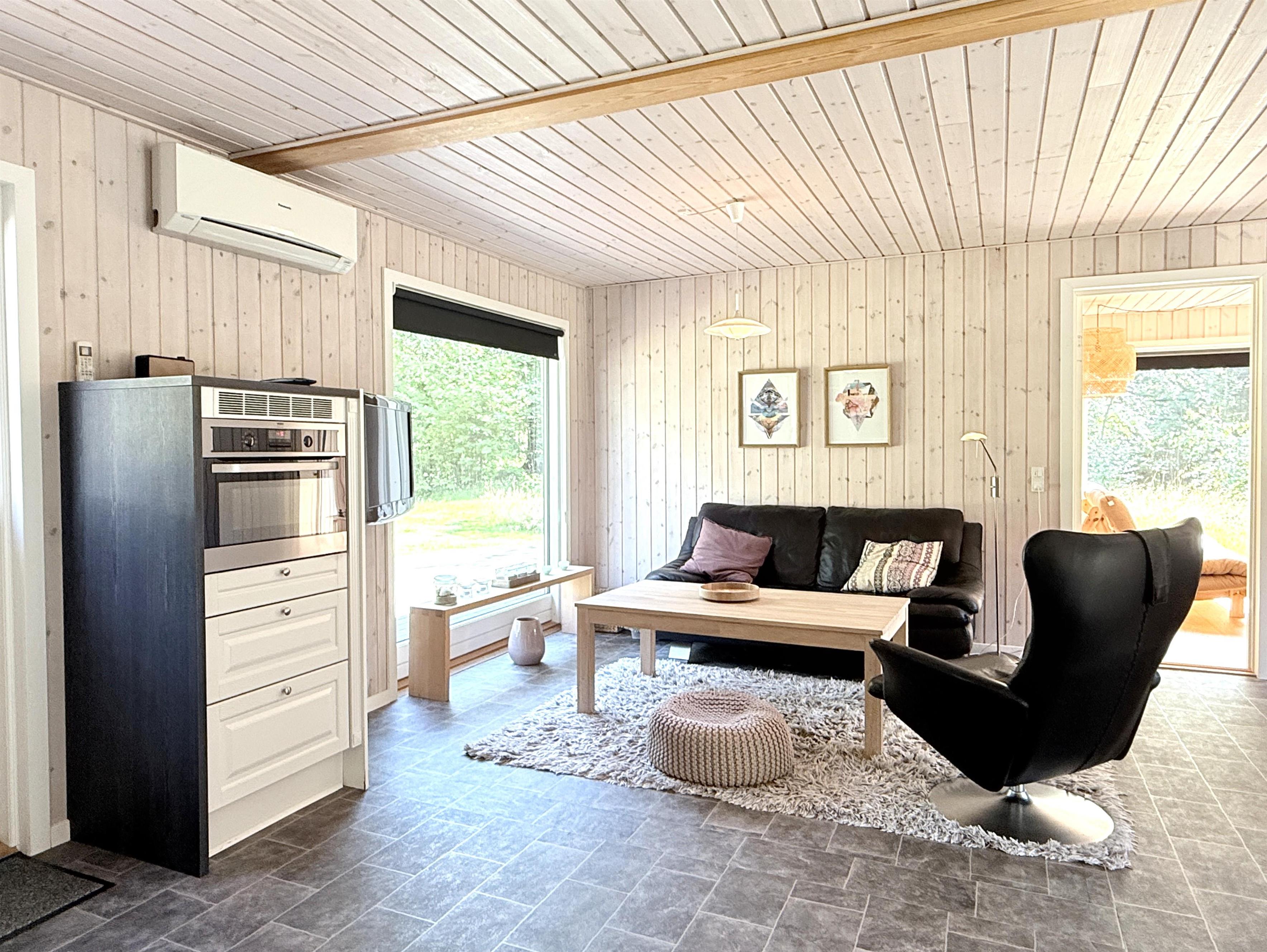 Das Ferienhaus verfügt über eine große, helle Wohnküche mit moderner Küche, Essbereich und gemütlicher Sofaecke mit Fernseher. Vom Wohnzimmer aus gelangt man auf die große, brandneue Holzterrasse (Herbst 2025), die mit ihren vielen Quadratmetern zu sonnigen Momenten inmitten der Natur einlädt. Das Haus verfügt über zwei gute Schlafzimmer mit viel Stauraum. Von einem Schlafzimmer aus gelangt man auch auf die Terrasse, wo der hauseigene Grill genutzt werden kann. Ein zusätzliches Zimmer mit Schlafsofa steht bei Bedarf zur Verfügung. Außerdem gibt es ein brandneues, schönes Badezimmer (2024). Ein Nebengebäude mit Waschmaschine und Trockner ist vorhanden. Neben der Holzterrasse mit Gartenmöbeln und Sonnenliegen gibt es auf dem Grundstück mehrere gemütliche Ecken, darunter eine Terrassenecke mit schönem Unterstand, zusätzlichen Gartenmöbeln und einer Feuerstelle. Hier können sich Familie und Hund vergnügen.
