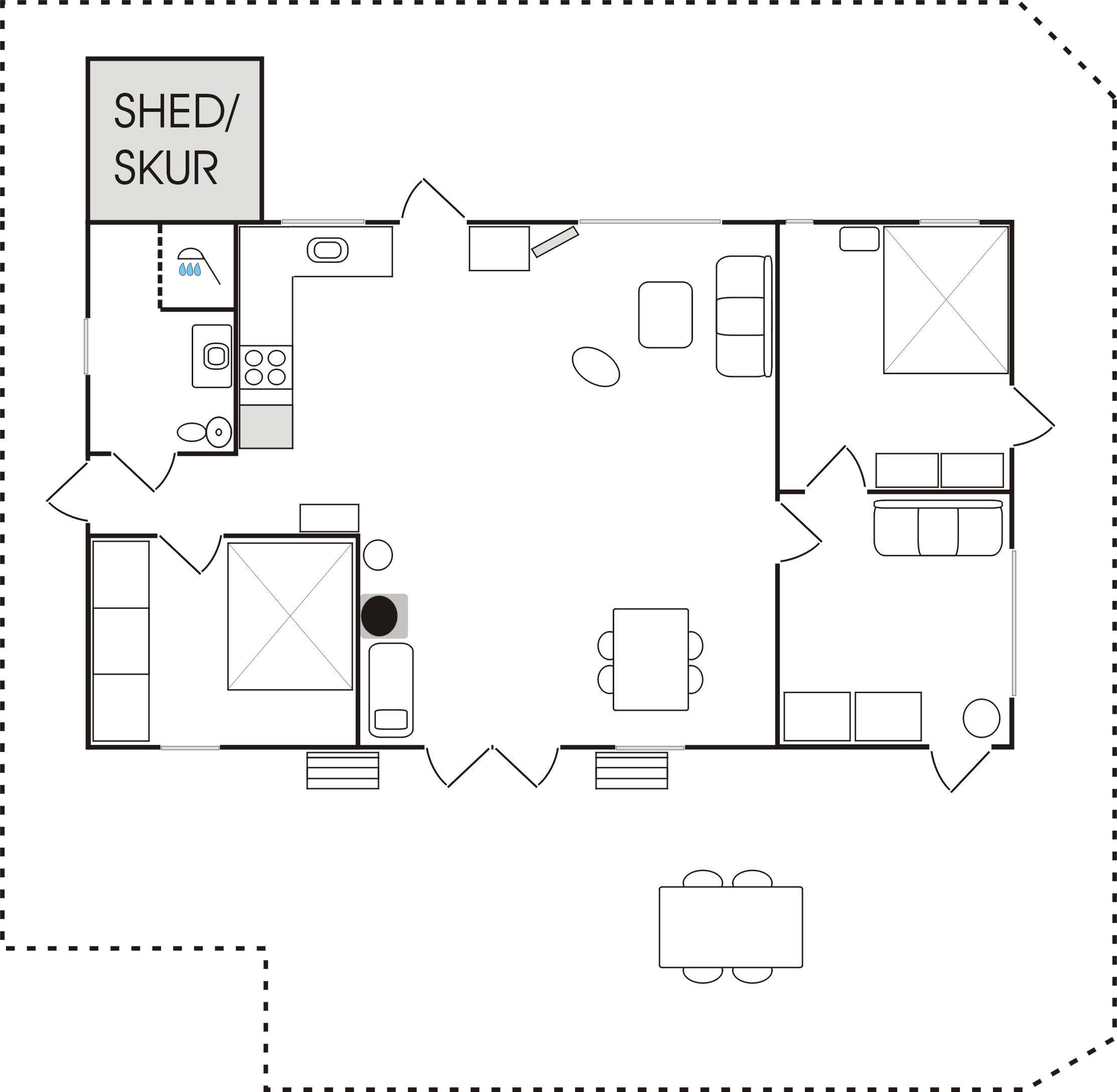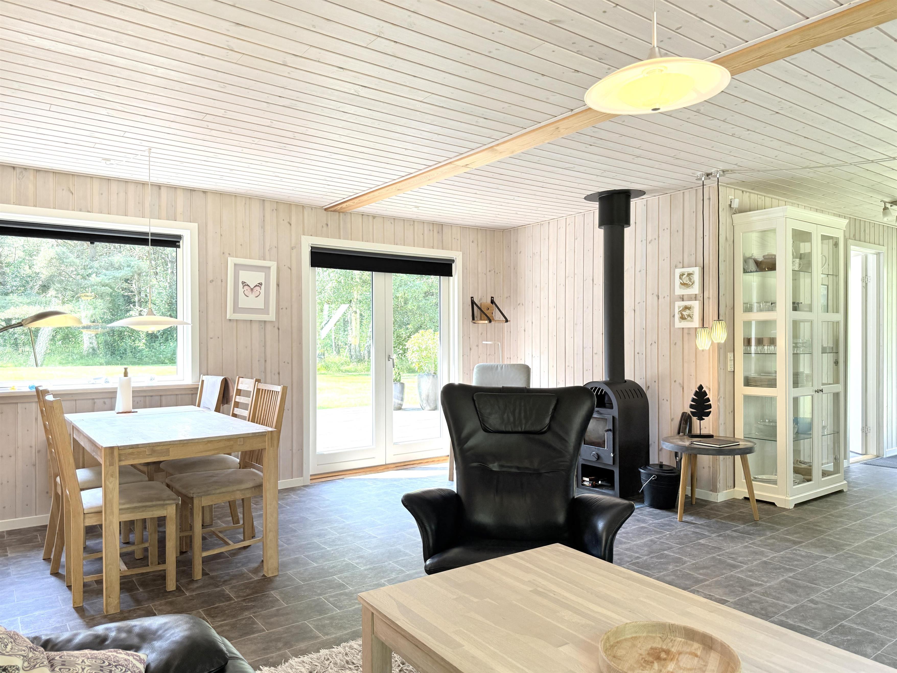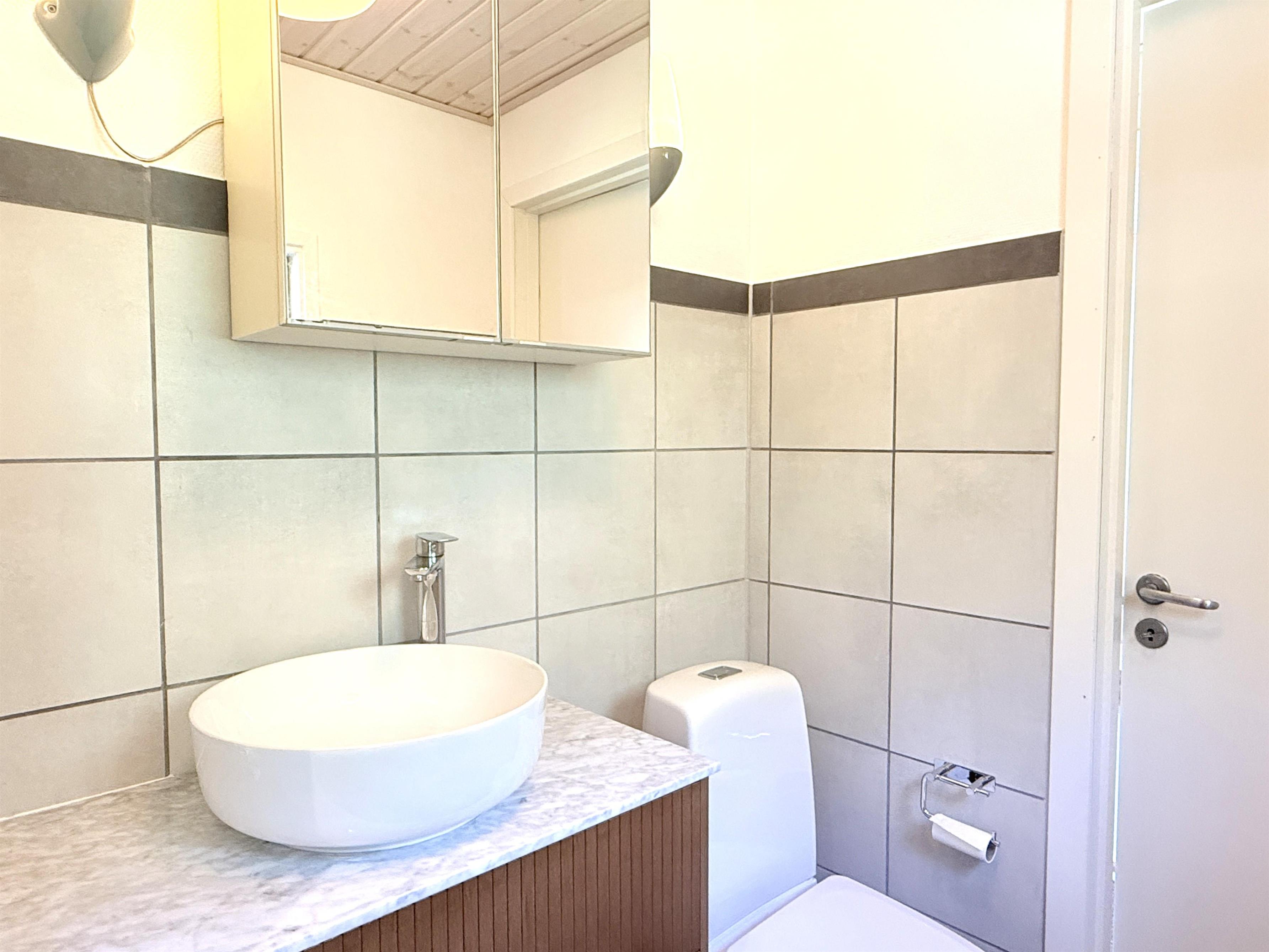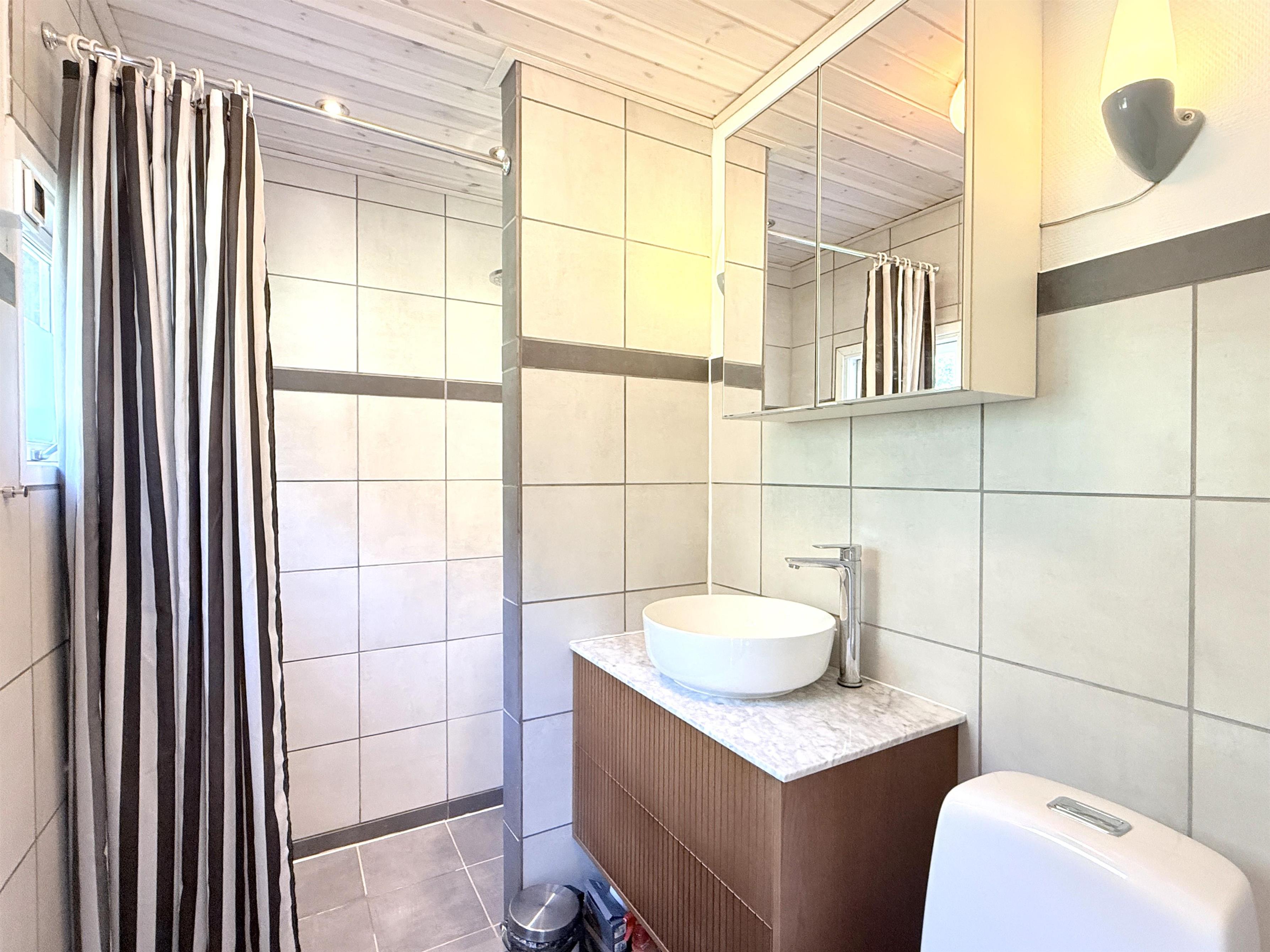 Das Ferienhaus verfügt über eine große, helle Wohnküche mit moderner Küche, Essbereich und gemütlicher Sofaecke mit Fernseher. Vom Wohnzimmer aus gelangt man auf die große, brandneue Holzterrasse (Herbst 2025), die mit ihren vielen Quadratmetern zu sonnigen Momenten inmitten der Natur einlädt. Das Haus verfügt über zwei gute Schlafzimmer mit viel Stauraum. Von einem Schlafzimmer aus gelangt man auch auf die Terrasse, wo der hauseigene Grill genutzt werden kann. Ein zusätzliches Zimmer mit Schlafsofa steht bei Bedarf zur Verfügung. Außerdem gibt es ein brandneues, schönes Badezimmer (2024). Ein Nebengebäude mit Waschmaschine und Trockner ist vorhanden. Neben der Holzterrasse mit Gartenmöbeln und Sonnenliegen gibt es auf dem Grundstück mehrere gemütliche Ecken, darunter eine Terrassenecke mit schönem Unterstand, zusätzlichen Gartenmöbeln und einer Feuerstelle. Hier können sich Familie und Hund vergnügen.
