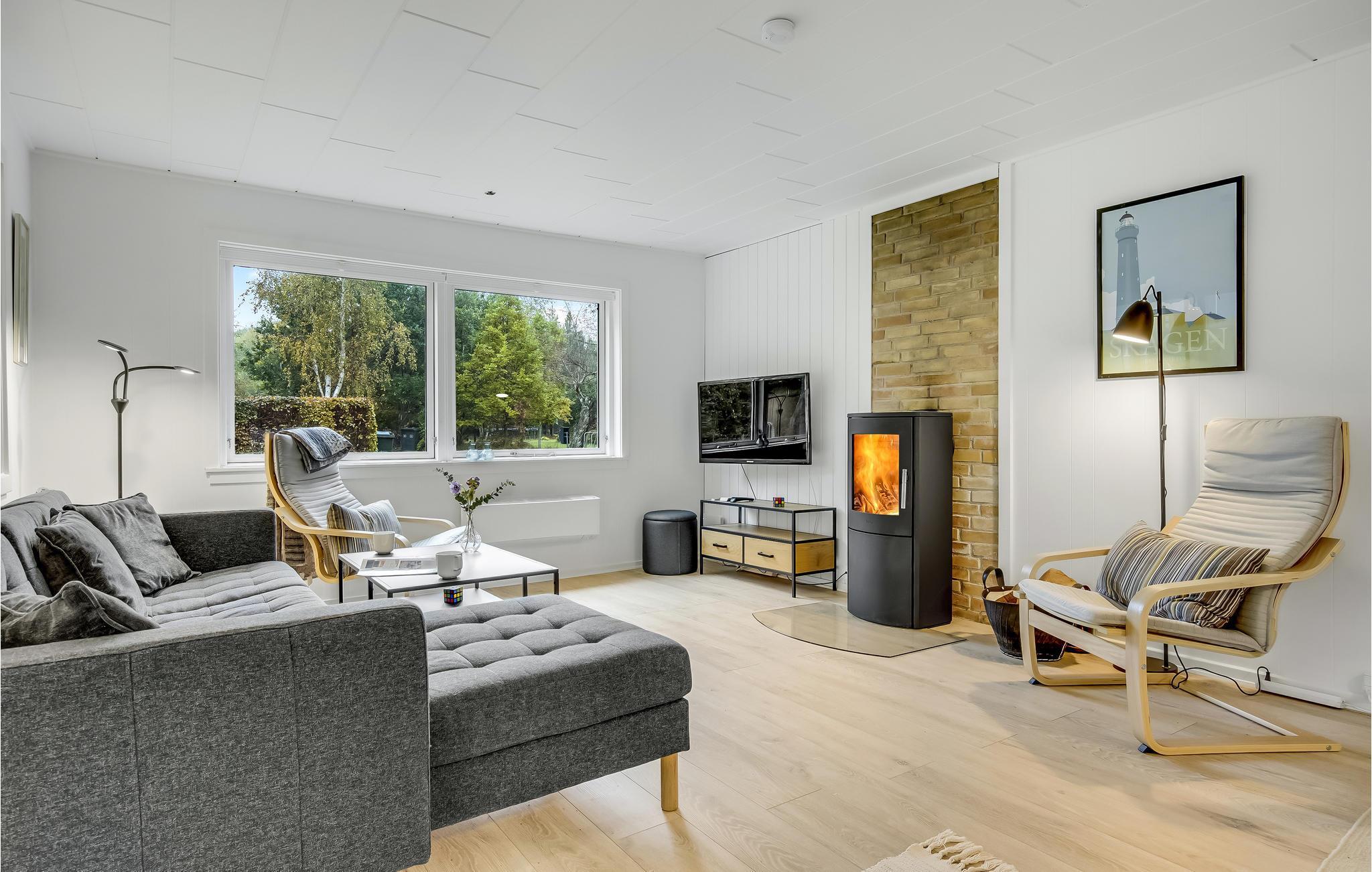 Helles, familienfreundliches Ferienhaus mit Kaminofen und großem Garten in Østerlyng, Dänemark.