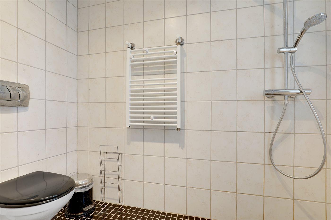 Es gibt 1 Badezimmer mit Duschnische und 2 Toiletten, davon 1 Gästetoilette. Fußbodenheizung in 1 Badezimmer.