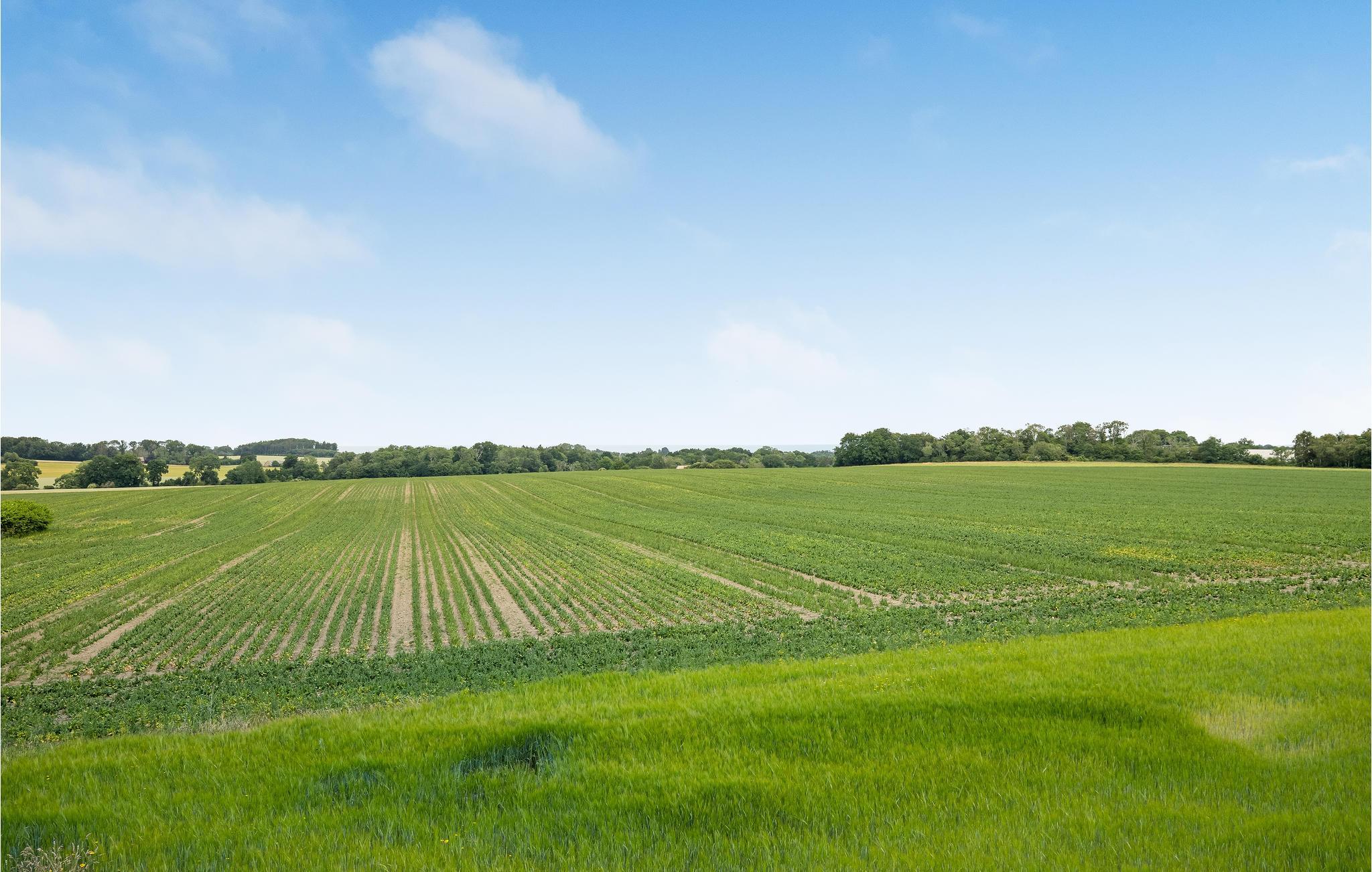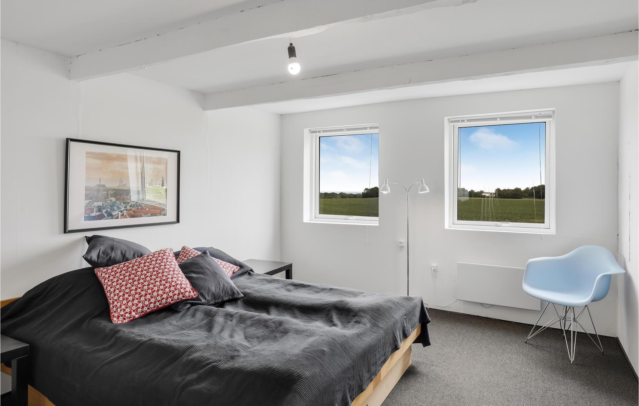 Ein einfaches, modernes Ferienhaus in der kleinen Gemeinde Østermarie mit Blick auf eine schöne Landschaft.