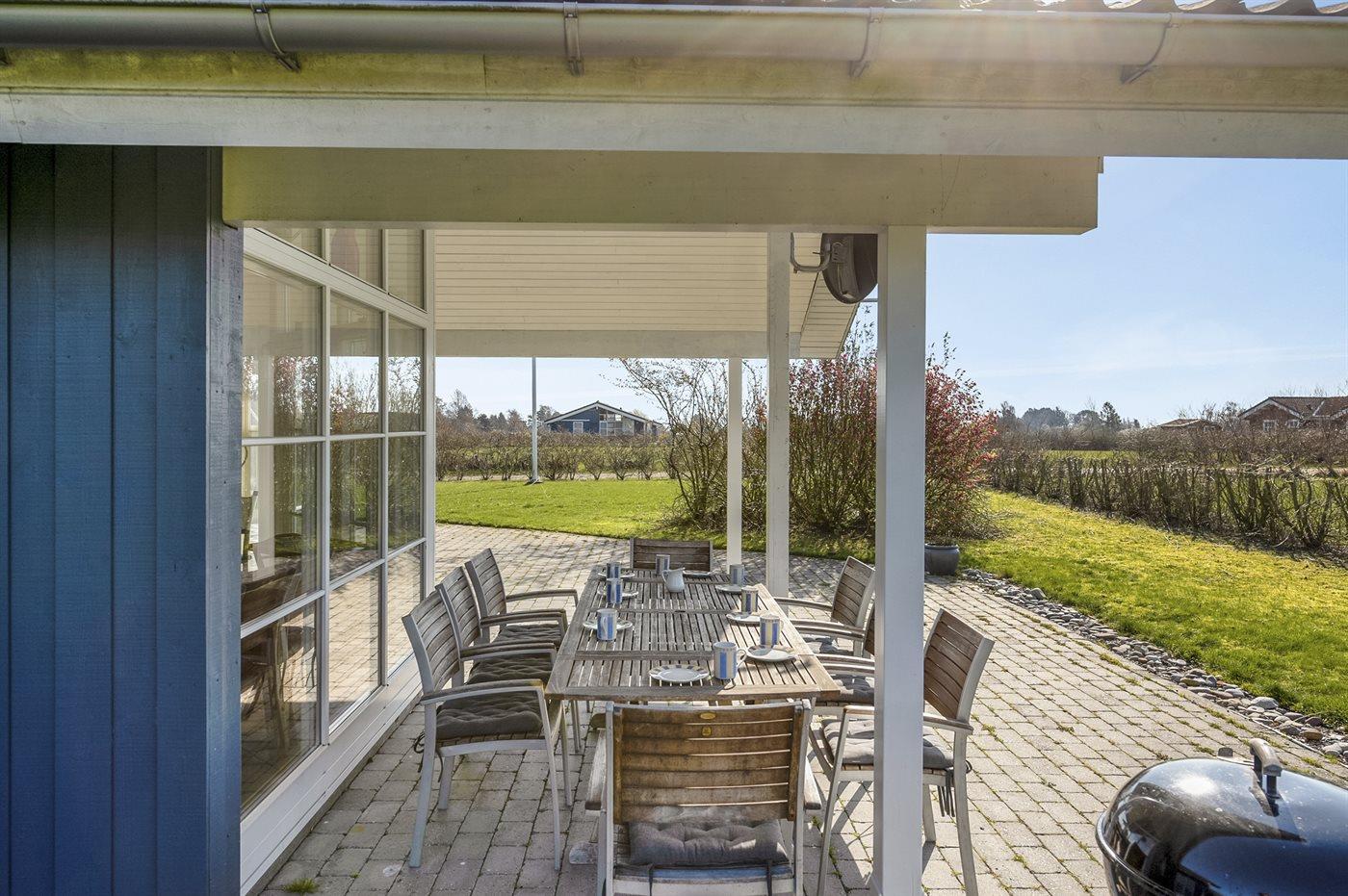 Dieses schöne und gut eingerichtete Ferienhaus liegt in dem naturschönen Gebiet Bukkemose - im Gehabstand vom Strand entfernt. Zum Haus gehören eine teilweise überdachte Terrasse und ein schöner Wintergarten.