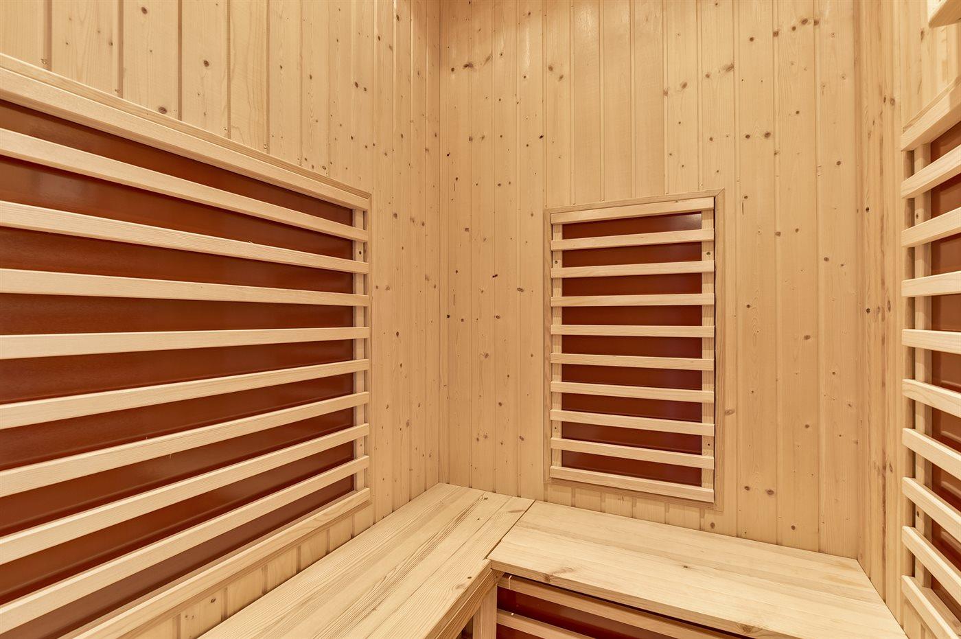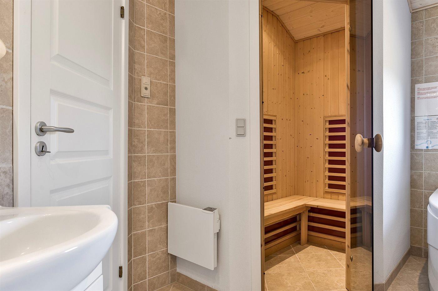 Es gibt 2 Badezimmer mit Fußbodenheizung; 1 mit Duschnische und 1 mit Badewanne. Infrarot-Gesundheitskabine.