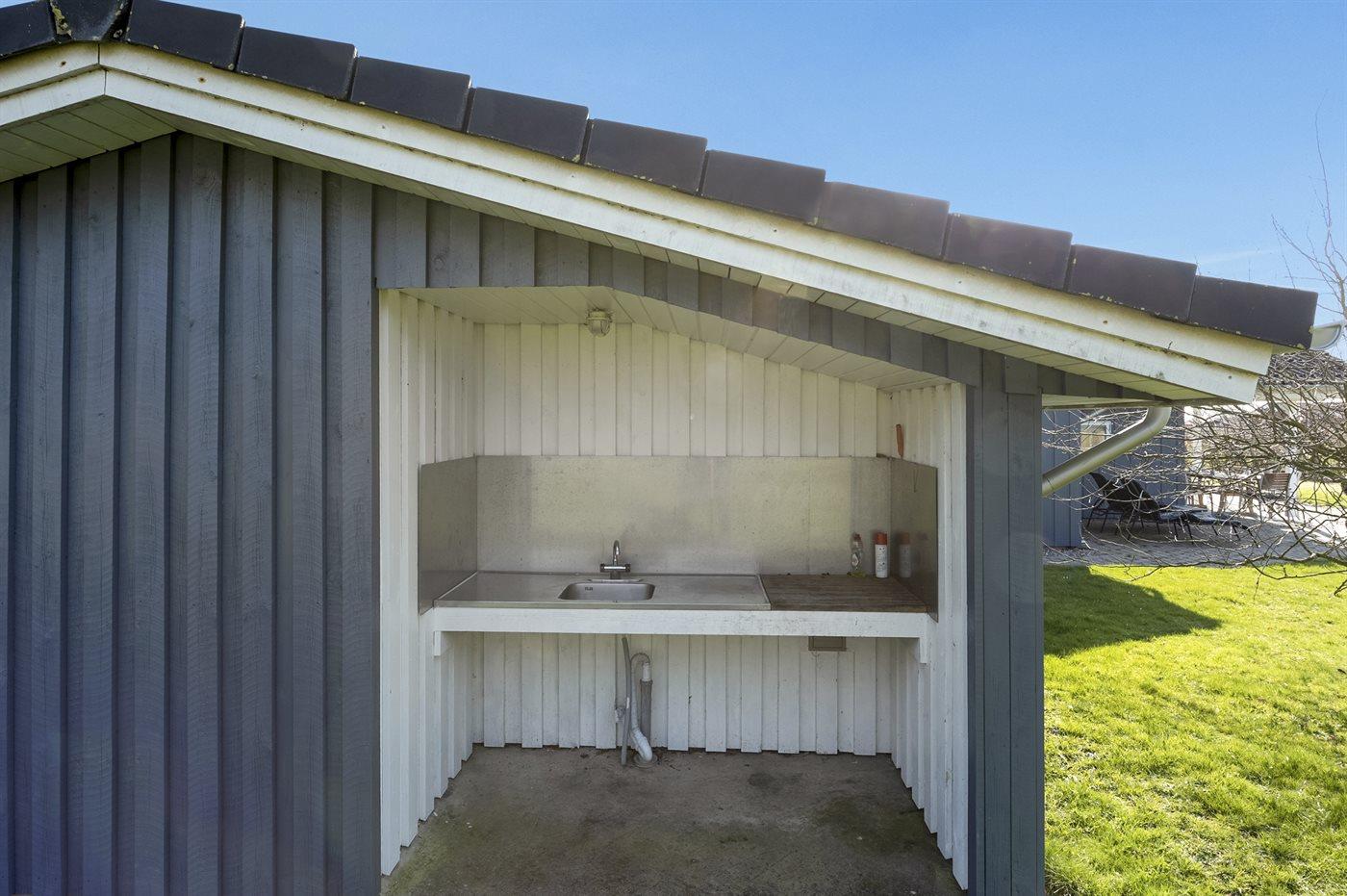 Die Ferienunterkunft liegt auf einem 1208 m² großen Gartengrundstück. Die Entfernung zum Meer beträgt 600 m. Die nächste Einkaufsmöglichkeit liegt 6000 m entfernt. In einem Abstand von 2000 m gibt es einen Golfplatz. Es steht ein 50 m² Terrassenareal zur Verfügung. Außerdem gibt es 20 m² überdachte Terrasse. Zutritt zu einem Wintergarten. Schaukel. Sandkasten. Es steht ein Grill zur Verfügung. Außentisch mit Spülbecken für Fischreinigung. Es steht ein Carport zur Verfügung. Parkplatz auf dem Grundstück.