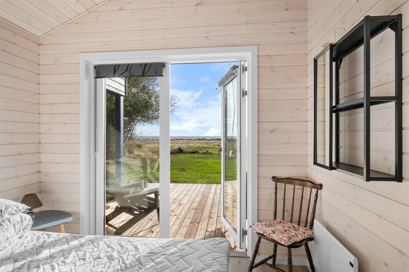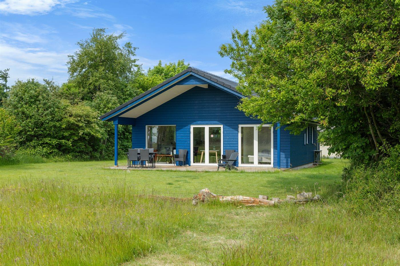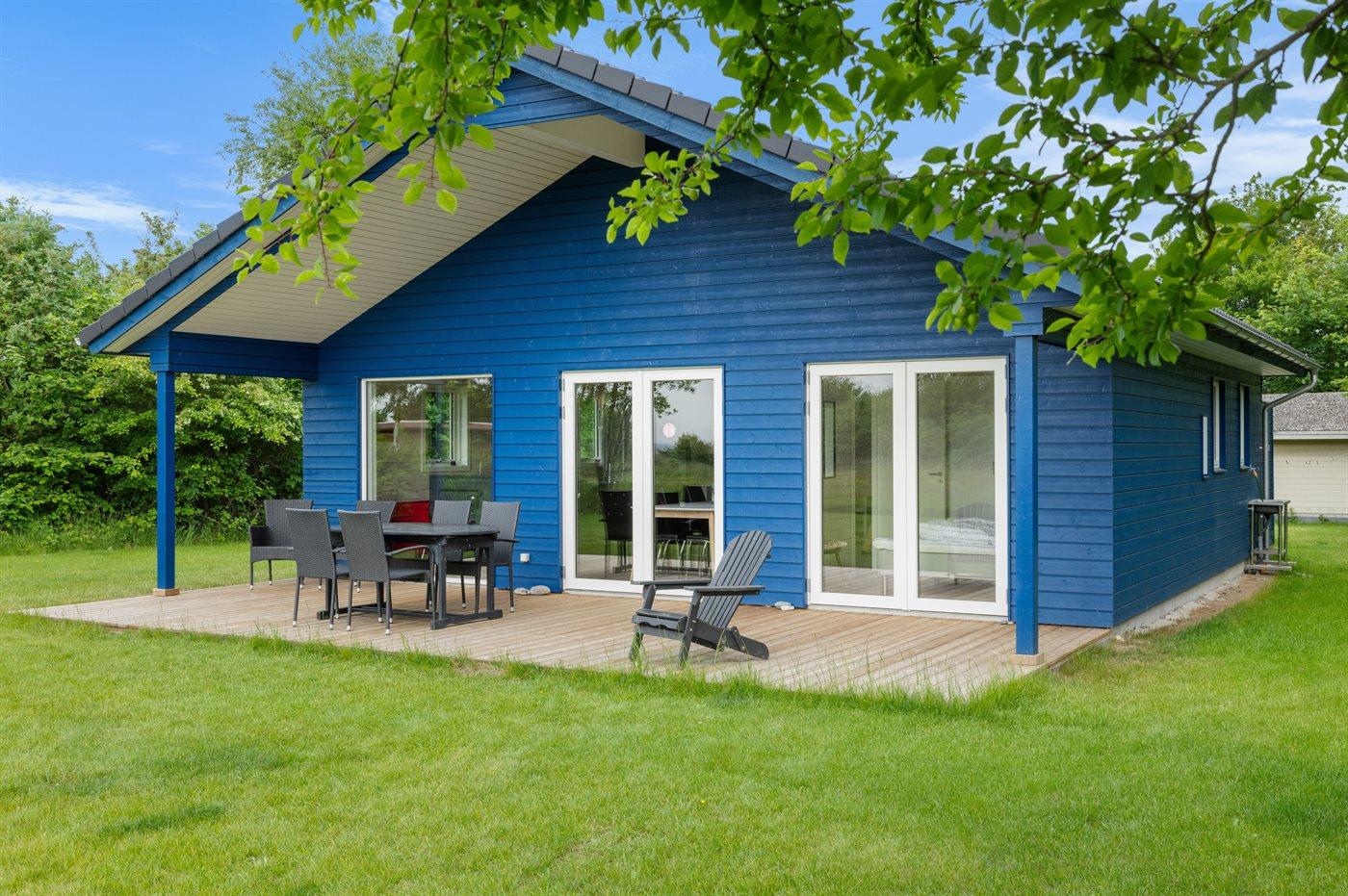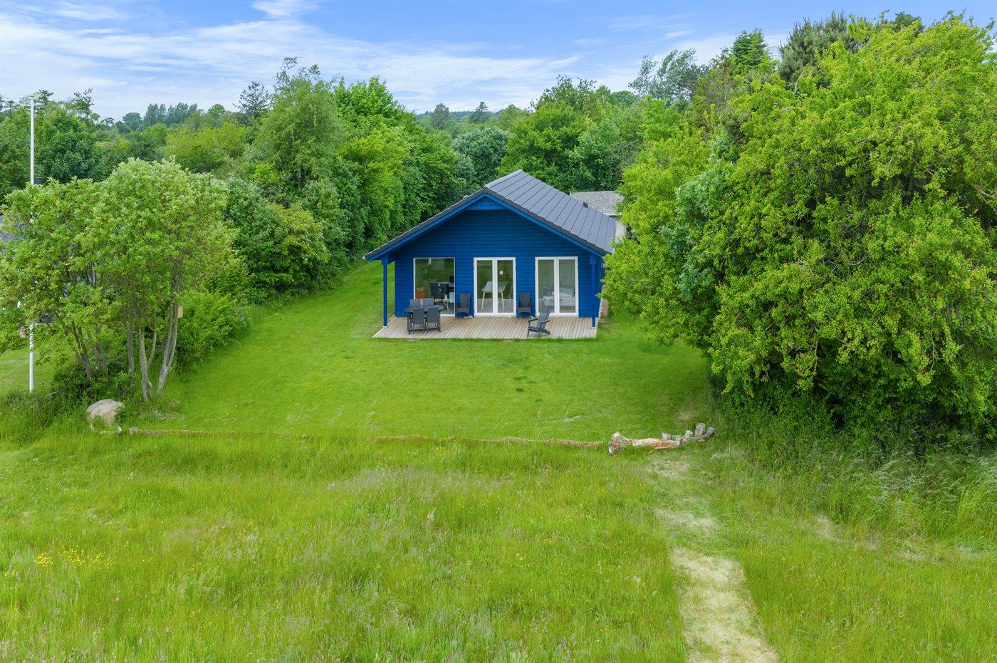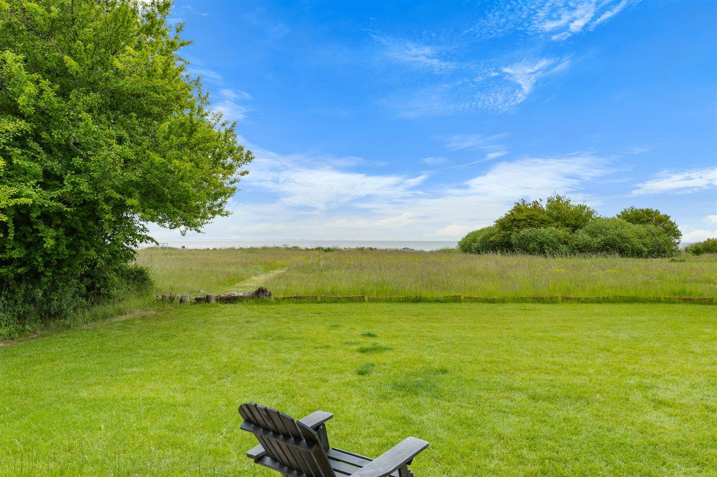 Ein besonders schönes, neu erbautes Ferienhaus (2024) mit einer tollen Lage direkt an einer Grünfläche und am Strand. Vom Haus und der Terrasse aus hat man Ausblick über den Langelandsbelt.
