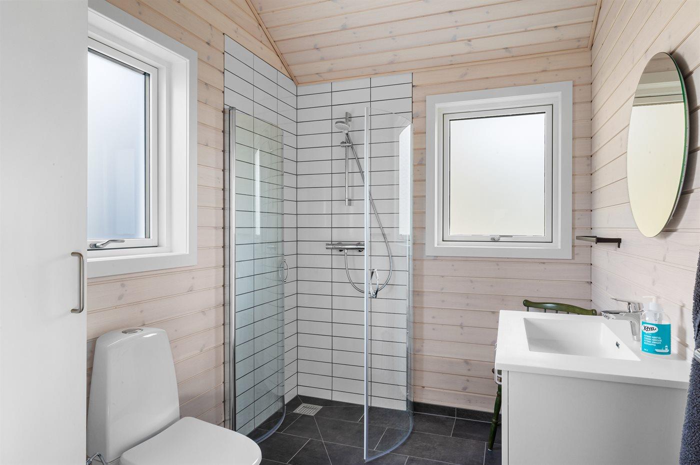 Es gibt 1 Badezimmer mit Duschnische und 2 Toiletten, davon 1 Gästetoilette. Fußbodenheizung in 1 Badezimmer. Fußbodenheizung in der Gästetoilette.