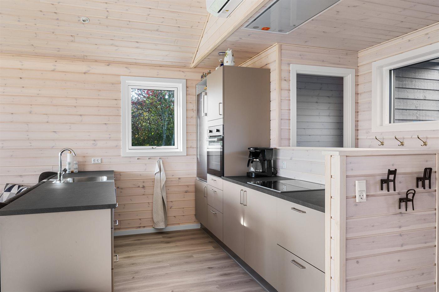 Die Küche ist mit Kühlschrank ausgestattet. Außerdem gibt es 4 Induktions-Kochzonen, Umluftofen, Mikrowelle sowie Geschirrspüler.
