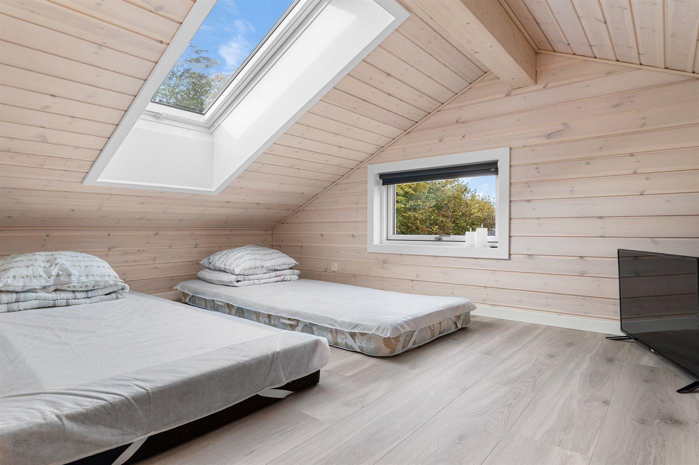 Das Haus liegt ungestört am Ende einer Sackgasse, und vom Garten aus hat man direkten Zugang zu einer Grünfläche und einem Gemeinschaftsbereich mit Spielplatz sowie Tische und Bänke am Strand. Im Sommerhalbjahr gibt es am Strand sowohl einen Badesteg als auch einen Schwimmsteg für Boote. Außerdem gibt es am Strand eine Rampe, von der aus man Boote ins Wasser lassen kann.