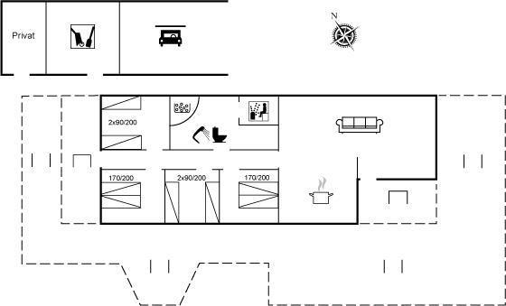 Das Ferienhaus eignet sich für 8 Personen sowie 1 Kleinkind bis zu 3 Jahren. Die Ferienunterkunft hat eine Wohnfläche von 102 m² und wurde 1972 gebaut. 1994 wurde die Ferienunterkunft renoviert. 2021 wurde die Ferienunterkunft teilweise renoviert. Es ist erlaubt 1 Haustier mitzubringen. In der Ferienunterkunft ist eine energiesparender Luft zu Luft Wärmepumpe installiert. Die Ferienunterkunft ist mit Waschmaschine ausgestattet. Wäschetrockner. Tiefkühlmöglichkeit mit 100 Liter Nutzinhalt. Es gibt außerdem einen Kaminofen. Für die jüngsten Feriengäste ist 1 Kinderhochstuhl vorhanden.