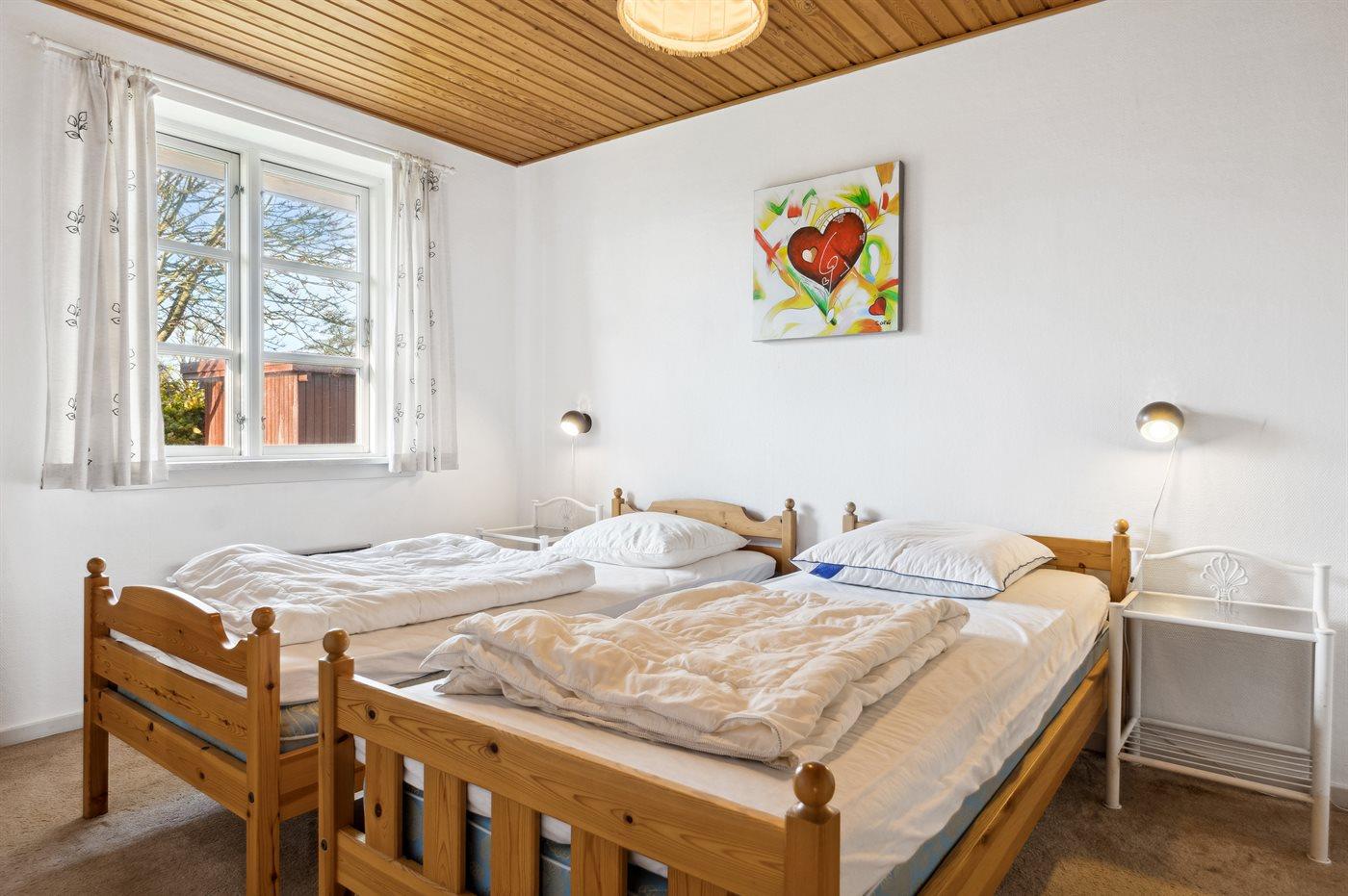 Die Schlafplätze verteilen sich auf 2 Schlafräume. 4 Schlafplätze in Einzelbetten. Ferner steht ein Kinderbett zur Verfügung.