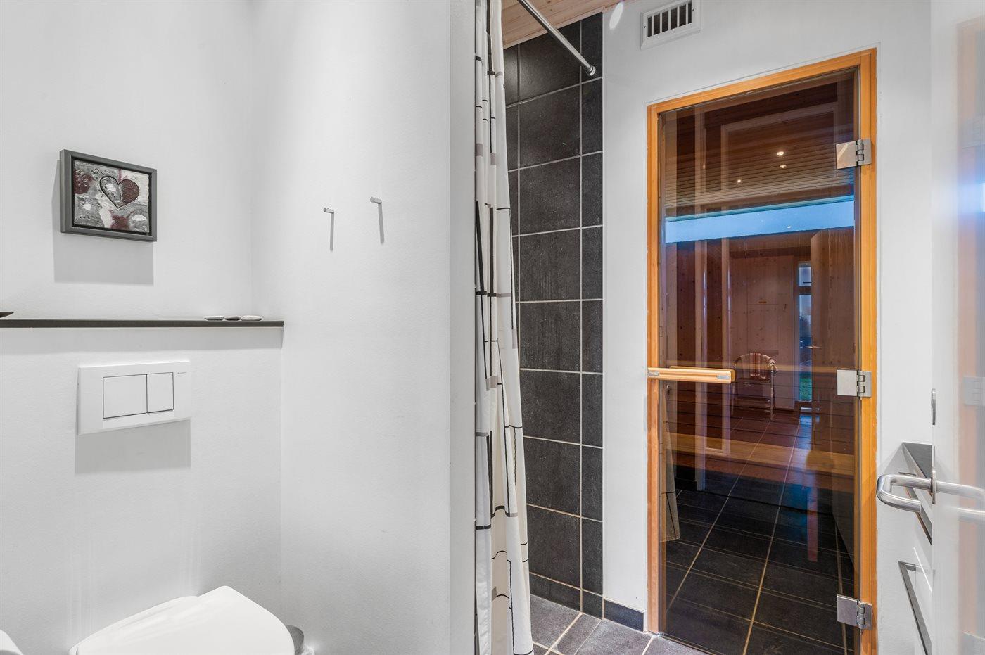 Es gibt 2 Badezimmer mit Duschnische und 2 Toiletten. Fußbodenheizung in 2 Badezimmern. Es steht eine Sauna zur Verfügung in der Sie sich so richtig entspannen können.