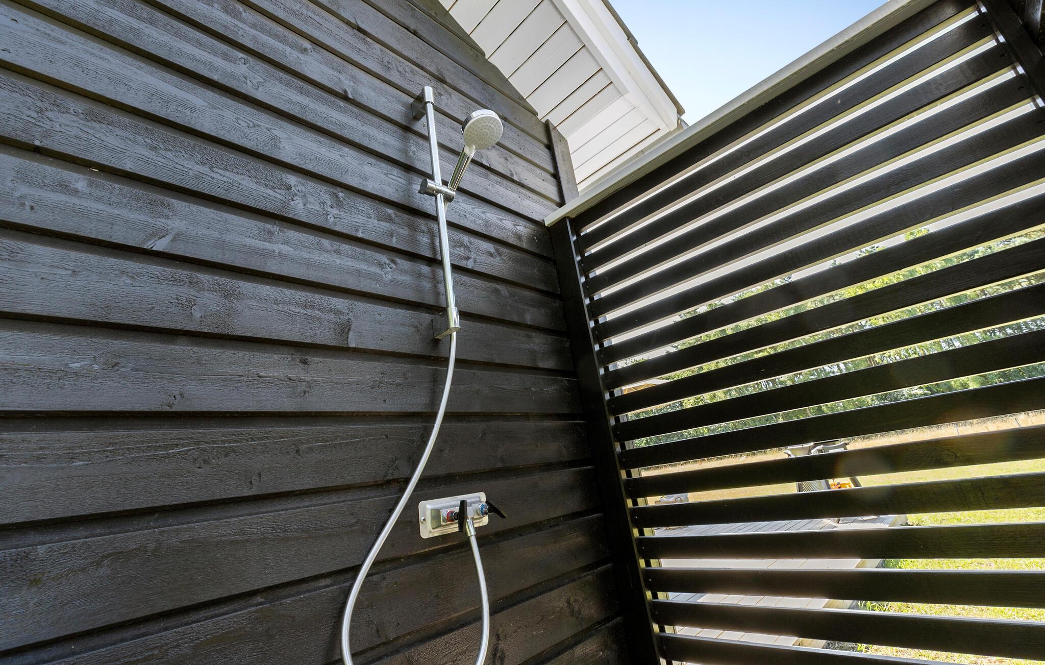 Kommen Sie hier zur Ruhe und treten hinaus auf die große Holzterrasse. Machen Sie es sich auf den Sonnenliegen und Gartenmöbeln bequem, erfrischen sich unter der Außendusche und schauen Ihren Kindern beim Spielen im Garten zu.