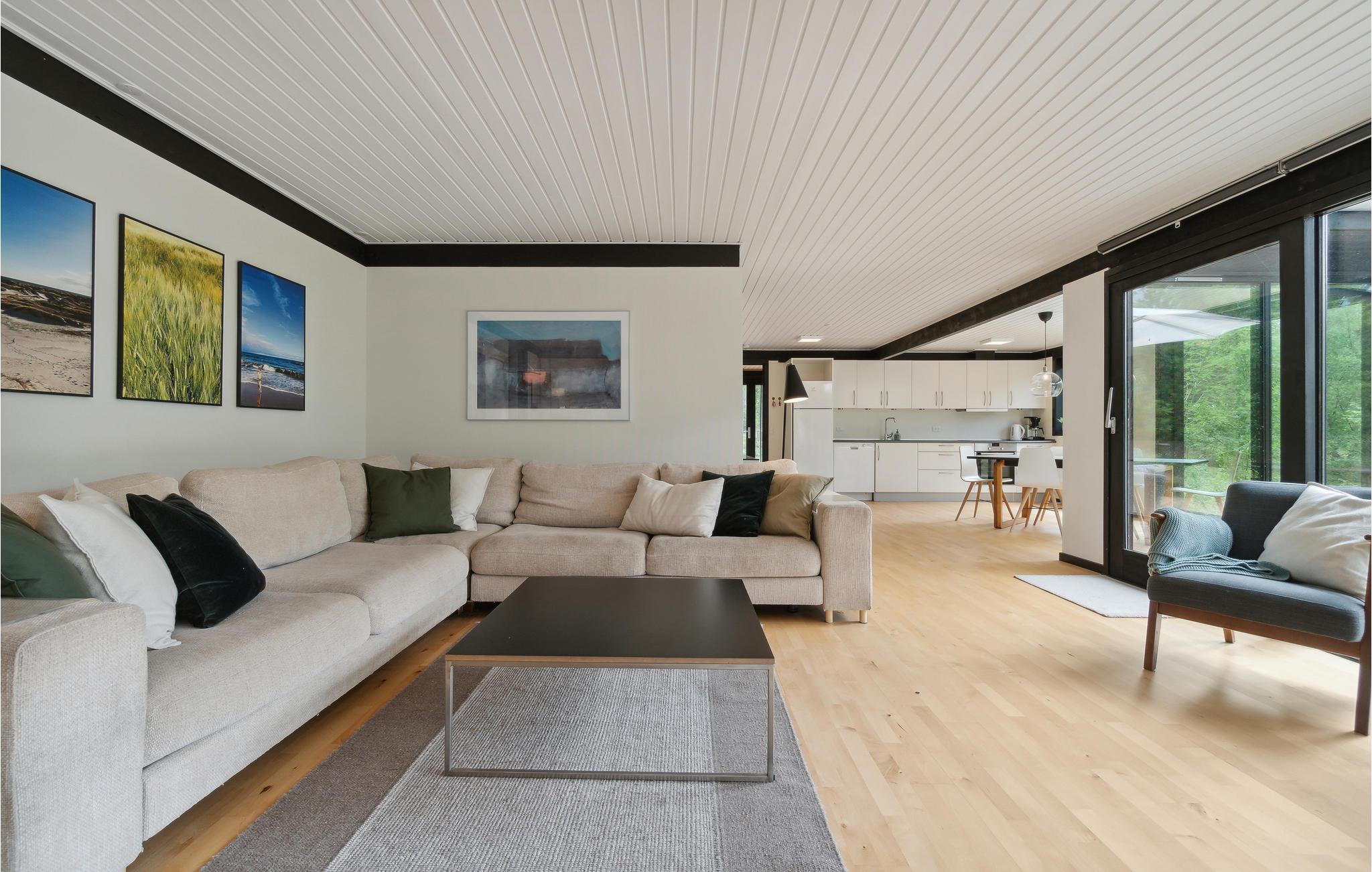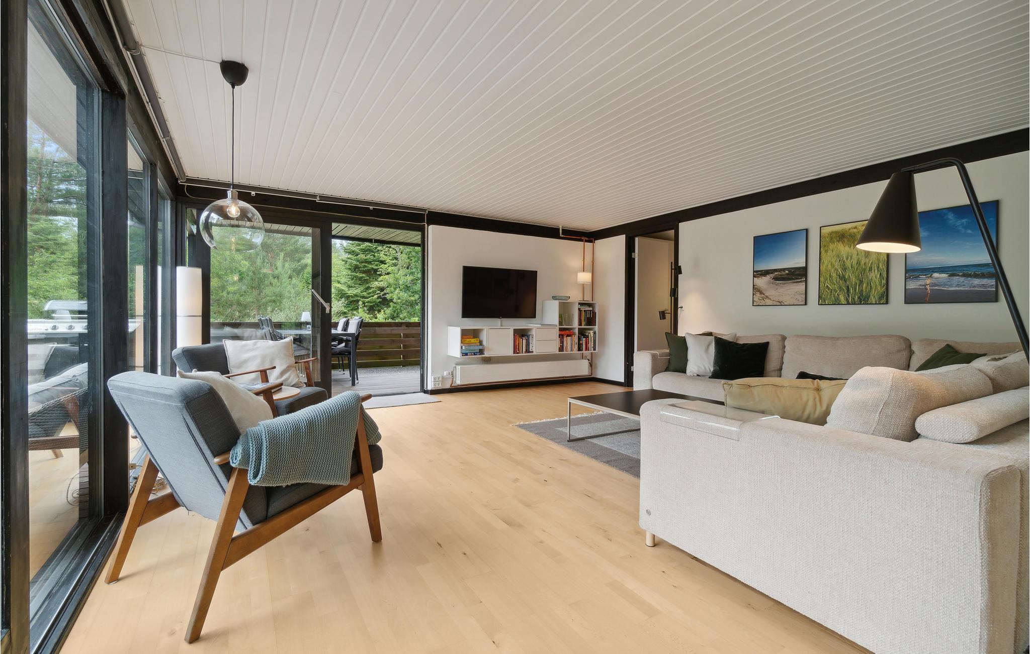 In einer kinderfreundlichen Gegend mit schöner Natur erwartet Sie dieses Ferienhaus aus Holz. Es bietet ein modernes Bad mit Fußbodenheizung und schöner, offener Küche. Das Haus erscheint insgesamt hell und freundlich mit komfortablen Möbeln und einem schönen Blick ins Freie durch die großen, nach Süden gerichteten Fenster im Wohnzimmer.