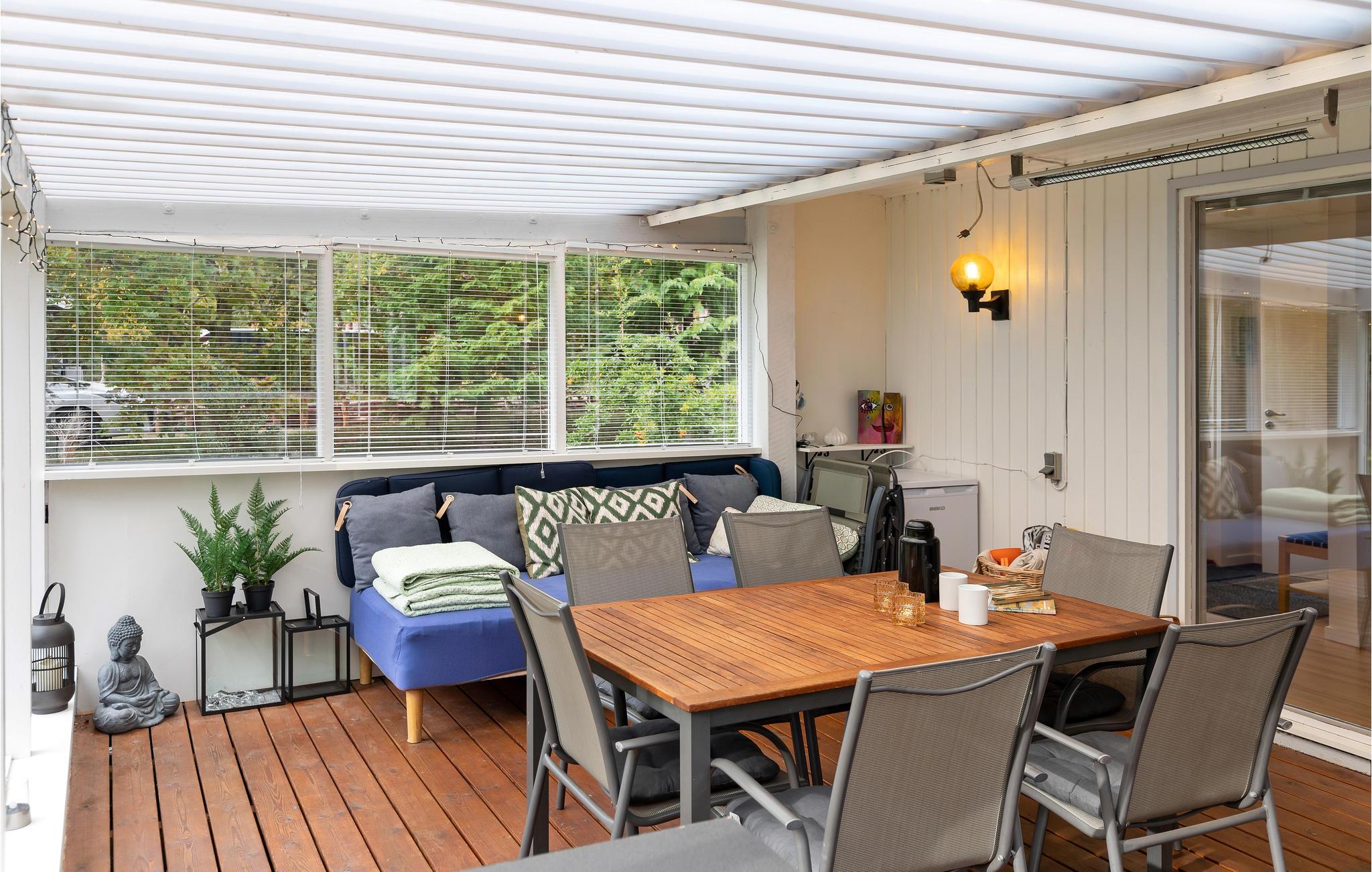 Modernisiertes und hell dekoriertes Holzhaus mit vielen schönen Details, 2 Badezimmern und einer schönen großen Terrasse.