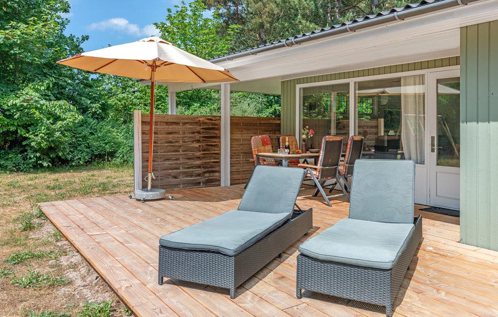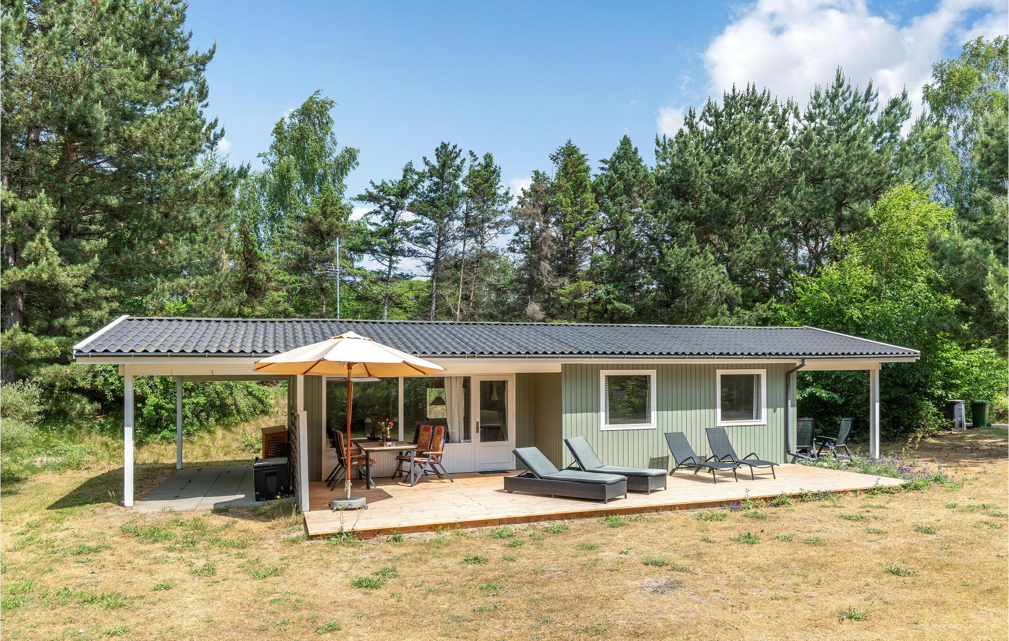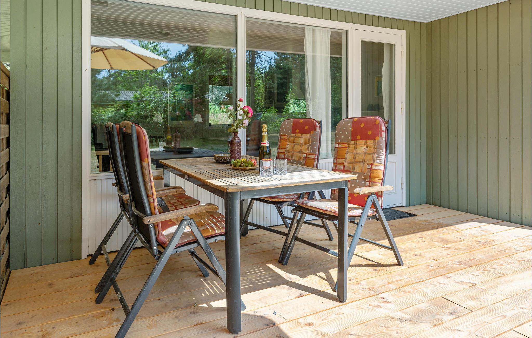 Gemütliches Ferienhaus in Østre Sømark mit großer Holzterrasse, Garten und Nähe zum Meer für entspannte Urlaubstage.