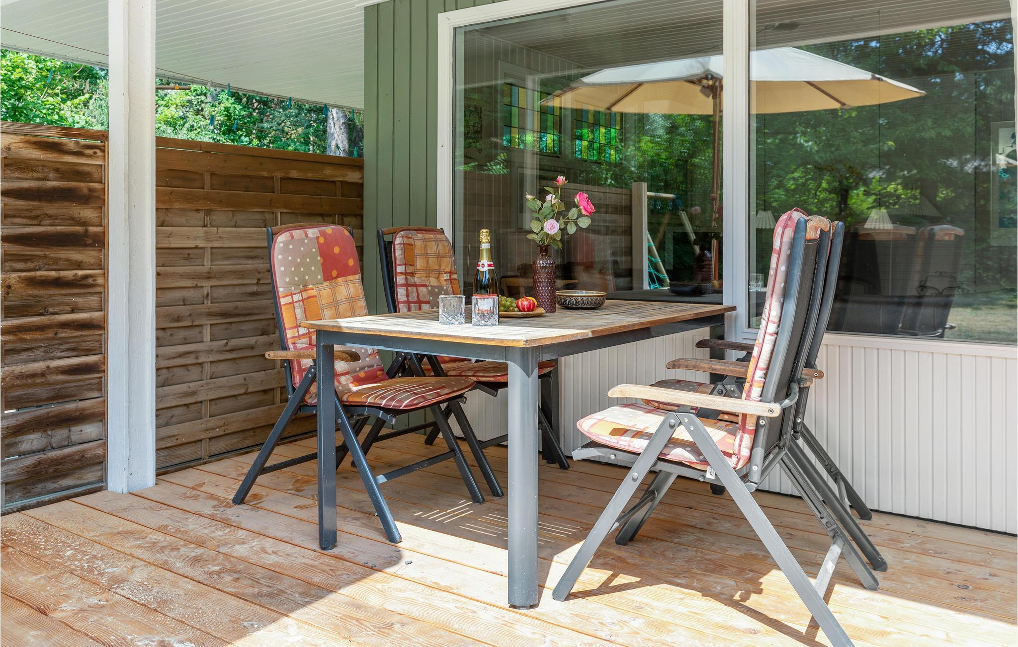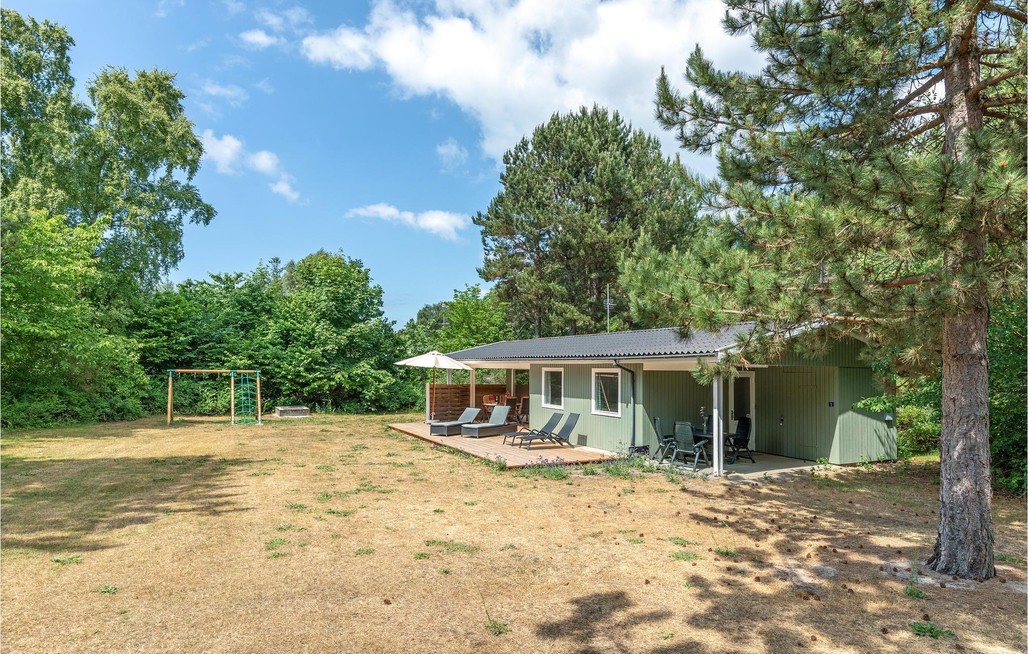 Gemütliches Ferienhaus in Østre Sømark mit großer Holzterrasse, Garten und Nähe zum Strand für entspannte Urlaubstage.