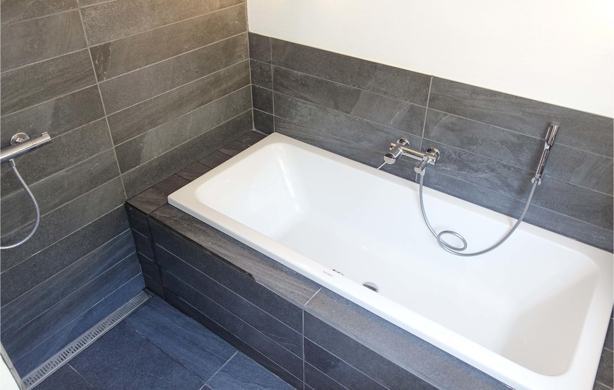 Badezimmer (nr. 1) - WC. Warmes und kaltes Wasser. Dusche und Badewanne