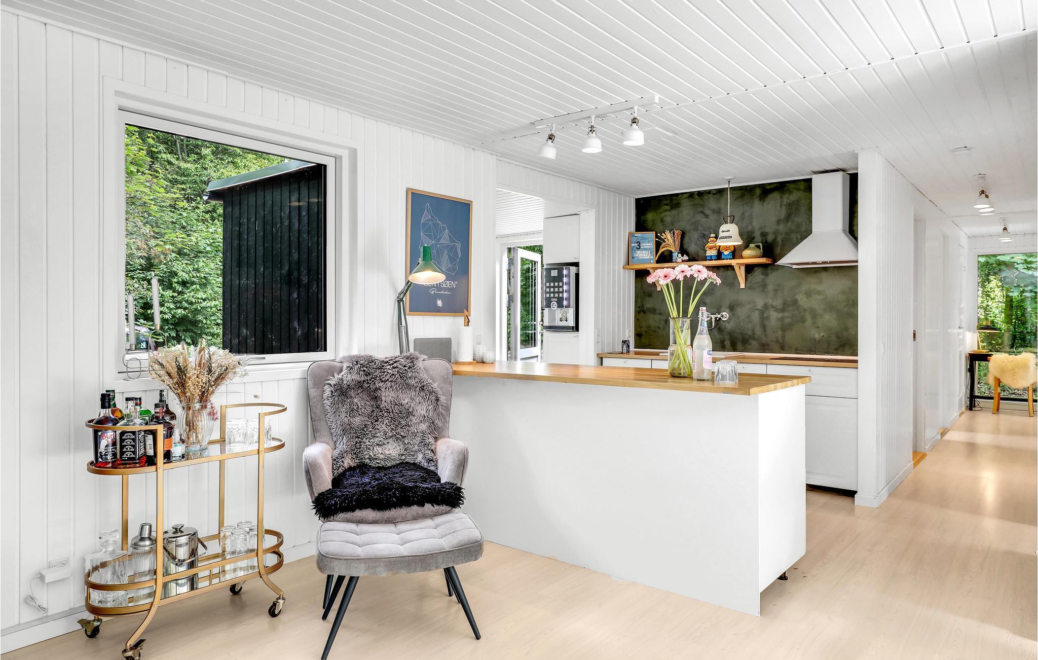 Im Mittelpunkt des häuslichen Lebens liegt das große Wohnzimmer mit Essbereich, TV, Holzofen und Wärmepumpe (diese kann auch kühlen). In der offenen Küche mit Weinkühlschrank macht das Kochen Freude. Das Haus verfügt über vier heimelige Schlafzimmer, die mit Kleiderschränken und Kleiderstangen ausgestattet sind. Das Badezimmer verfügt über eine komfortable Fußbodenheizung. Darüber hinaus befinden sich ein Arbeitszimmer, eine Gästetoilette mit Fußbodenheizung und eine Waschmaschine im Haus. Eines der vielen Highlights des Hauses ist das Spielzimmer, in dem Sie sich am Billardtisch messen können. Im Nebengebäude befindet sich eine Sauna, Trockner, Hochstuhl, Kinderbett inkl. Bettdecke, Kissen und Bezug für Junior-Bettdecke, Regenschirme, Picknickkörbe, Kühltasche und Decken sowie viele weitere Utensilien für einen gelungenen Aufenthalt.