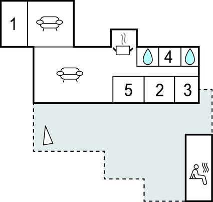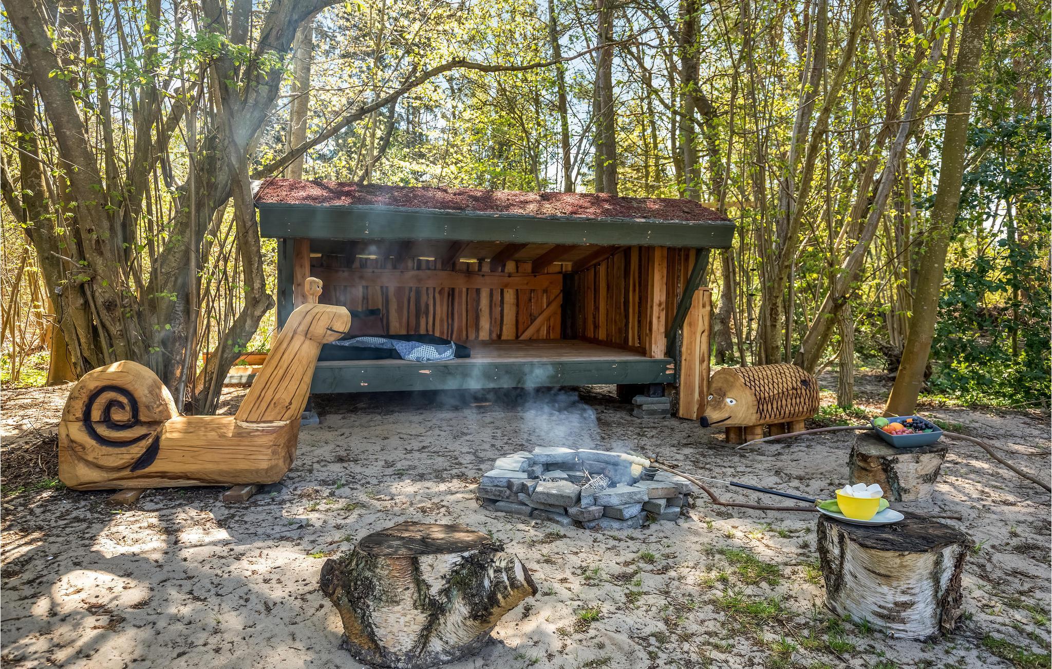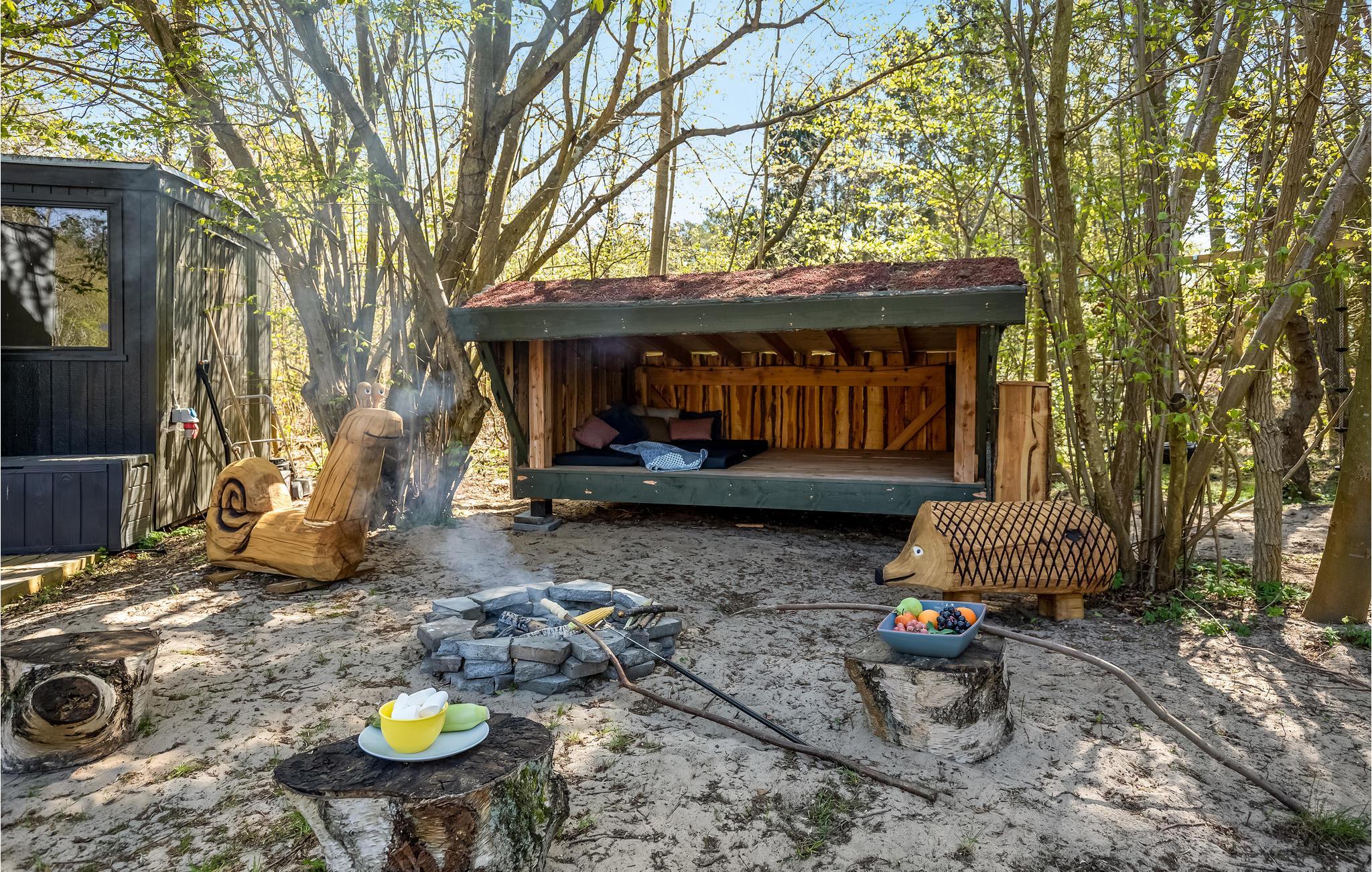 Das Haus ist von Bäumen umringt. Die Terrasse ist nach Süden ausgerichtet, sichtgeschützt und mit Loungemöbeln und Sonnenliegen ausgestattet. Sie können im Schatten des Baumes sitzen und die frische Luft beim Lesen eines guten Buches genießen. Außerdem gibt es verschiedene Spiele im Freien, wie Basketball, Gartenschach, Schaukeln, Tischtennis, Tischfussball und Darts - es wartet eine Fülle von Unterhaltungsmöglichkeiten. Wenn es dunkel wird, können Sie all die gemütlichen Lichterquellen genießen, die rundherum platziert sind. Hier macht sich eine fast südliche Atmosphäre breit, zwischen den Bäumen können Sie das Rauschen des Meeres hören. Auf der Terrasse finden Sie die schöne und gut ausgestattete Außenküche, die sowohl über Wasser als auch Abfluss verfügt. Hier stehen zudem ein Holzkohle- und ein Gasgrill sowie ein Pizzaofen zur Verfügung, damit Sie im Freien Mahlzeiten zubereiten können. Entspannen Sie sich in den Hängematten und auf der durchgehend überdachten, gemütlichen Terrasse. Am Abend können Sie die Terrassenheizung anschalten oder am Lagerfeuerplatz des Hauses Stockbrot oder Marshmallows backen. Im Garten gibt es einen Shelter. Das Haus verfügt über einen Outdoor-Whirlpool (von April bis Oktober) für herrliche Momente des Urlaubswellness und eine Außendusche mit heißem Wasser, um den Sand nach einem Strandausflug abzuspülen.