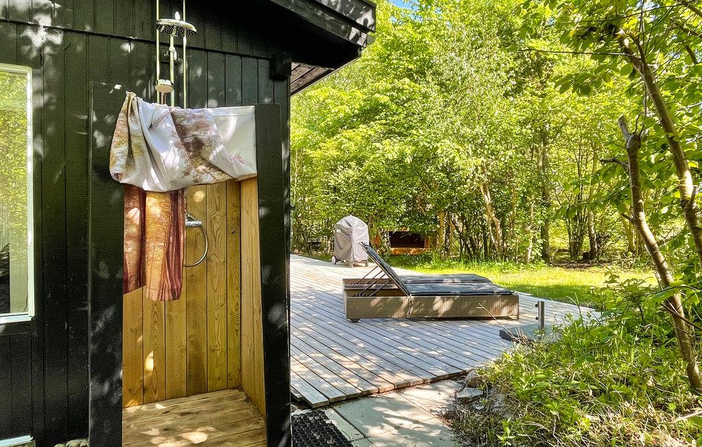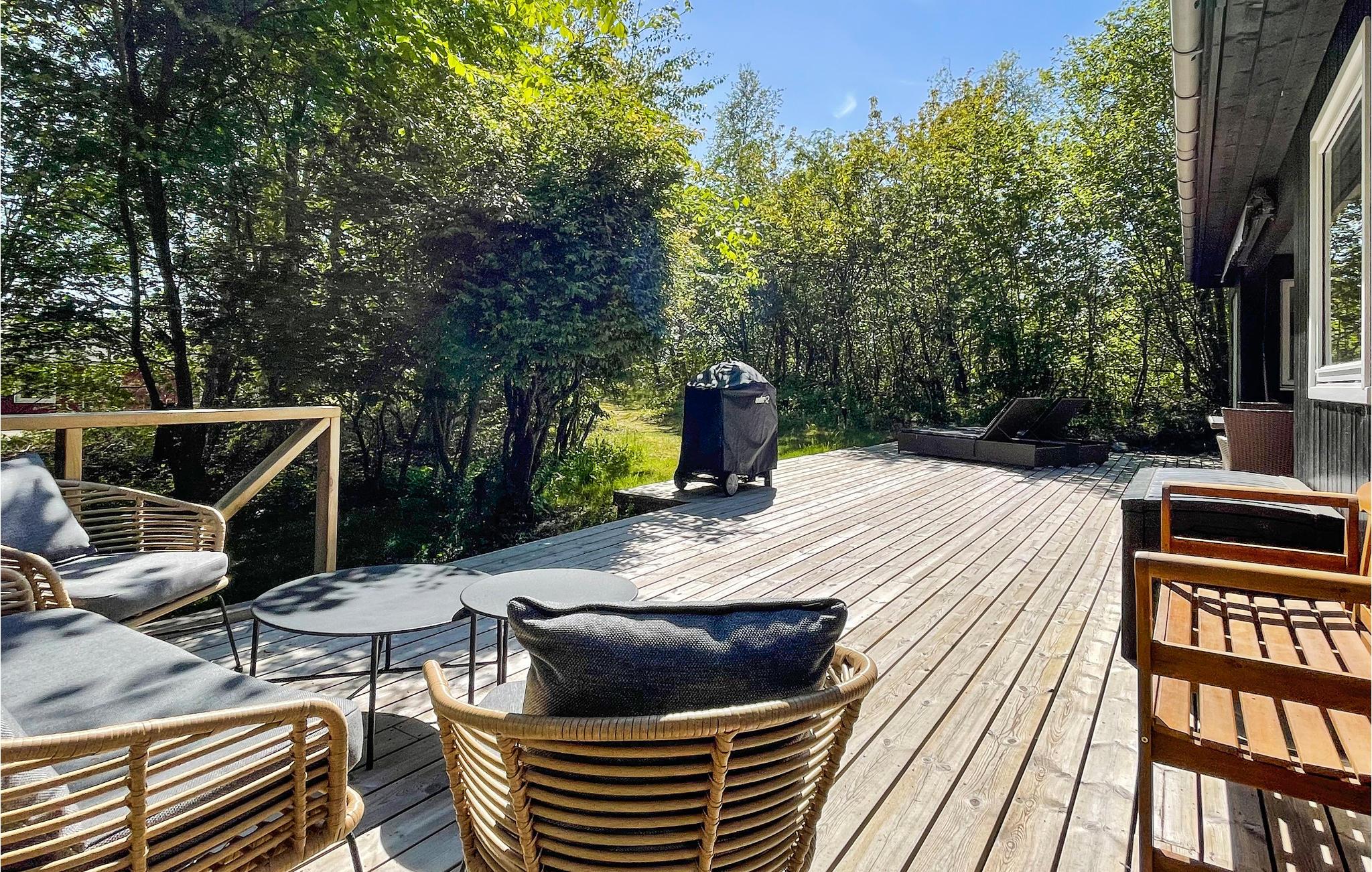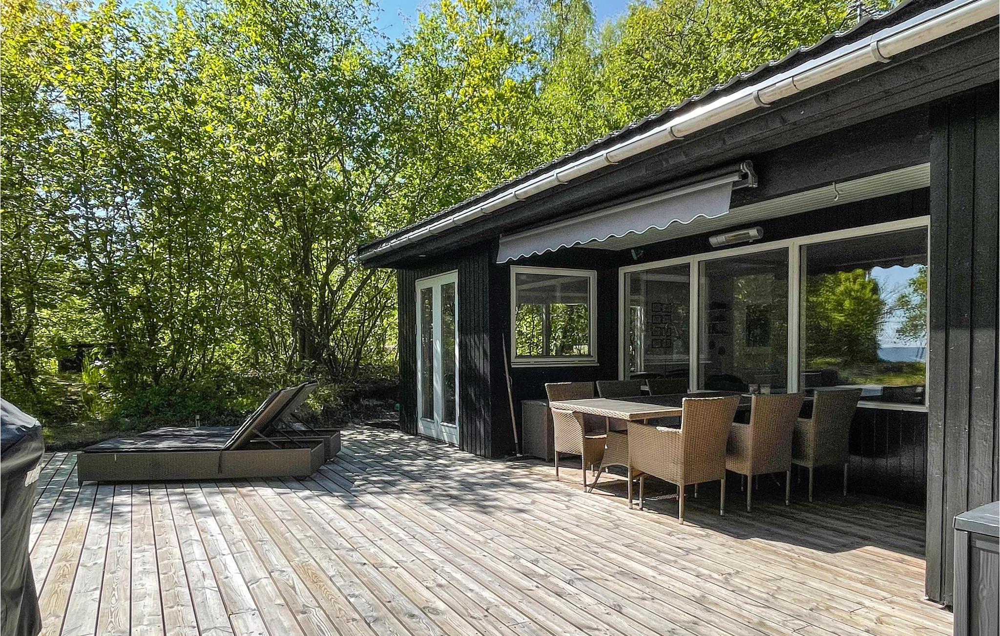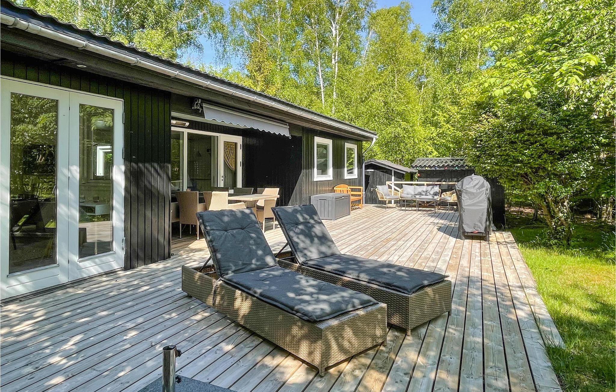 Ihre südlich ausgerichtete, windgeschützte Terrasse ist teilüberdacht und bietet sich für Mahlzeiten im Freien und lange Sonnenstunden auf den bequemen Liegen an. Genießen Sie hier die friedliche Atmosphäre zwischen schattigen Bäumen und lassen Sie Ihre Kinder spielerisch die Natur erkunden und sich an urigen Spielmöglichkeiten erfreuen. Spazieren Sie barfuß zum Strand und entfachen Sie den Grill für stimmungsvolle Abende unter freiem Himmel.