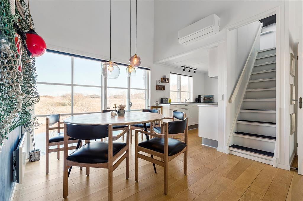 Tritt ein in eine helle und einladende Ferienwohnung, in der ihr euch schnell zuhause fühlen werdet. Das Wohnzimmer ist gemütlich eingerichtet und lädt zu entspannenden Stunden mit einem guten Buch oder einem Spiel aus der "Sammlung" des Hauses ein. Das Wohnzimmer bildet eine offene Einheit mit einer gemütlichen Essecke und der gut ausgestatteten Küche. Die Wohnung verfügt über zwei Schlafzimmer mit jeweils einem Doppelbett und ausreichend Stauraum. Auf der oberen Etage befindet sich ein schöner Alkoven mit Schlafsofa und Fernseher, den die Kinder der Familie lieben werden. Das geräumige Badezimmer ist mit einer Duschkabine ausgestattet.