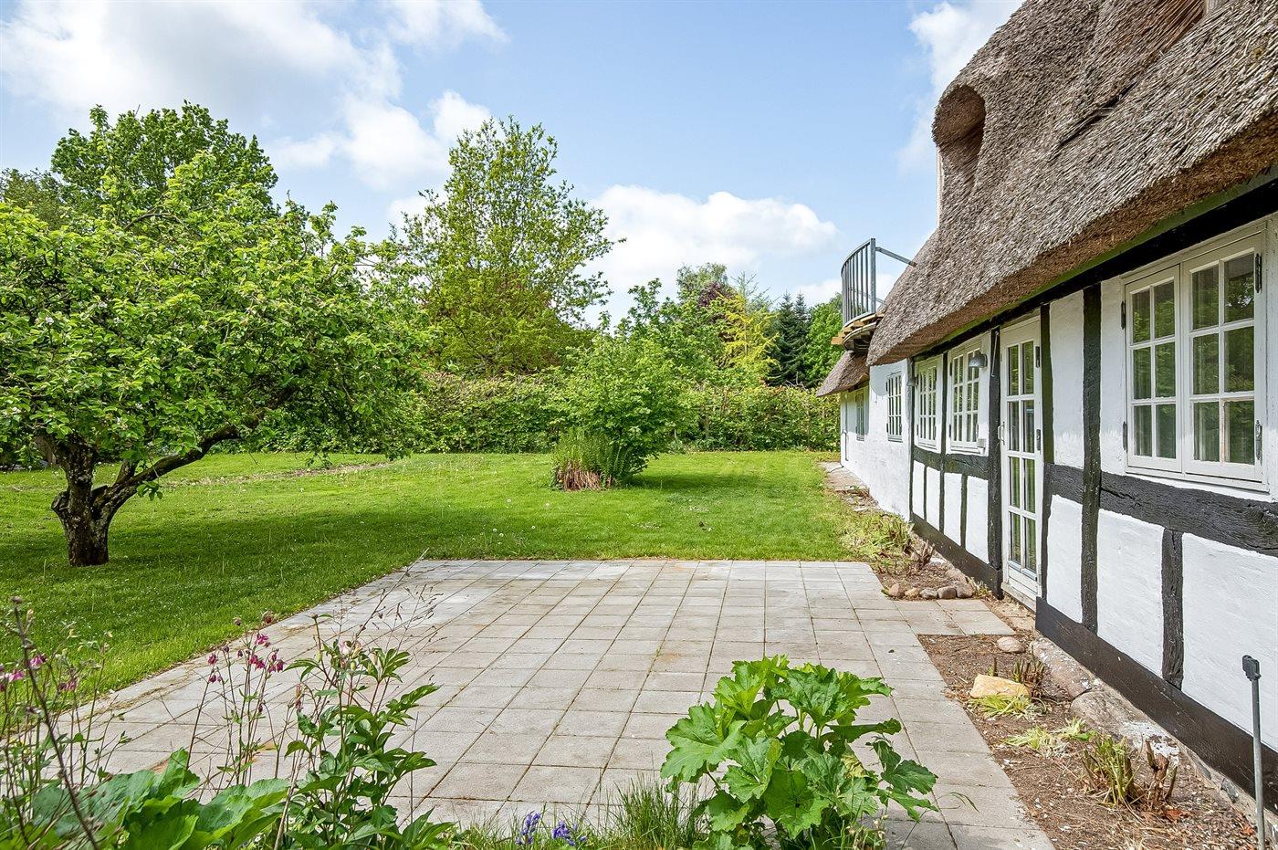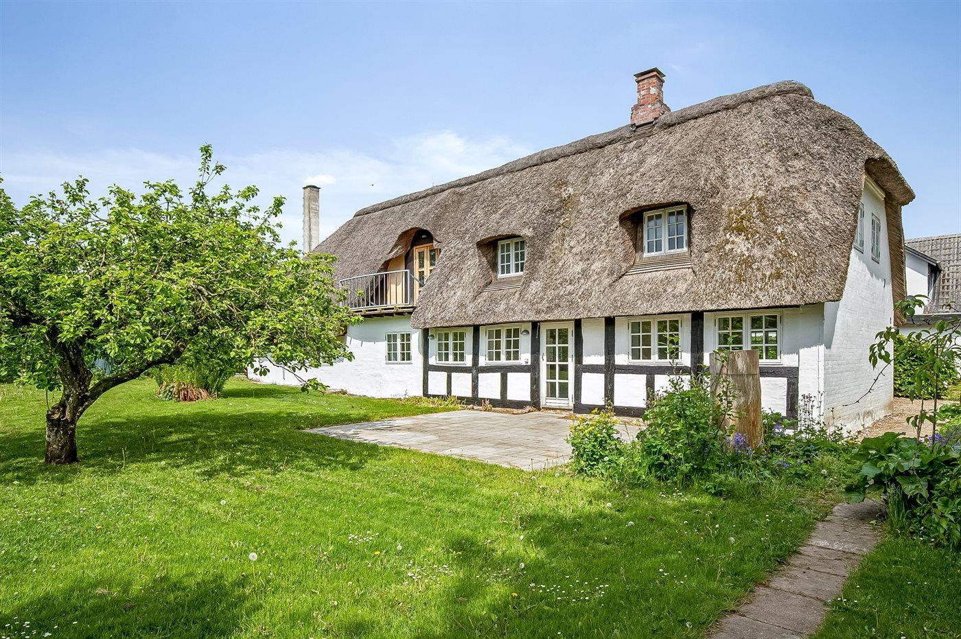 Charmantes Reetdach-Ferienhaus von 1777 mit großem Garten nahe Haderslev Fjord und Ørby Strand.