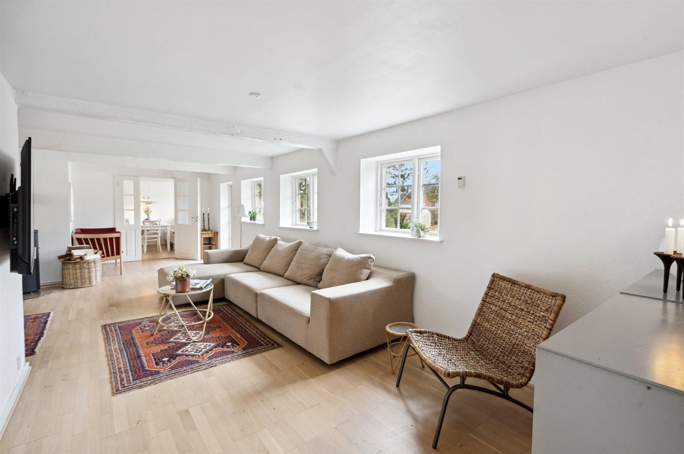 Ein charmantes Ferienhaus mit Reetdach im gemütlichen Dorf Vonsbæk - am Rande von Haderslev gelegen. Das Haus, das ursprünglich aus dem Jahr 1777 stammt, wurde unter Rücksichtsnahme vom ehemaligen Stil und der Geschichte des Hauses vollständig renoviert. Das geräumige Haus hat eine Wohnfläche von insgesamt 174 m2, die sich auf 2 Etagen verteilt, und bietet Platz für bis zu acht Personen.
