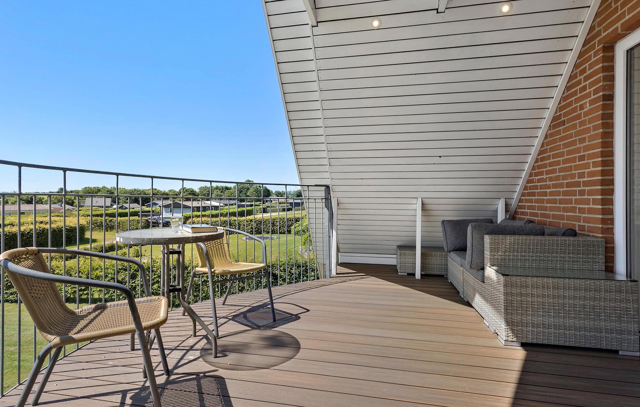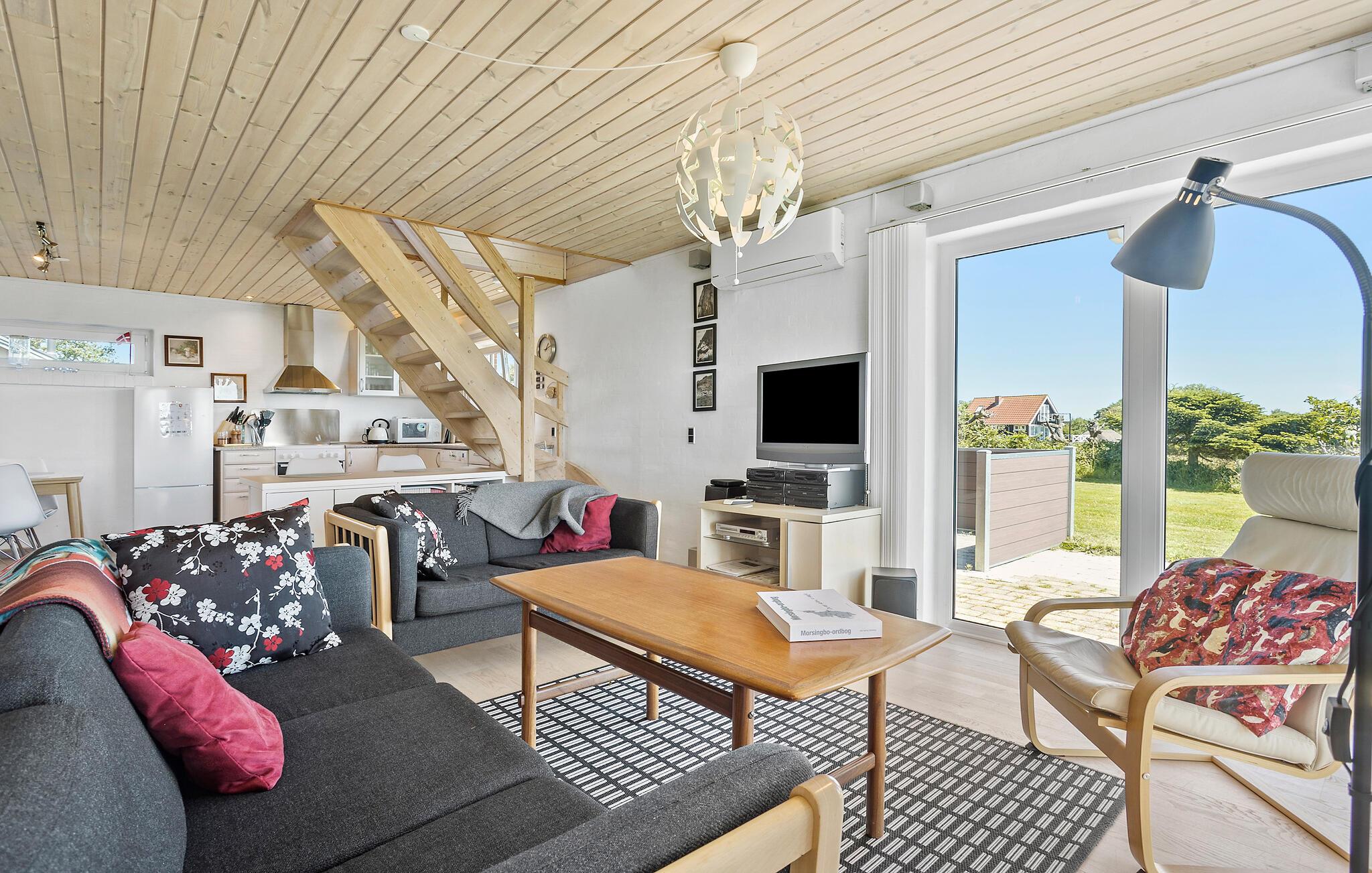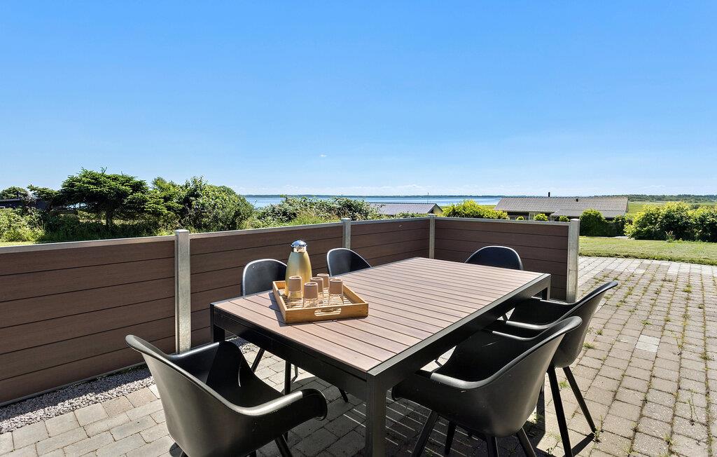 Gemütliches Ferienhaus auf Mors mit Panoramablick, Terrasse, Kamin und moderner Ausstattung für entspannte Urlaubstage.