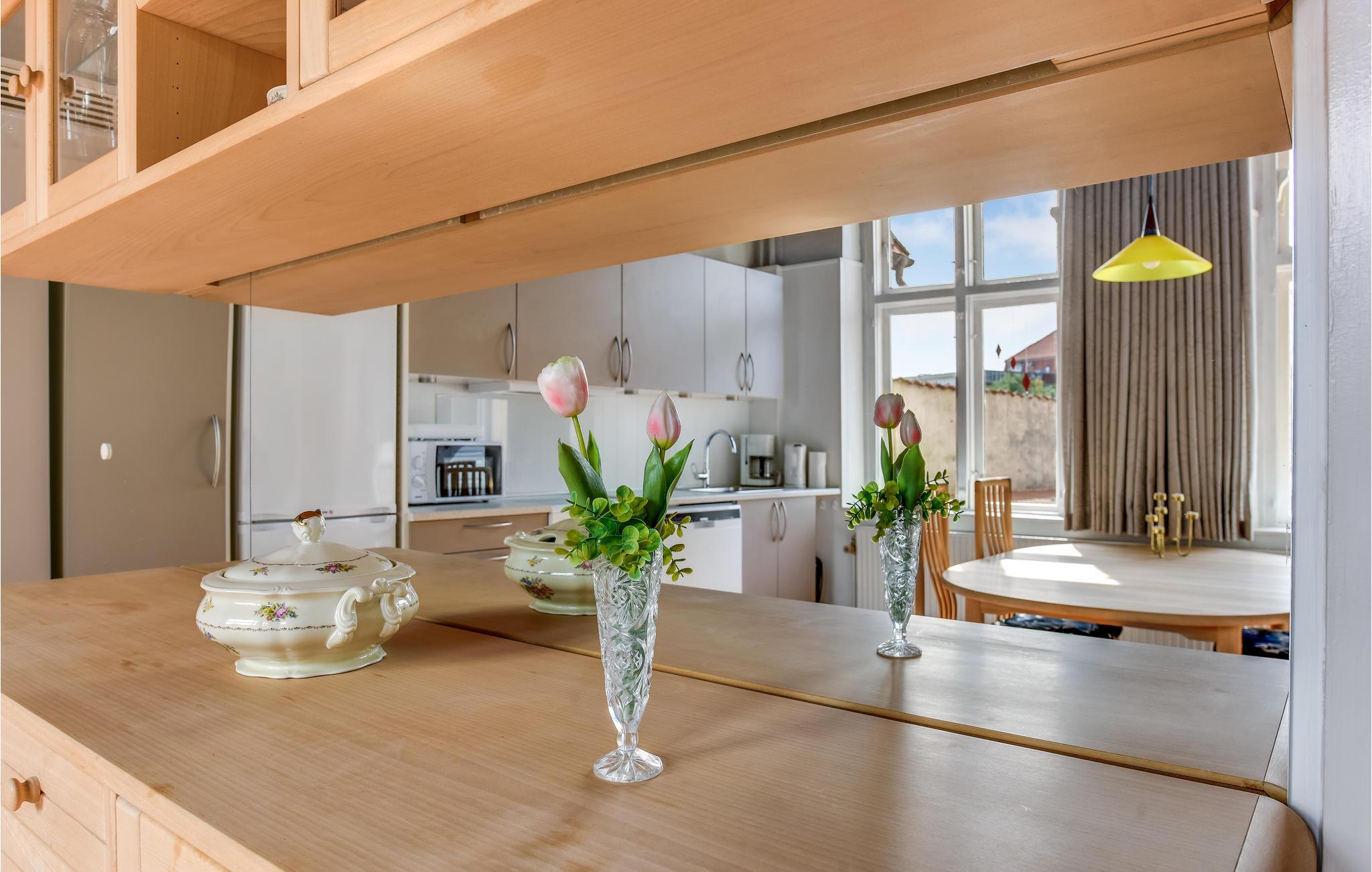 Bei dieser schönen Ferienwohnung sind die Verbrauchkosten bereits im Mietpreis enthalten. Die Wohnung liegt im Erdgeschoss, wird aber über eine Treppe erreicht. Hier wohnen Sie in der Innenstadt im Herzen von Apenrade. Die Wohnung verfügt über eine Küche, die offen mit dem Essplatz verbunden ist. Außerdem gibt es ein Wohnzimmer, zwei geräumige Schlafzimmer und ein Badezimmer. Das eine Schlafzimmer hat einen separaten Ein- und Ausgang und ist gleichzeitig mit der Wohnung über das andere Schlafzimmer verbunden.