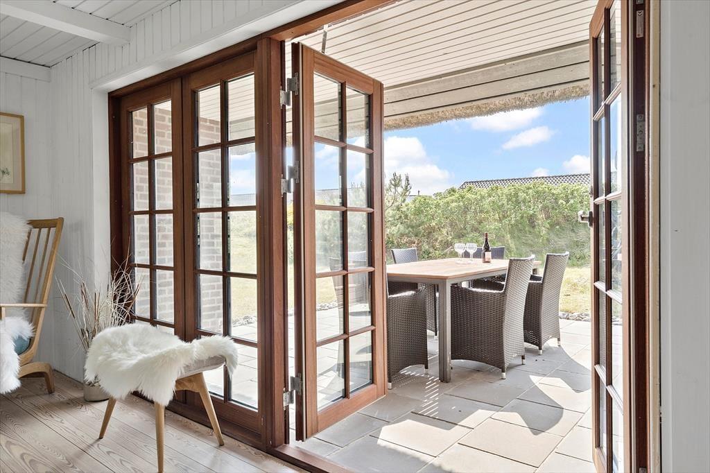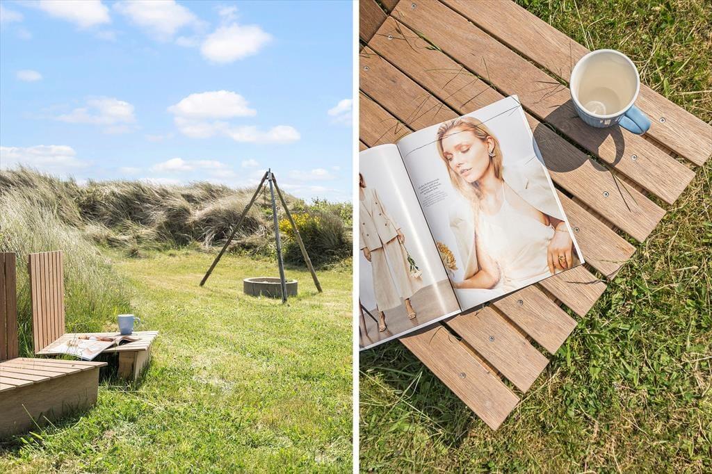 Auf dem großen Grundstück des Sommerhauses, das wunderschön von den Dünen eingerahmt ist, haben Sie viel Platz, um das Leben zu genießen. Die hügelige Landschaft schirmt die Außenbereiche ab, damit Sie beim Sonnenbaden, Spielen auf der Wiese oder beim Grillen auf der schönen Terrasse die Ruhe und Ungestörtheit genießen können.